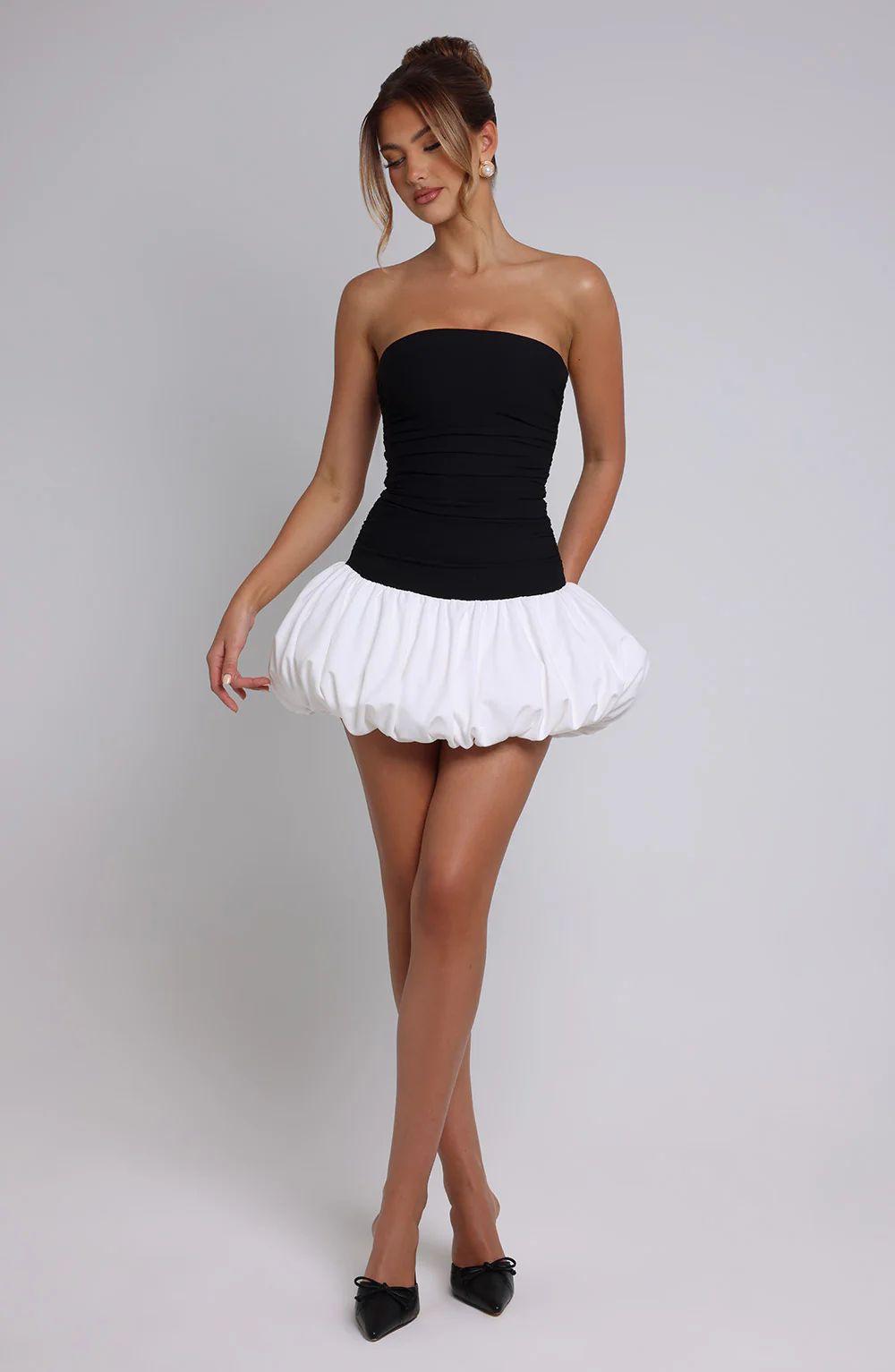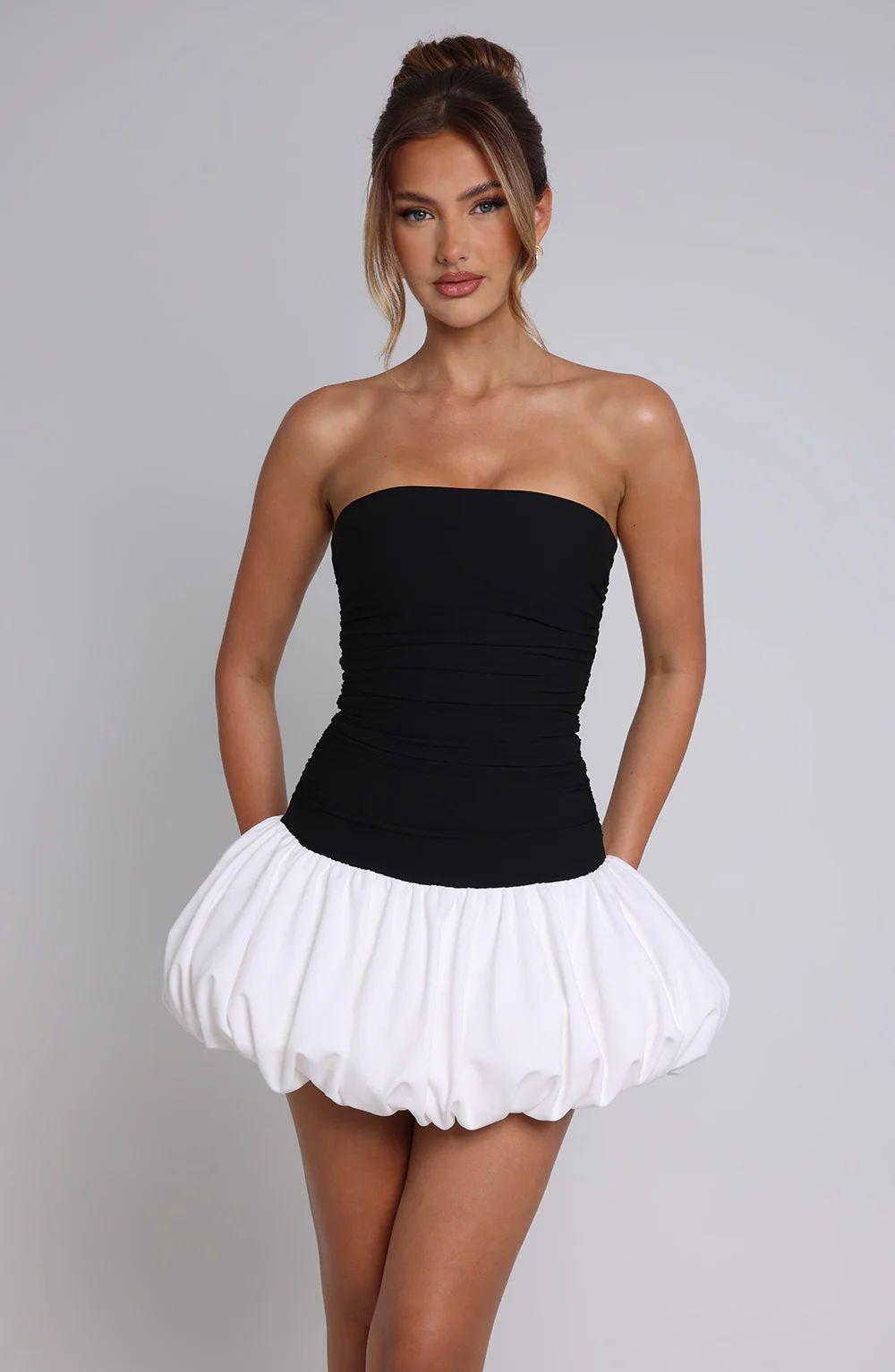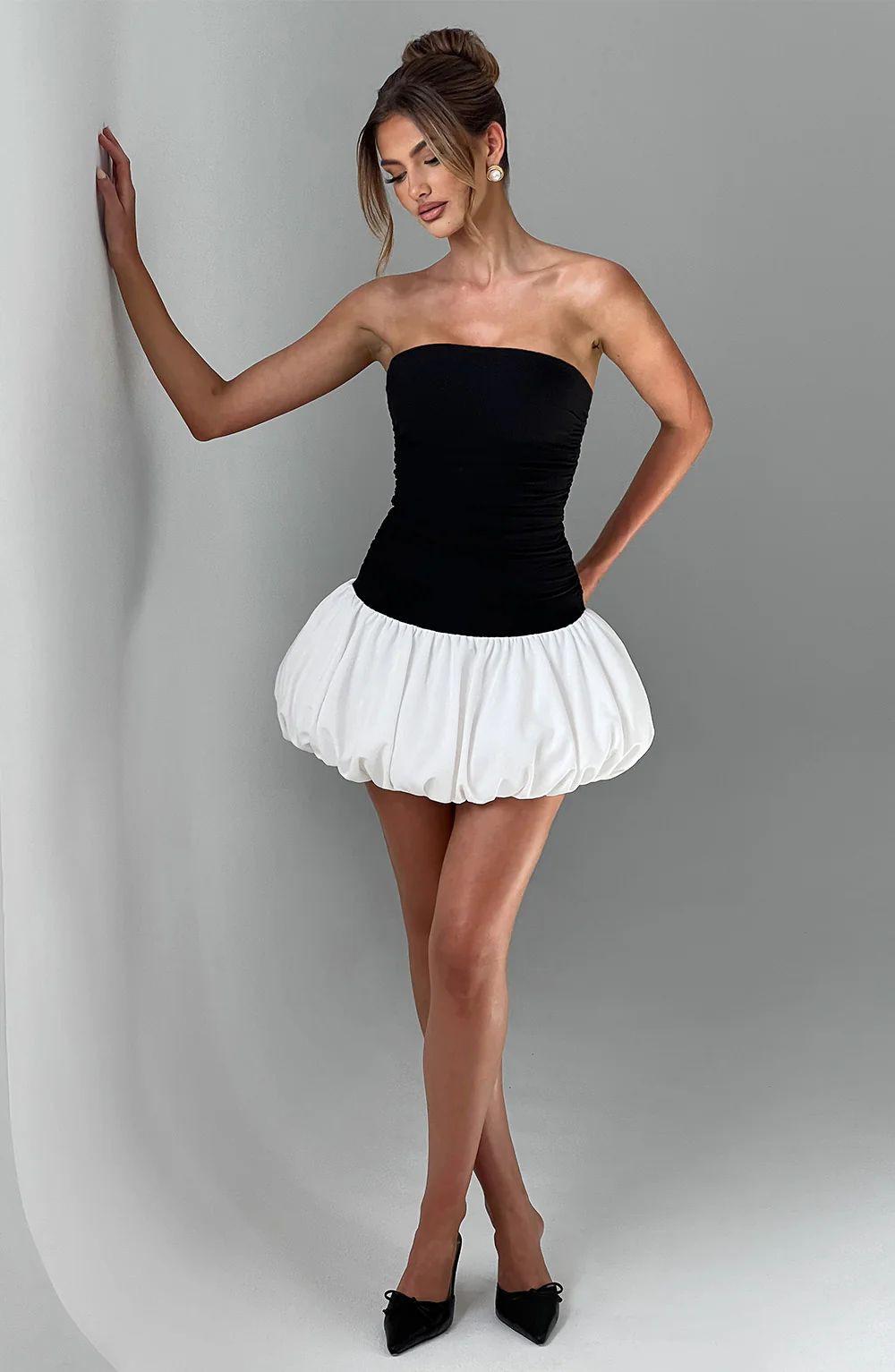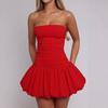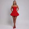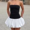 Estilo Europeo y Americano 2024 Primavera Nuevo Moda Femenina Transfronteriza Cuello de un Hombro Costuras en Color Contrastante Vestido Slim Plisado para Mujer