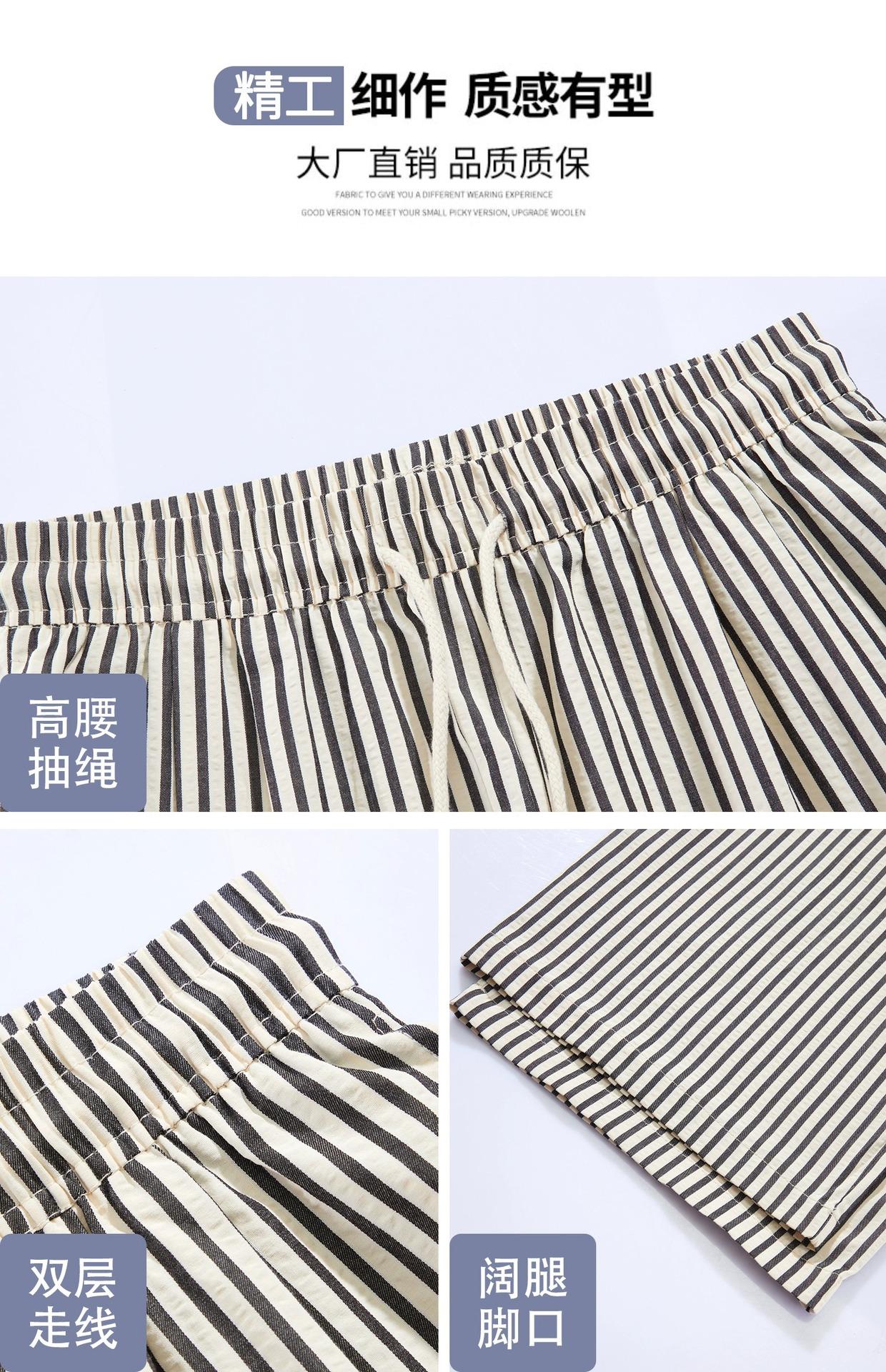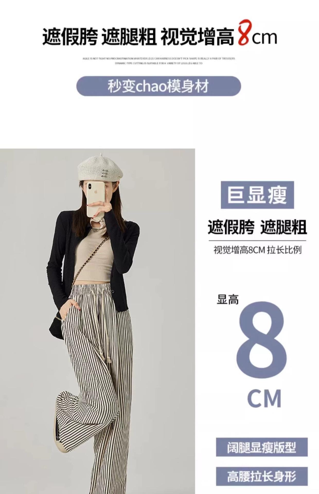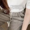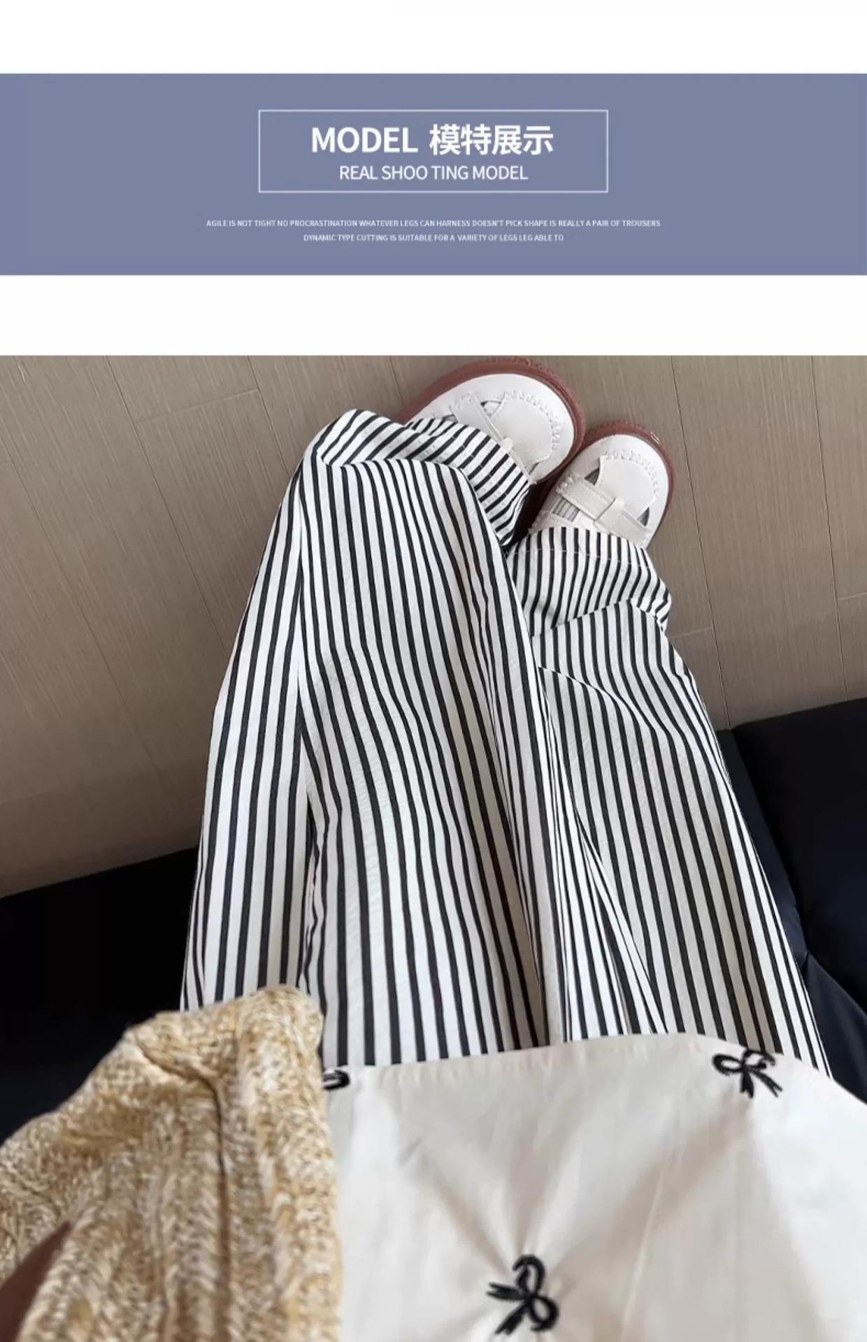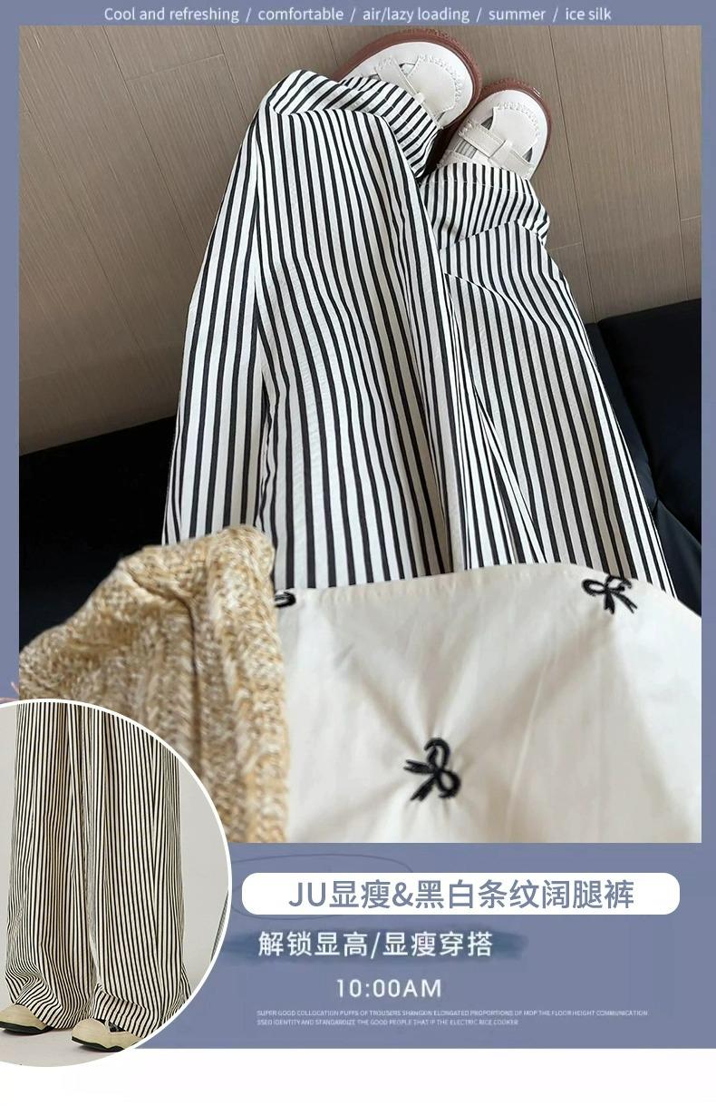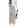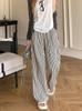 Pantalones casuales de verano de cintura alta a rayas de pierna ancha para niñas 2025 Nuevo verano holgados estilo Bf perezoso adelgazantes pantalones largos