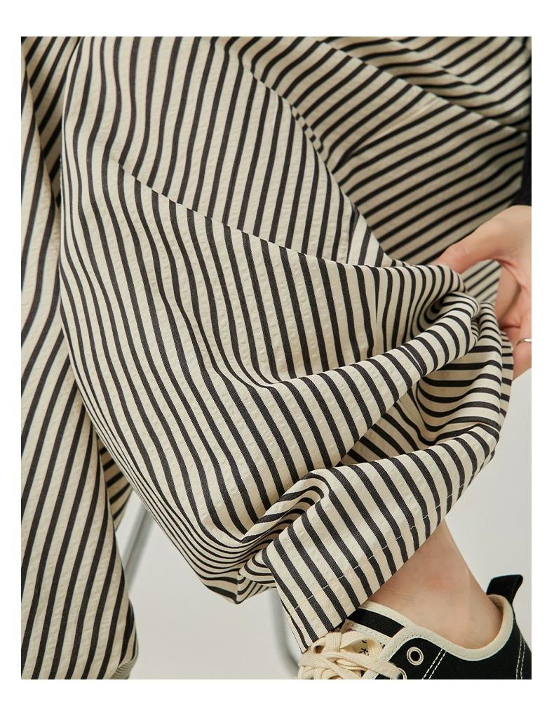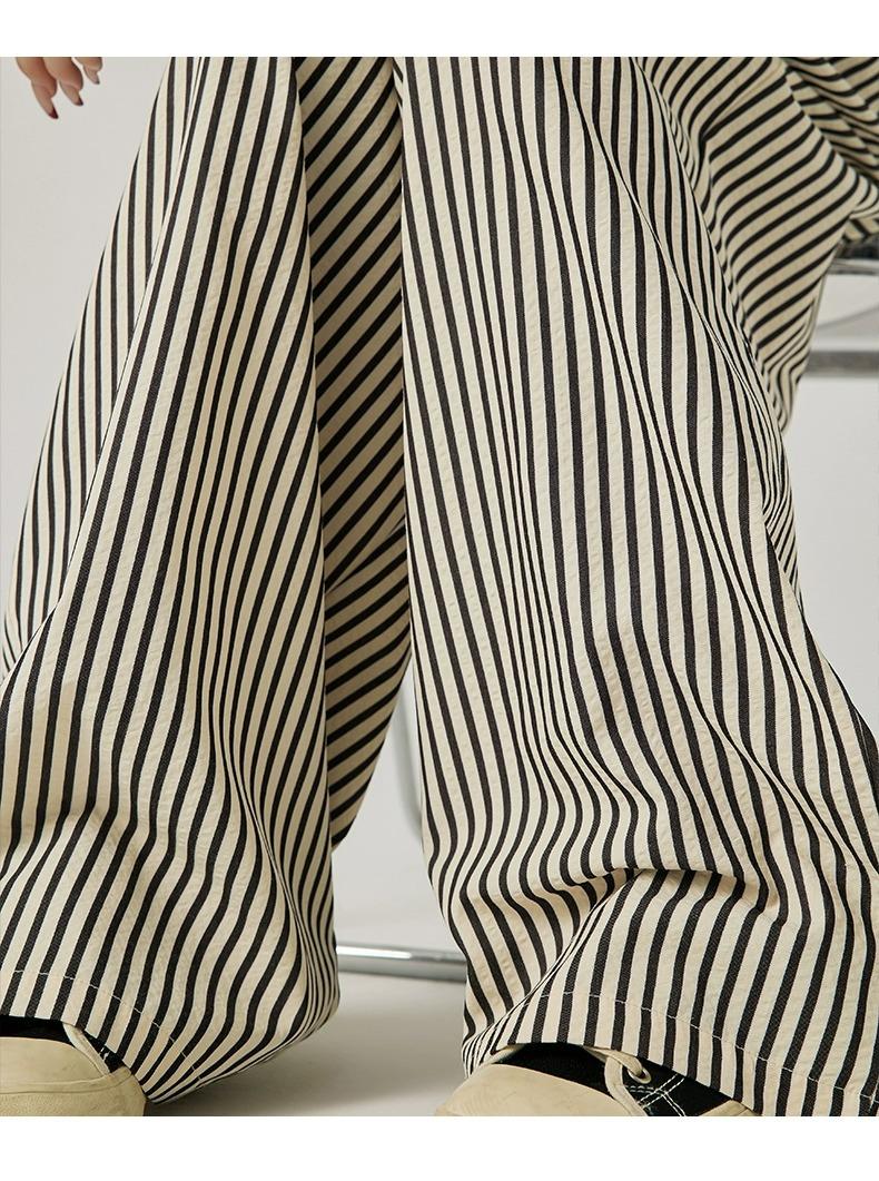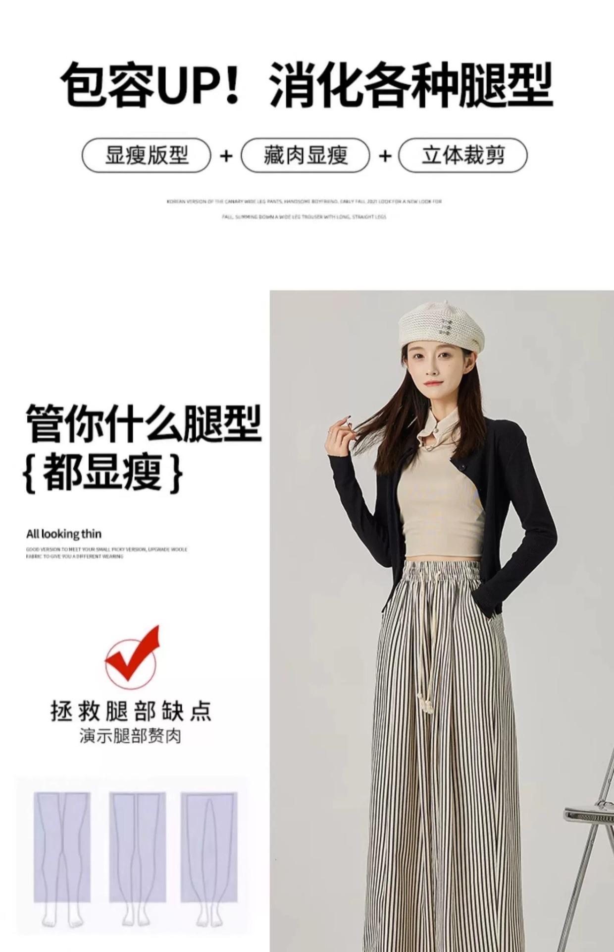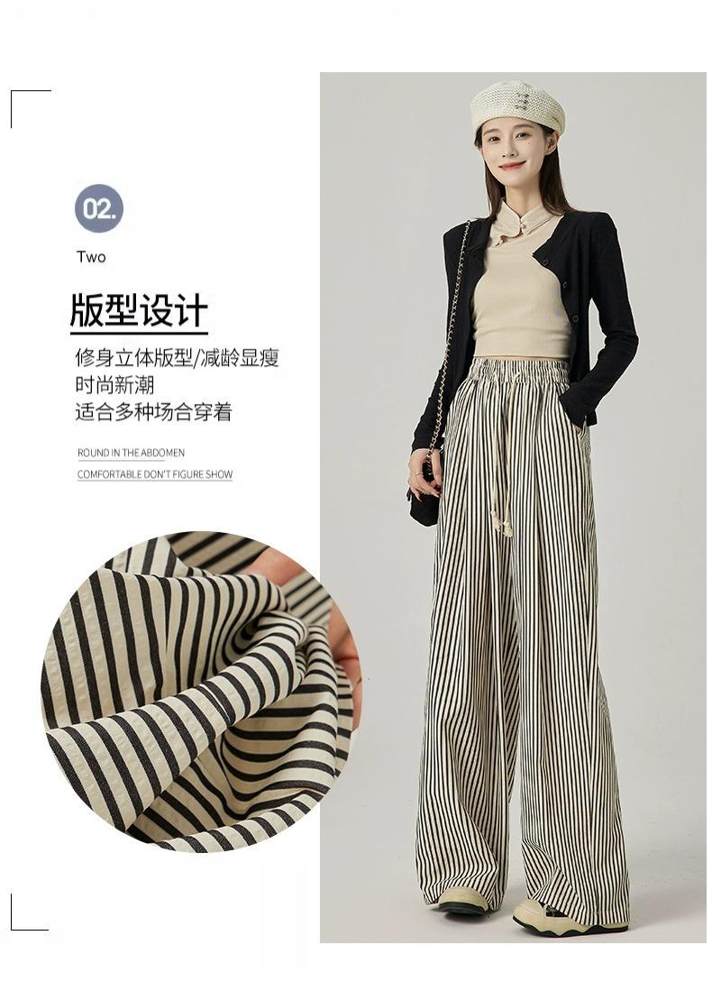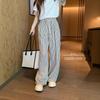 Pantalones casuales de verano de cintura alta a rayas de pierna ancha para niñas 2025 Nuevo verano holgados estilo Bf perezoso adelgazantes pantalones largos