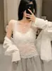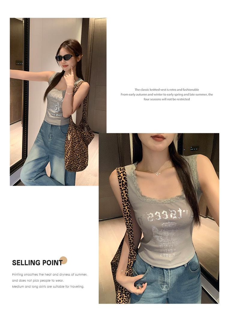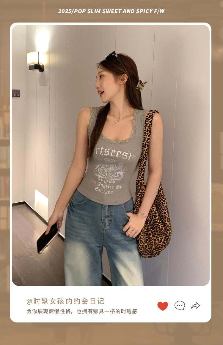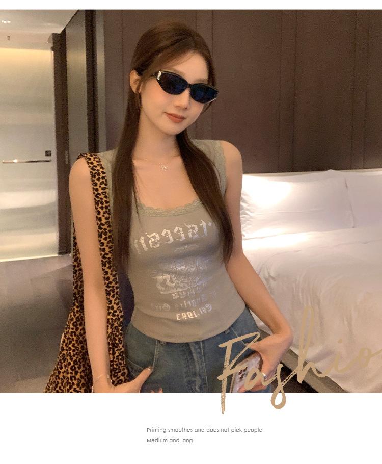 Camisola Americana Hot Girl con Encaje para Mujer Verano 2025 Nueva Slim Ropa Exterior Chic Top sin Mangas