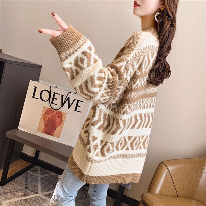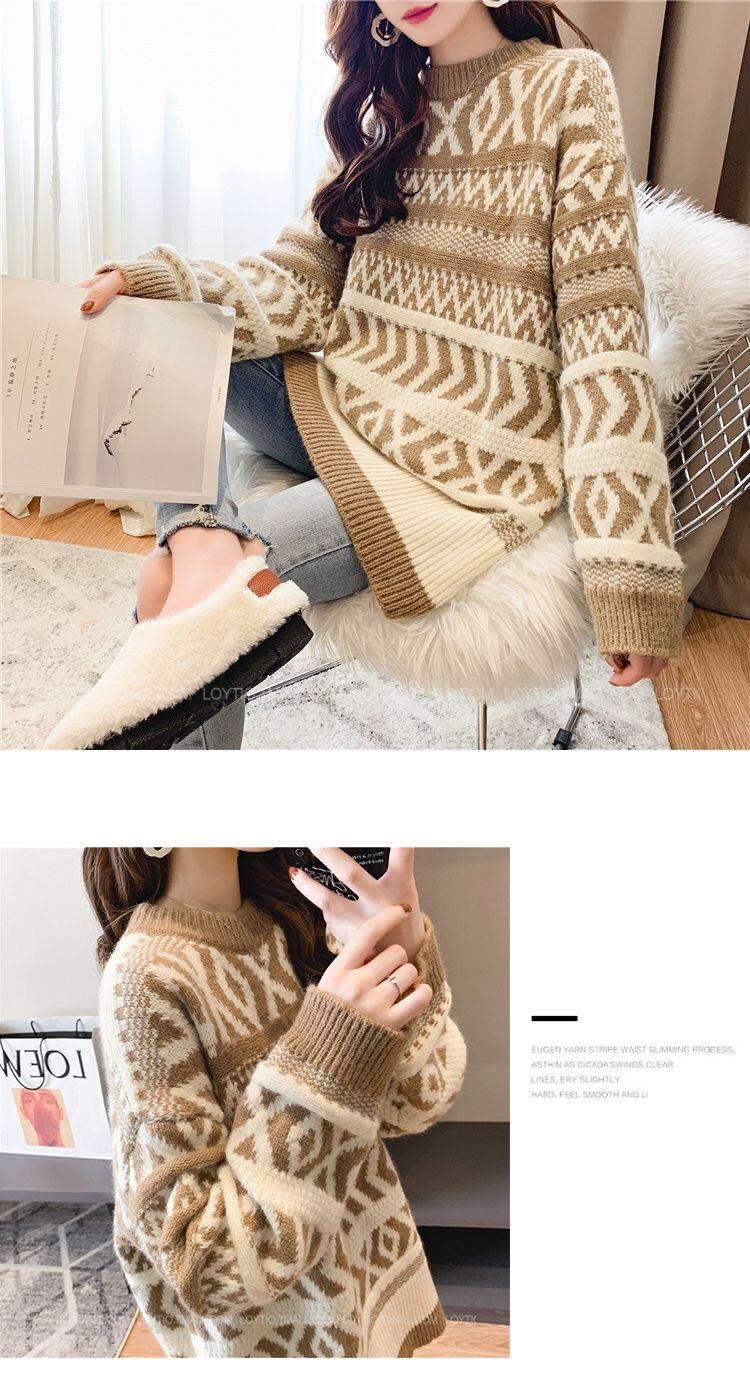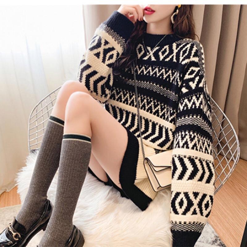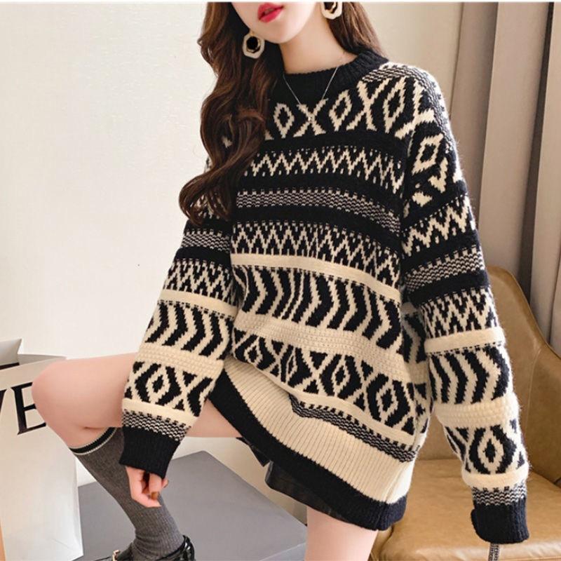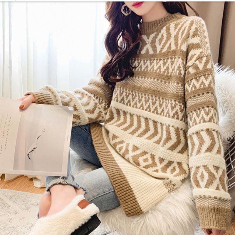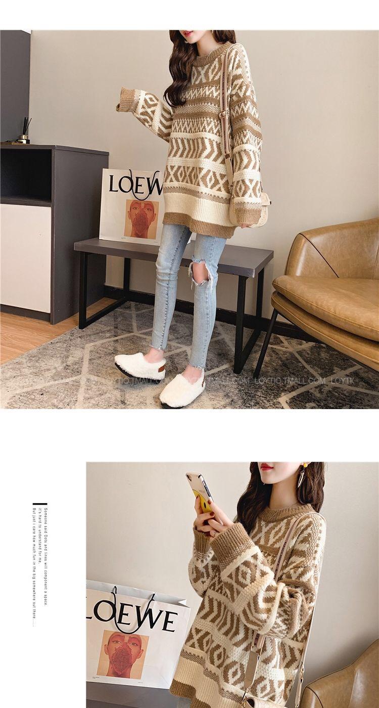 Suéter de Punto Grueso de Largo Medio para Mujer Estilo Europeo y Americano Otoño e Invierno 2020 Suéter Holgado Perezoso de Lana Gruesa Tejida para Mujer Celebridad de Internet