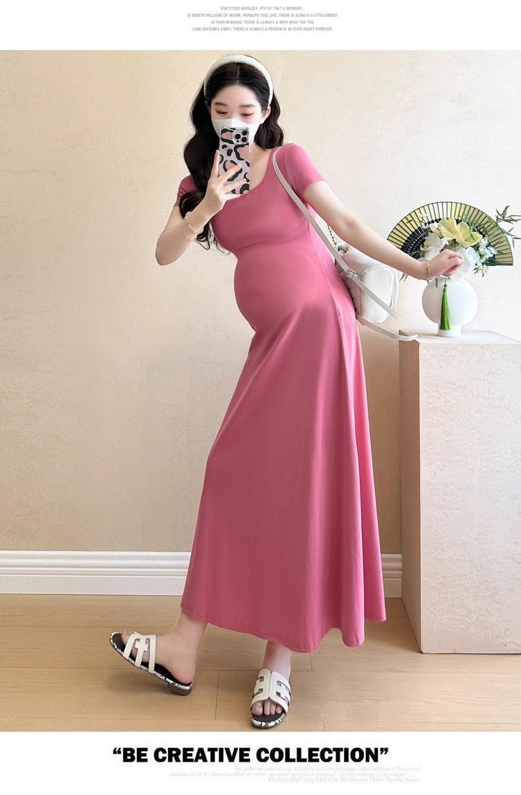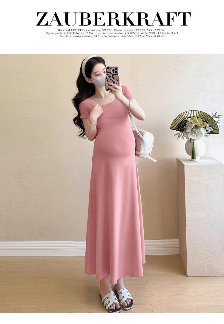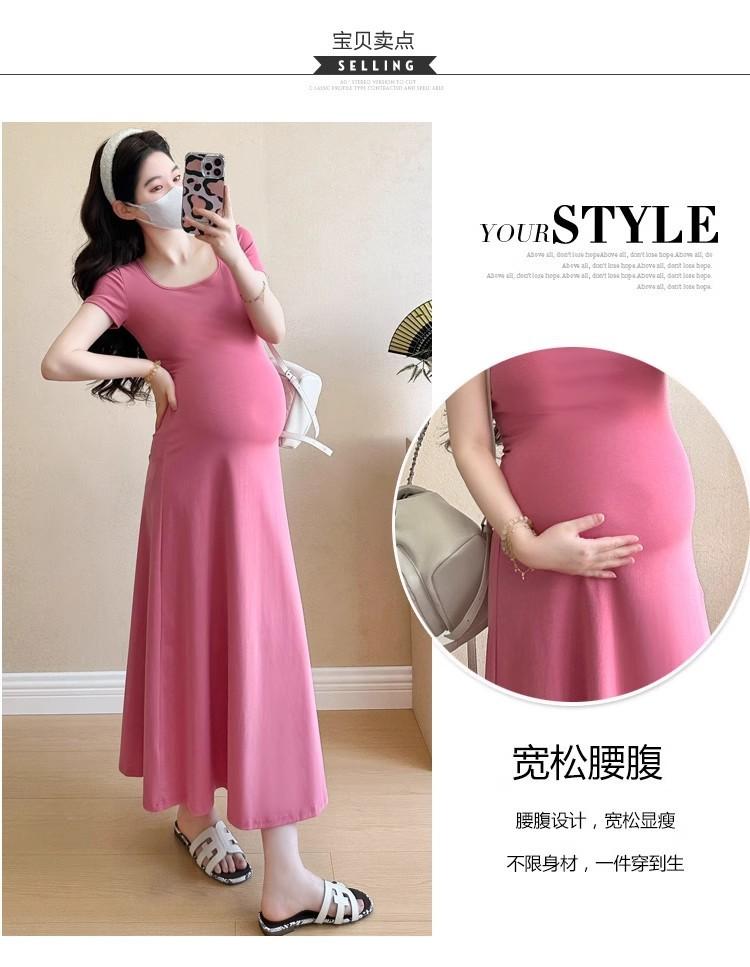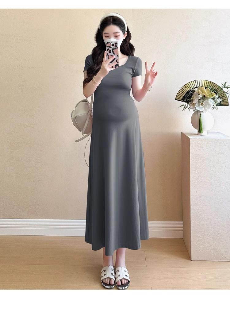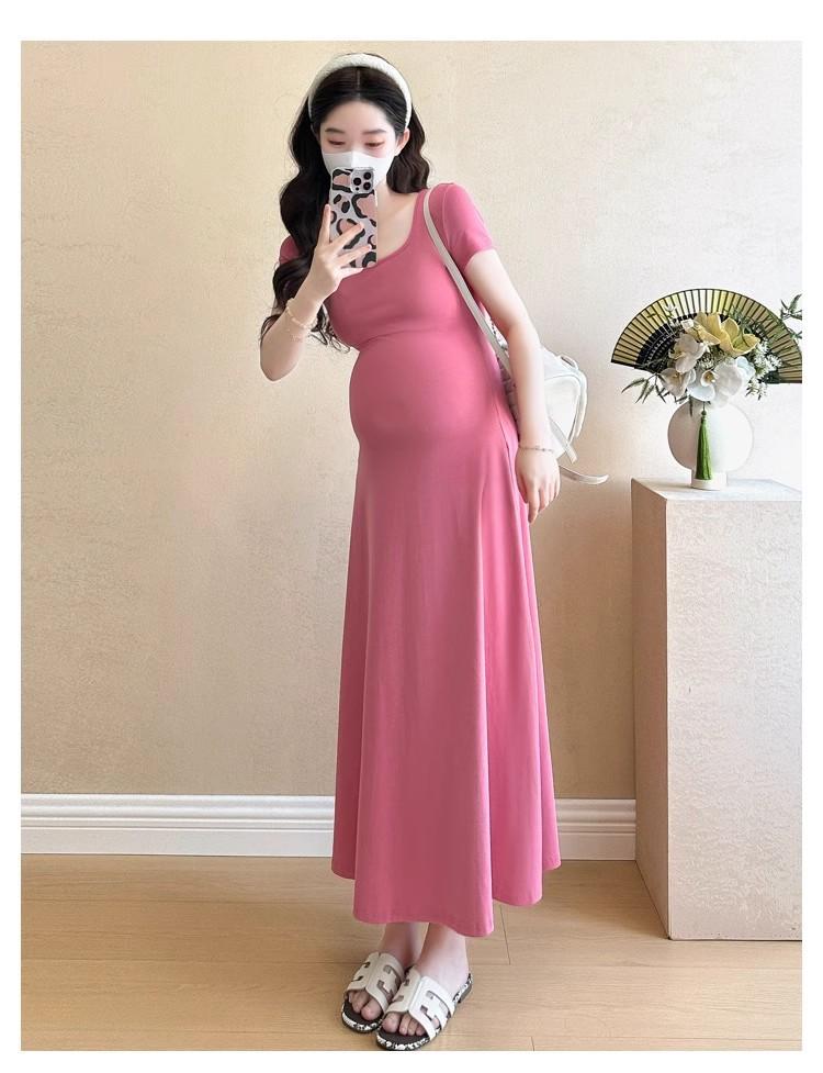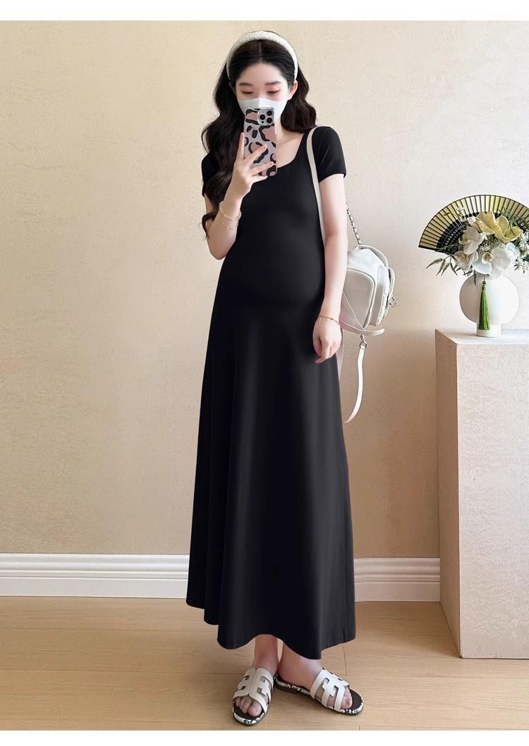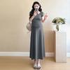 Vestido de Maternidad 2025 Nueva Moda de Verano Francés Suelto Línea A Falda Larga Vestido de Maternidad Casual de Verano Drapeado