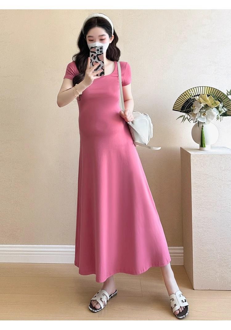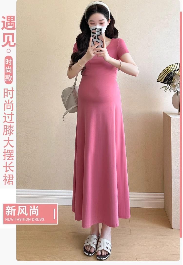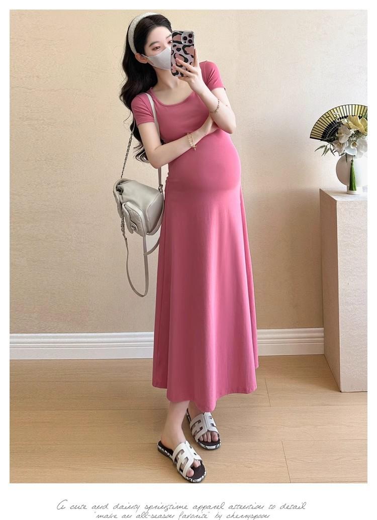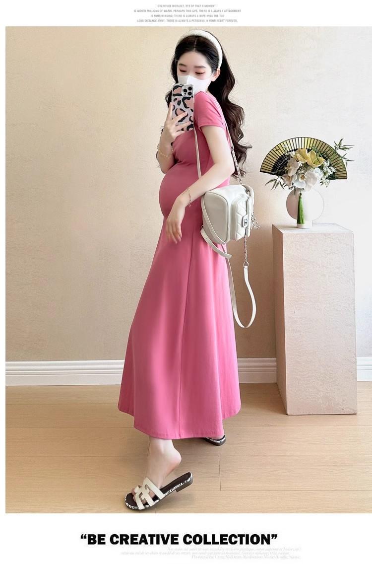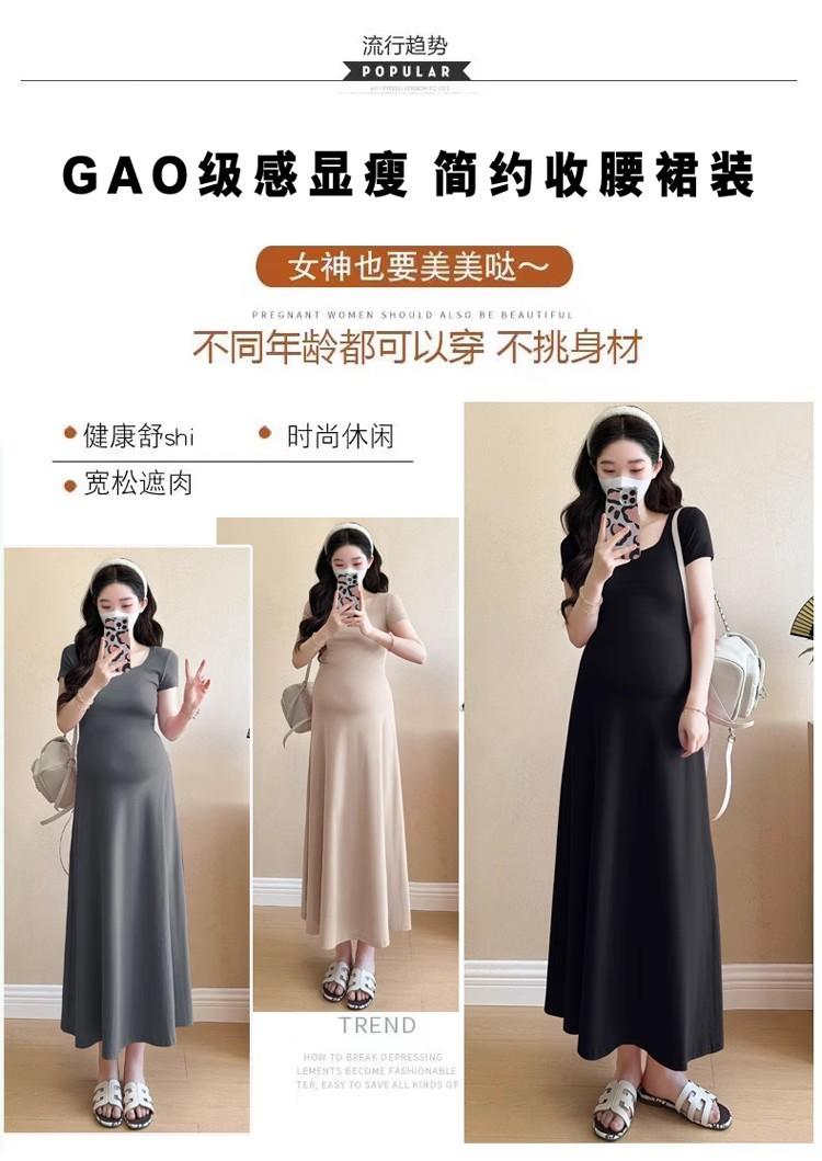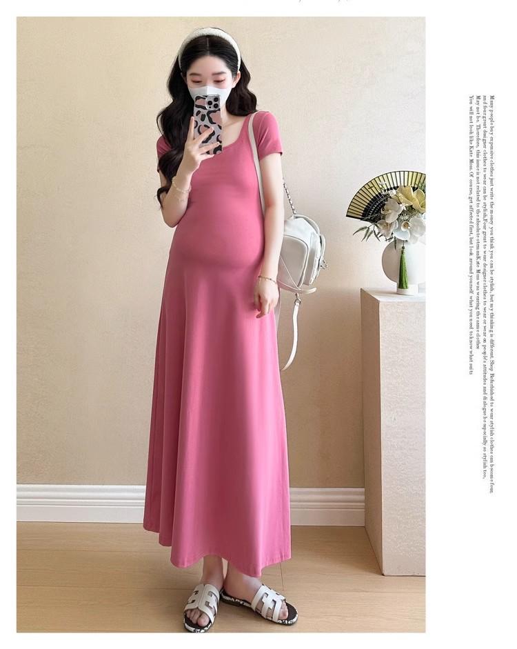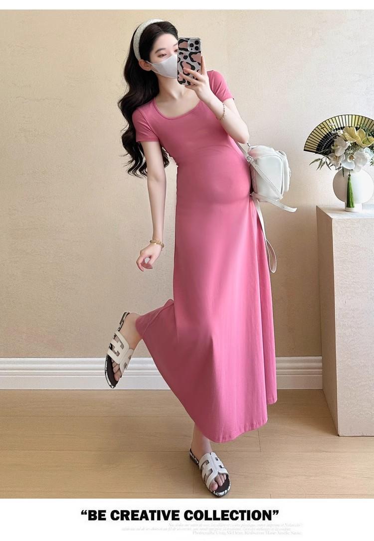 Vestido de Maternidad 2025 Nueva Moda de Verano Francés Suelto Línea A Falda Larga Vestido de Maternidad Casual de Verano Drapeado