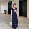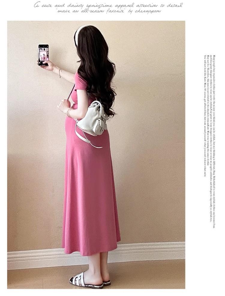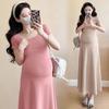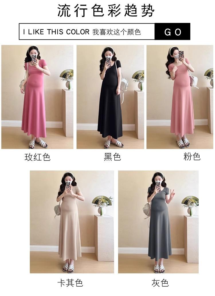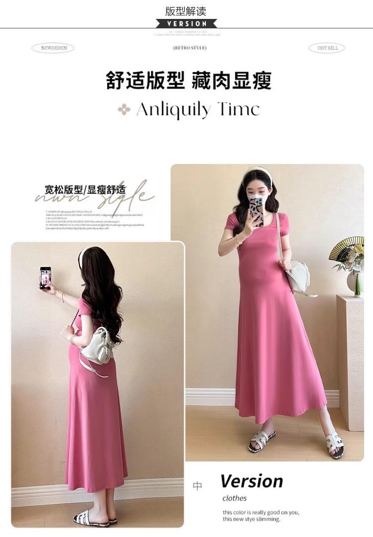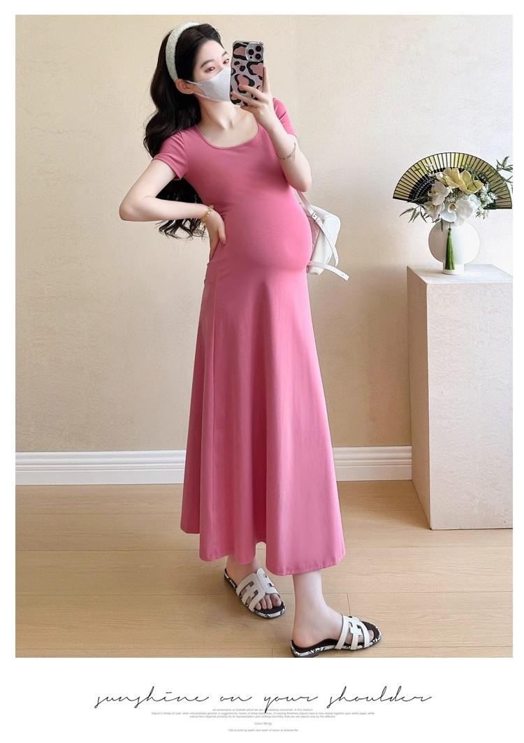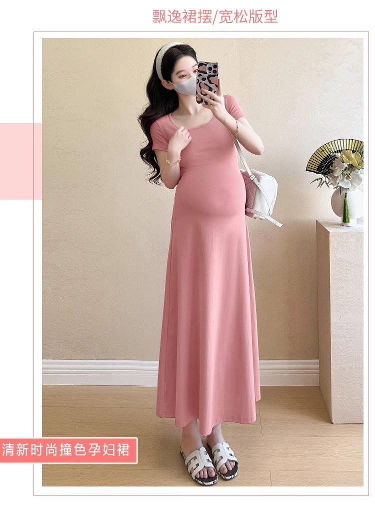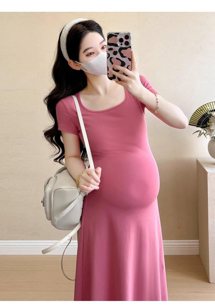 Vestido de Maternidad 2025 Nueva Moda de Verano Francés Suelto Línea A Falda Larga Vestido de Maternidad Casual de Verano Drapeado