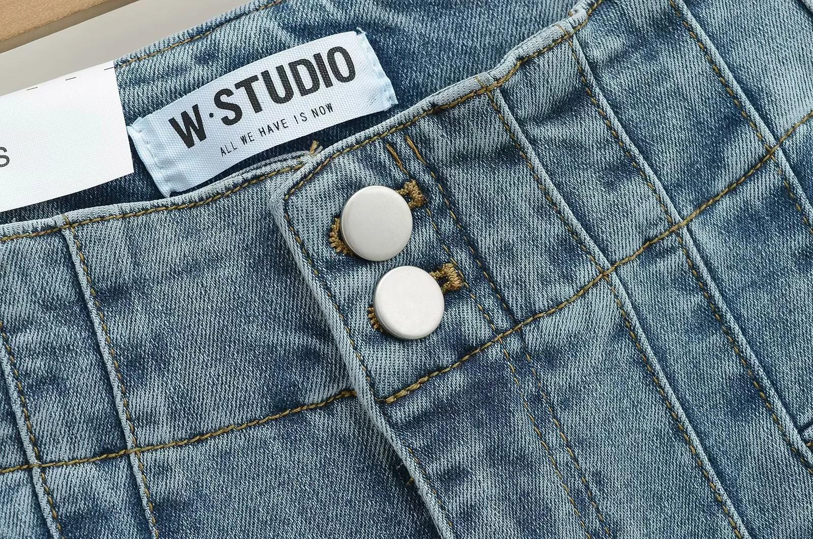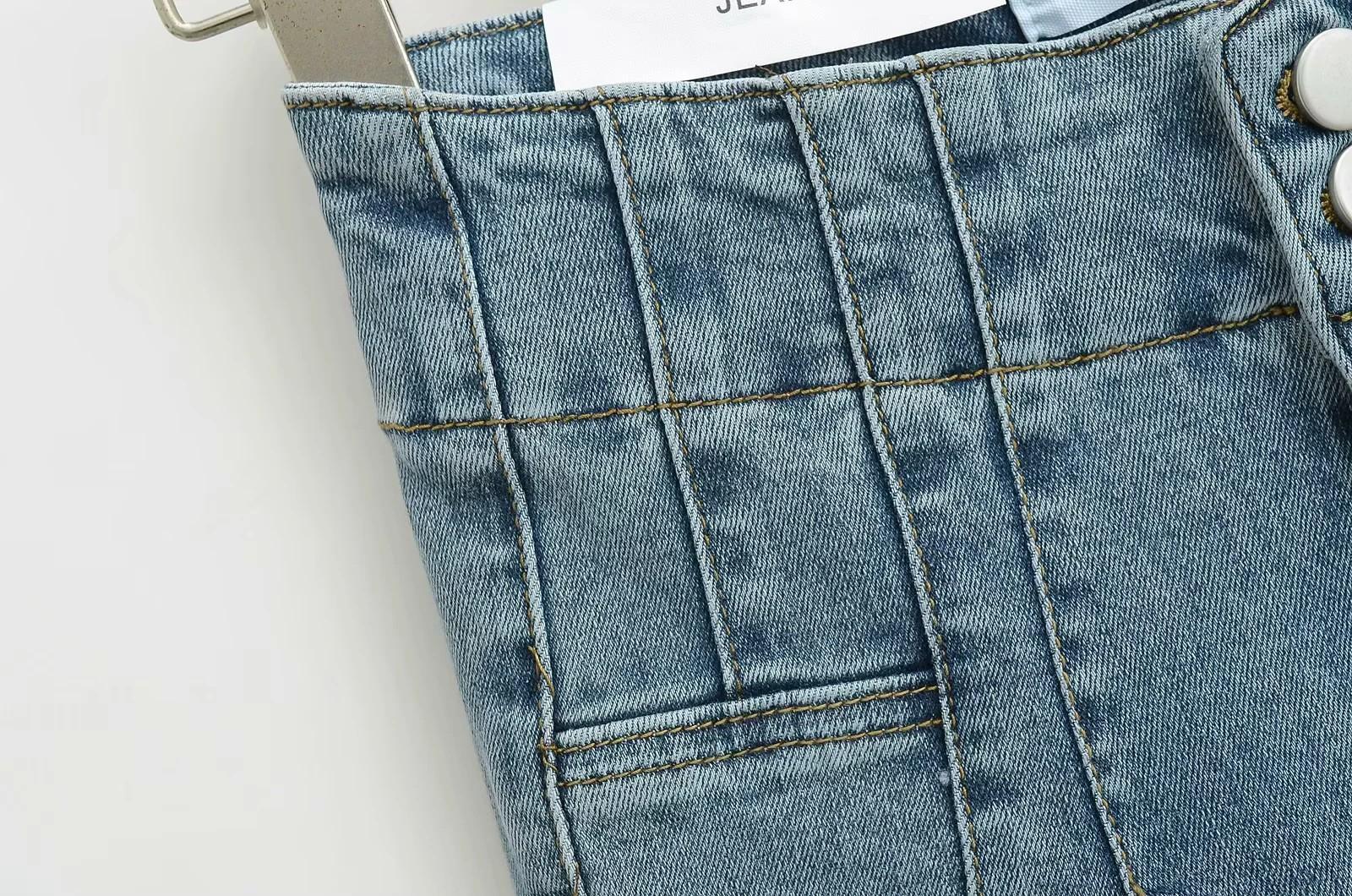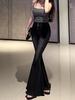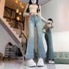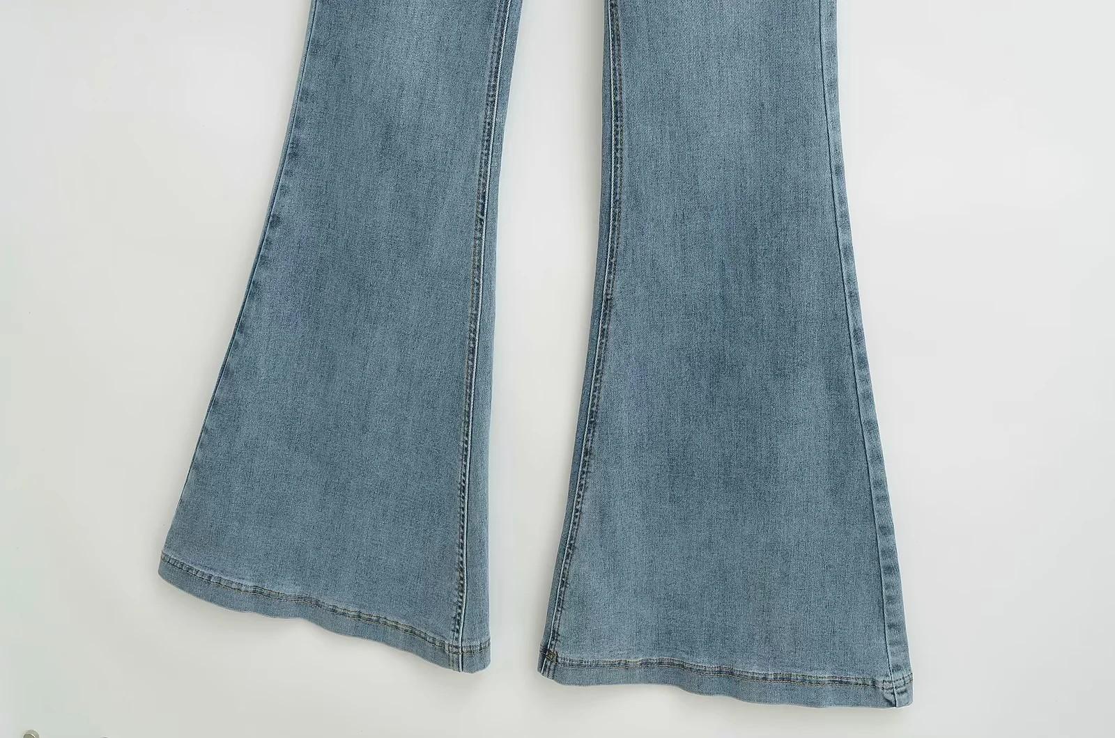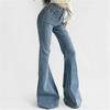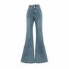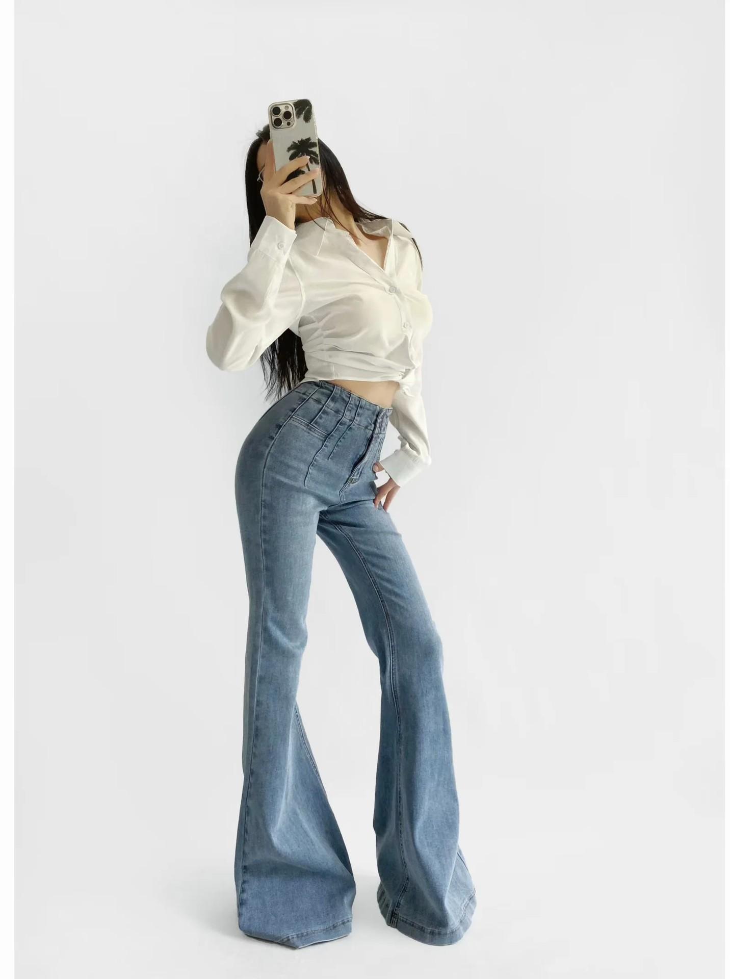 Jeans Micro Acampanados de Verano 2024 de Cintura Alta con Doble Botón Retro Nostálgicos para Mujer Elásticos Ajustados Pantalones Largos hasta el Piso