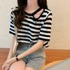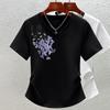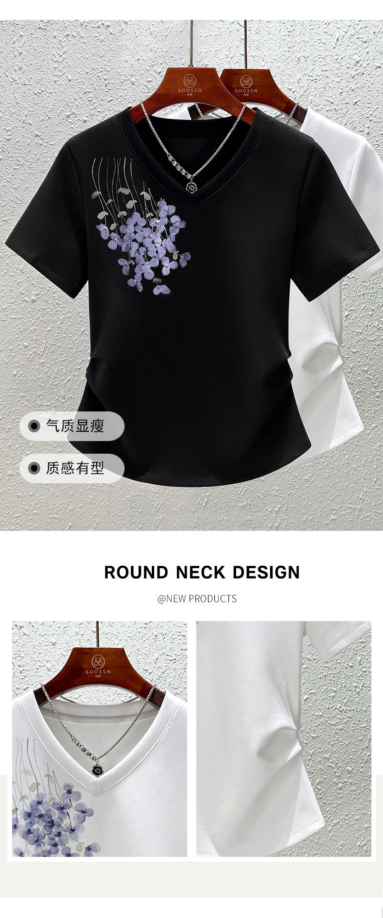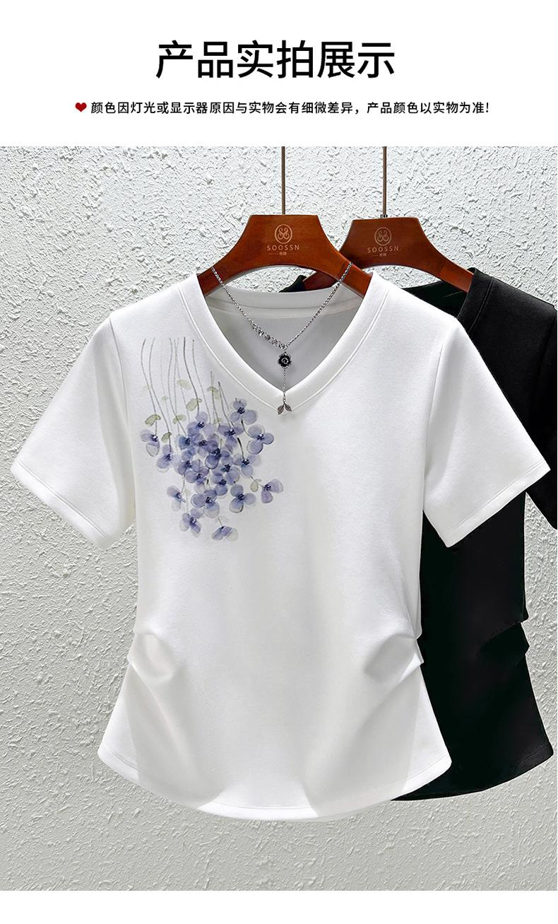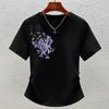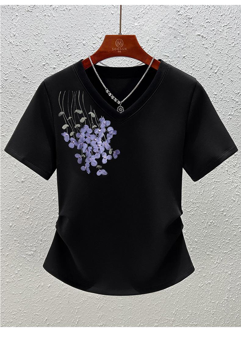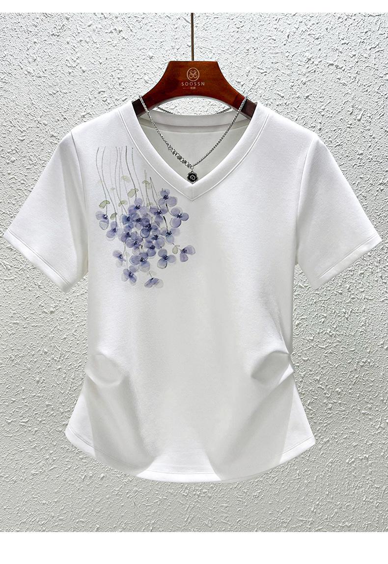 Camiseta Blanca de Manga Corta para Mujer 2025 Nueva Ropa de Verano Simple y Versátil Ropa de Trabajo Bordado de Lentejuelas Hombro Derecho Cuello en V Top Holgado