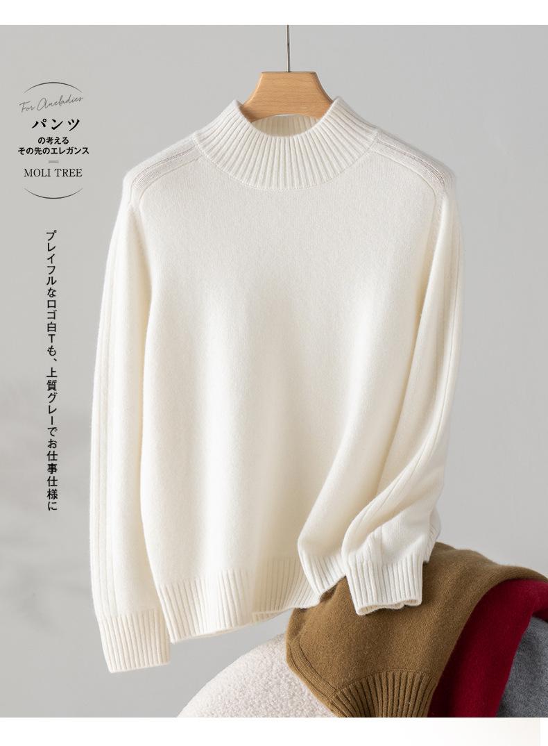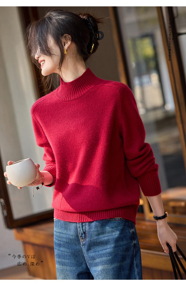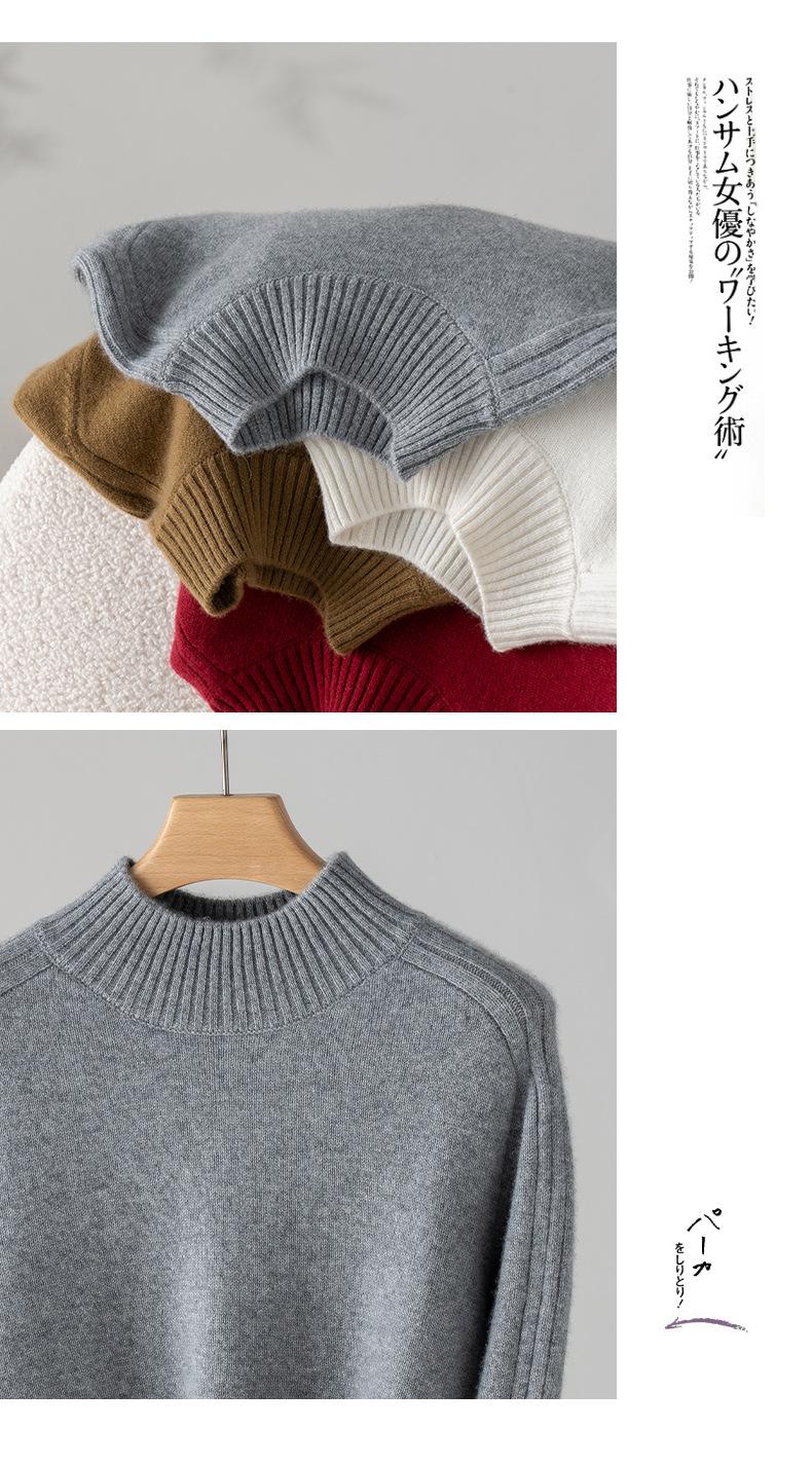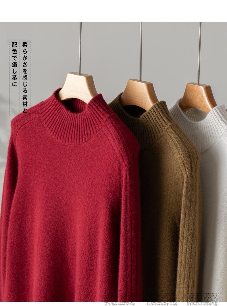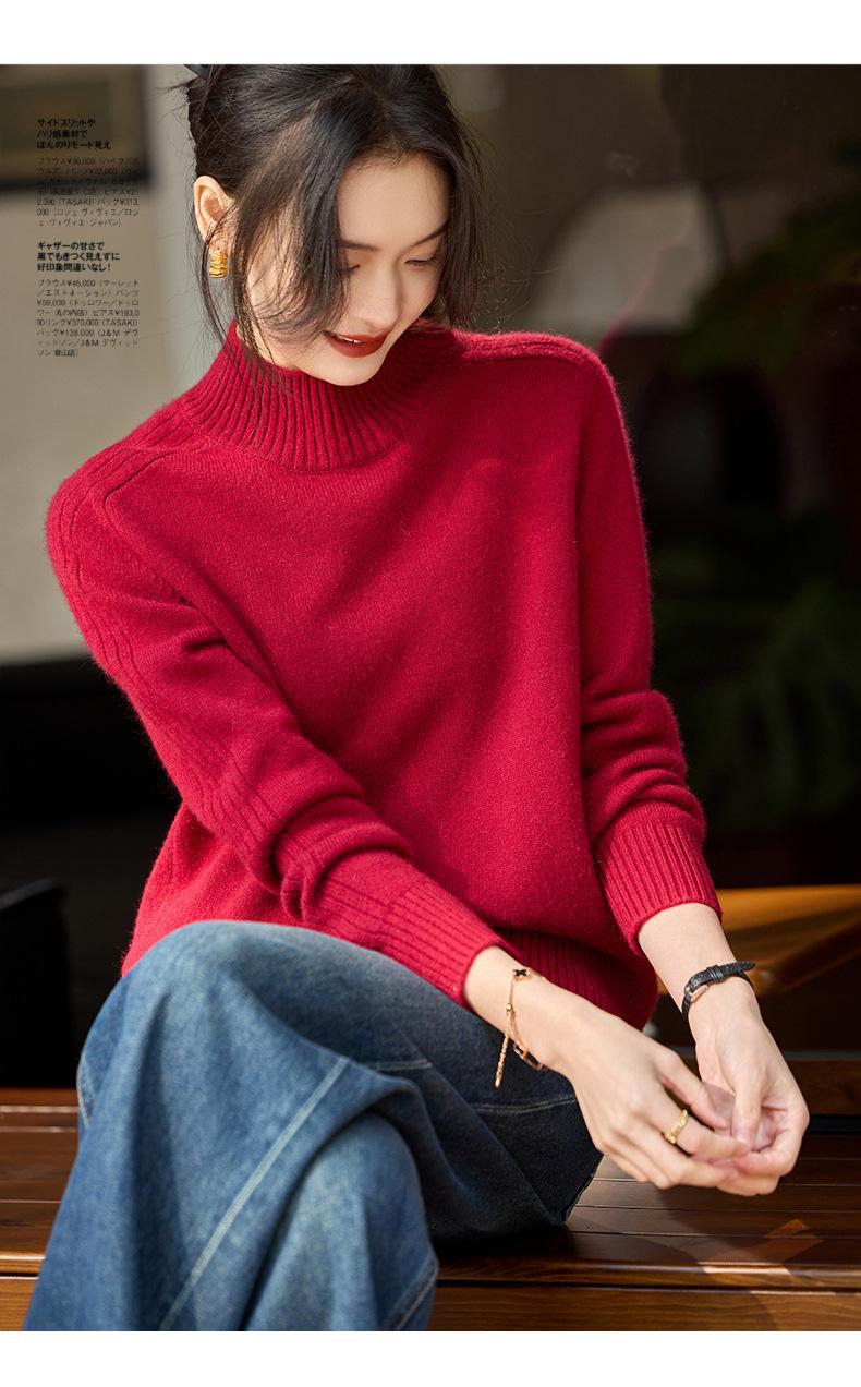 Suéter de Cachemira 100% Pura para Mujer, Color Puro, Cuello Alto Medio, Grueso, Suelto, Casual, Otoño e Invierno, Nuevo, Moda Versátil