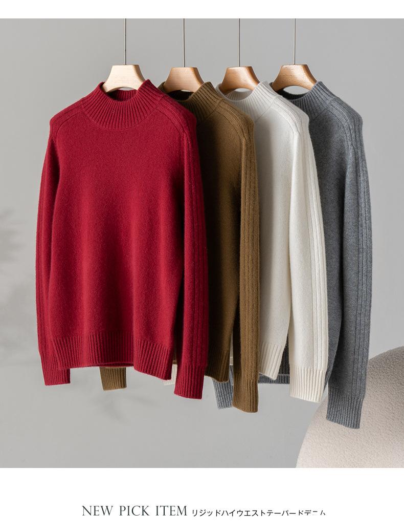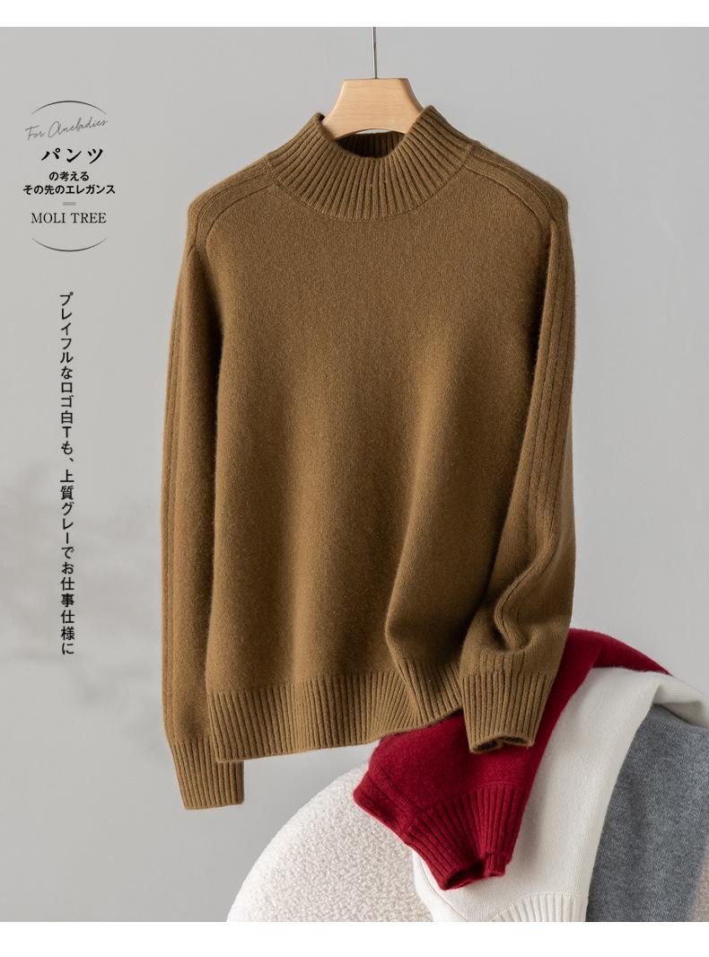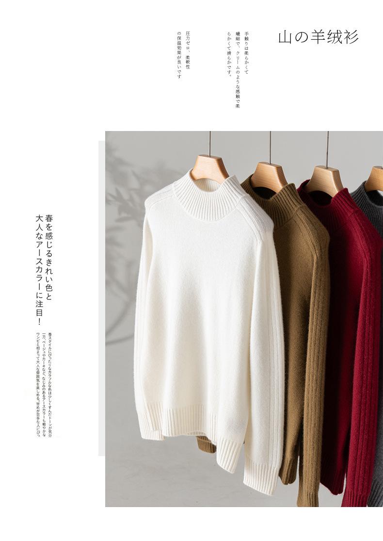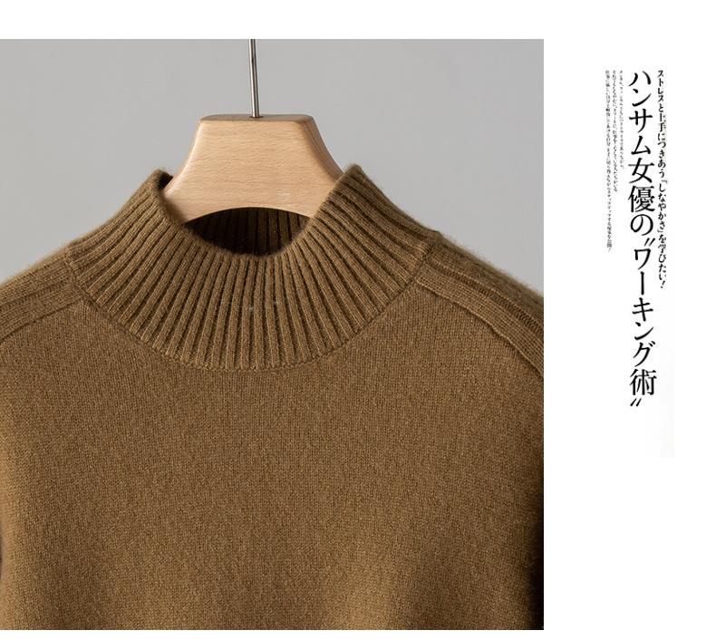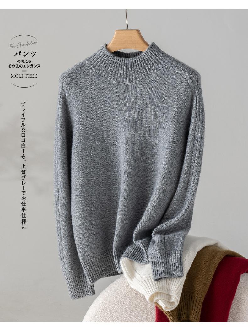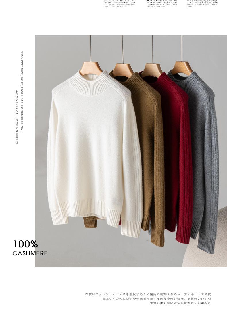 Suéter de Cachemira 100% Pura para Mujer, Color Puro, Cuello Alto Medio, Grueso, Suelto, Casual, Otoño e Invierno, Nuevo, Moda Versátil