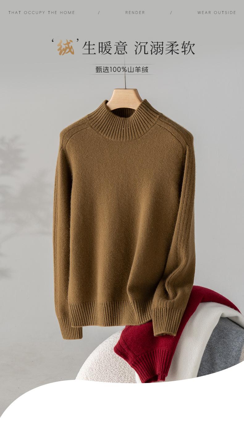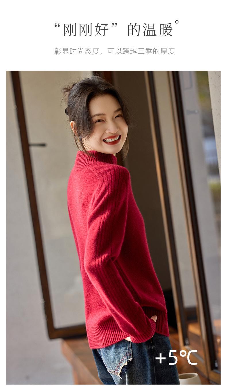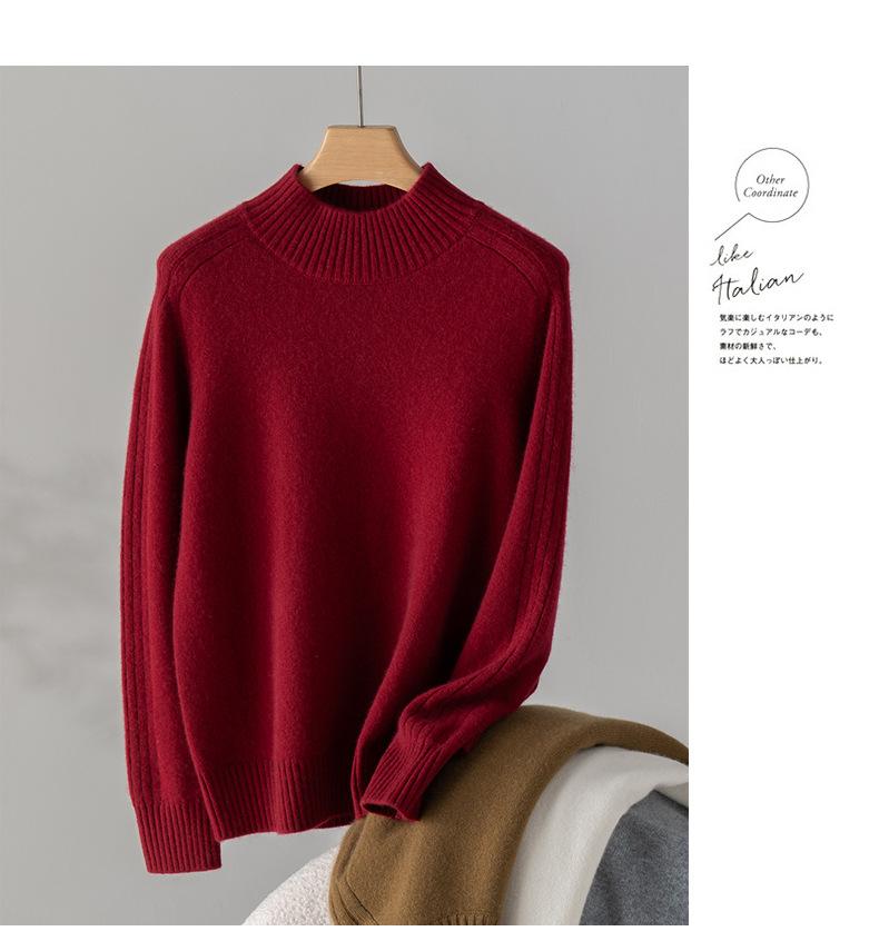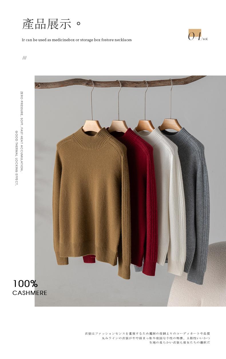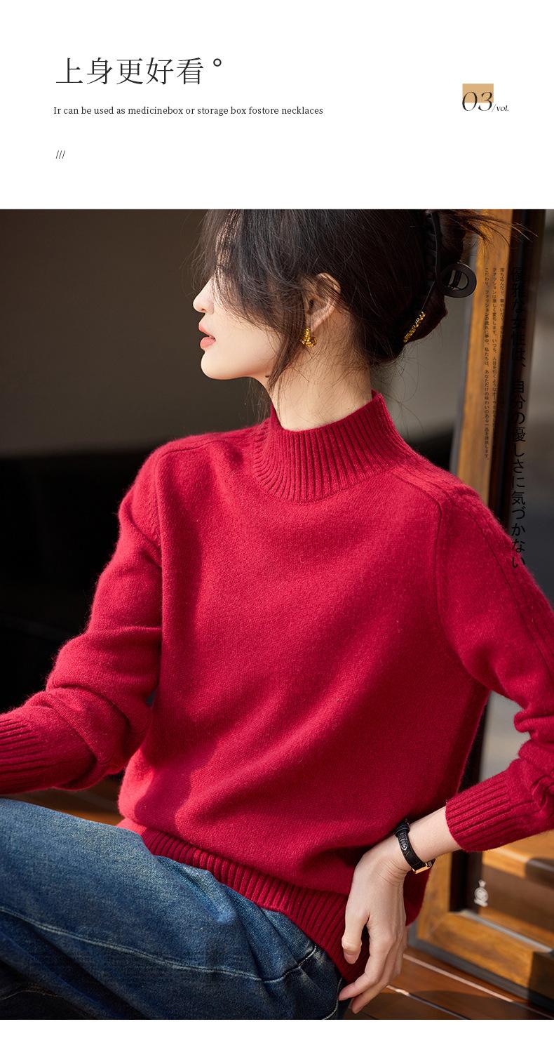 Suéter de Cachemira 100% Pura para Mujer, Color Puro, Cuello Alto Medio, Grueso, Suelto, Casual, Otoño e Invierno, Nuevo, Moda Versátil