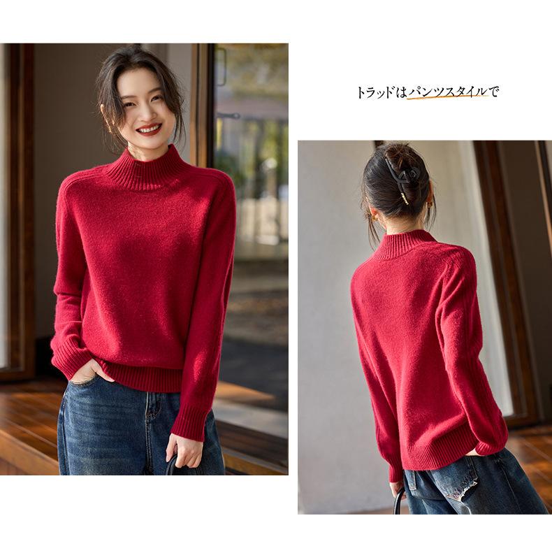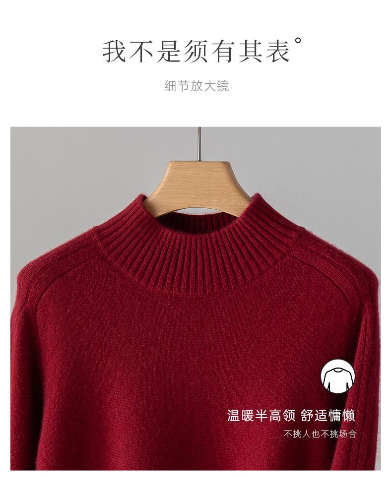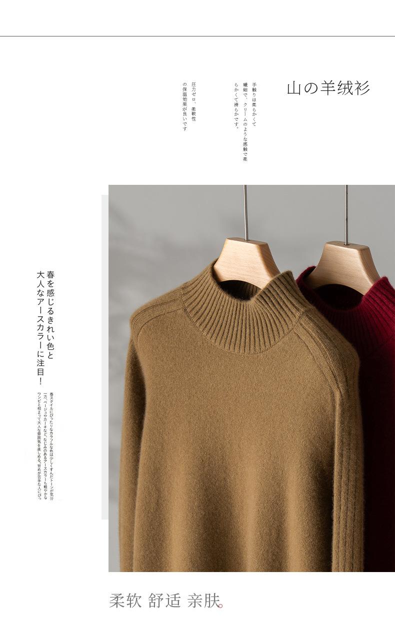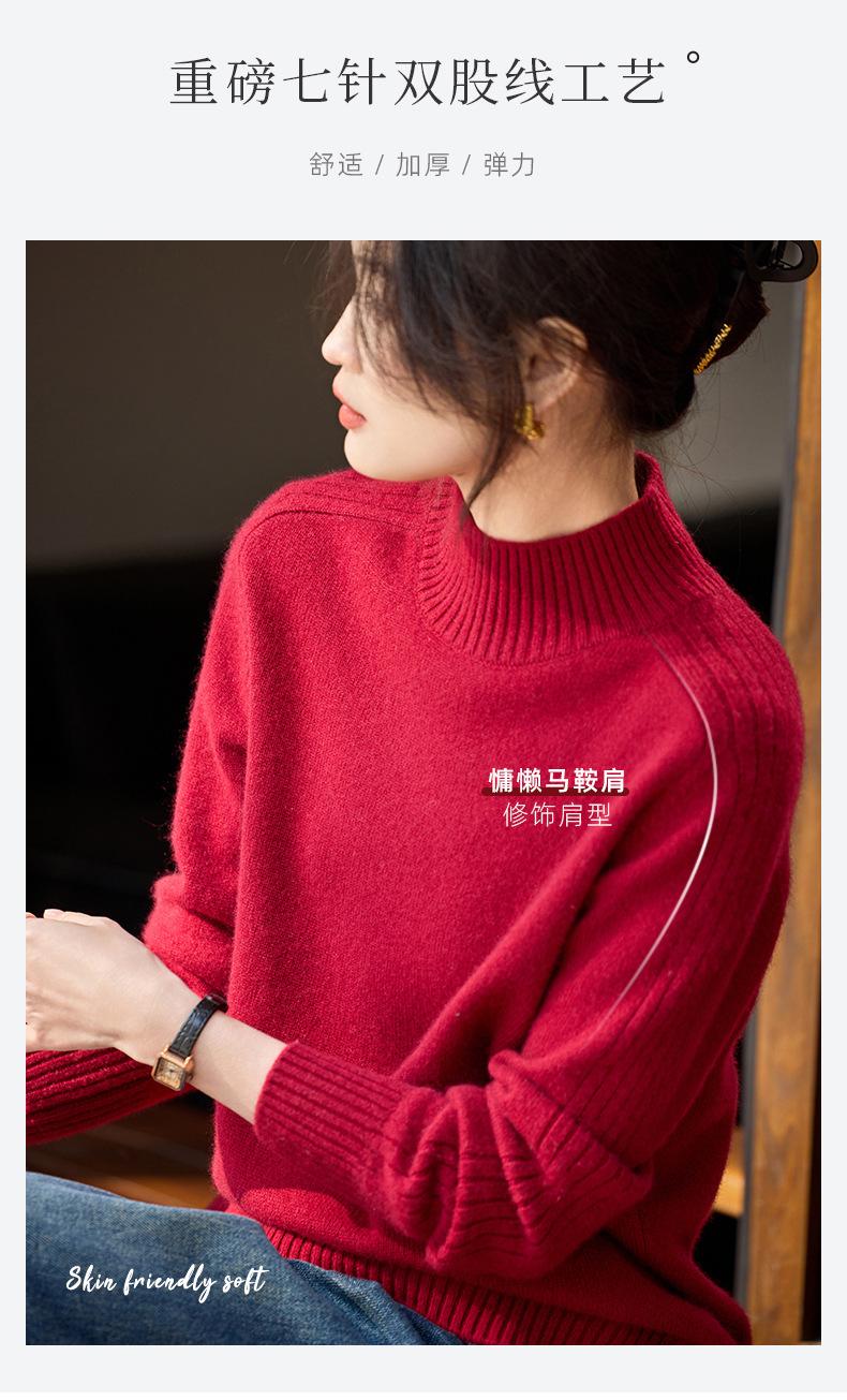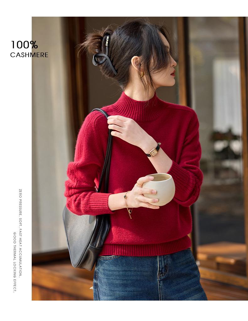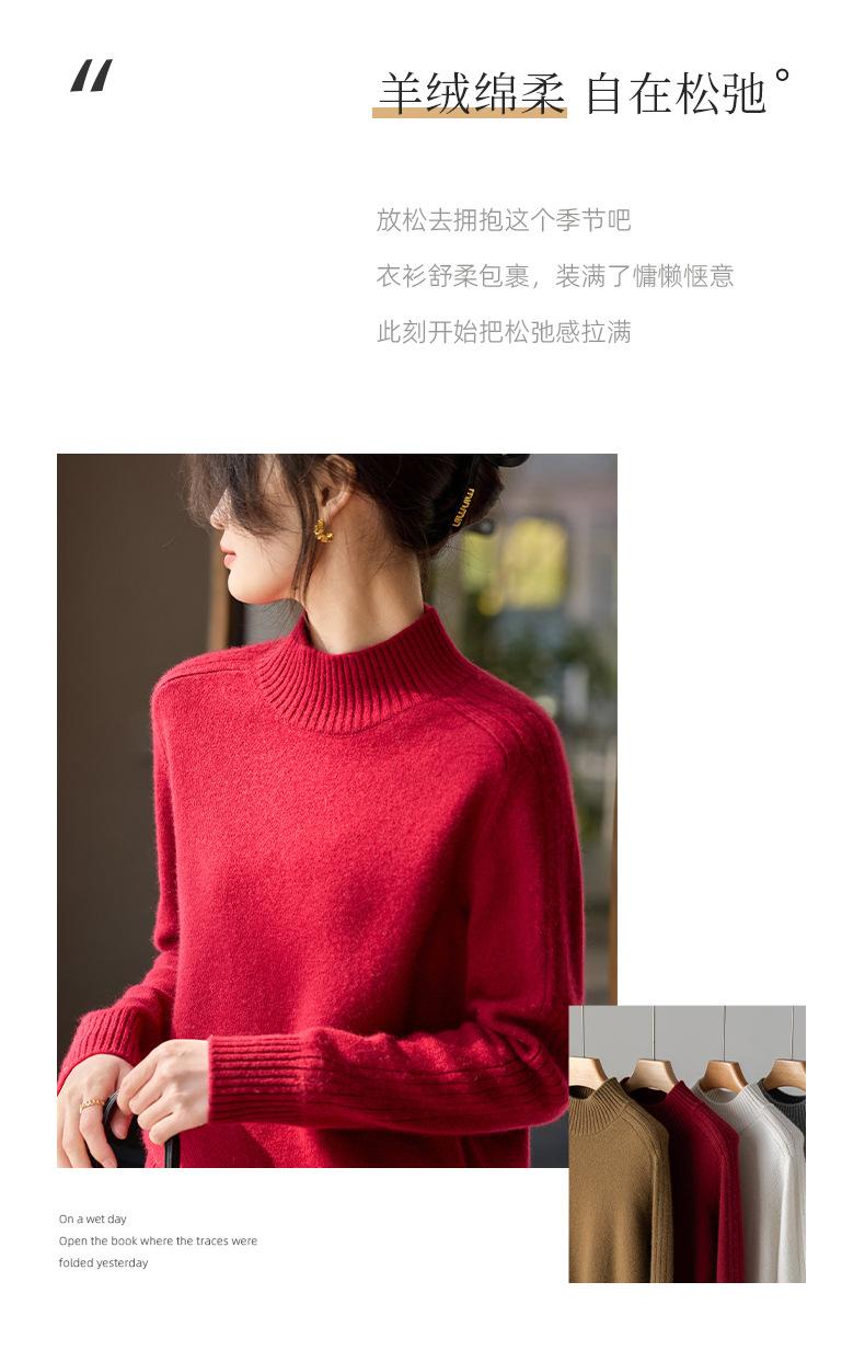 Suéter de Cachemira 100% Pura para Mujer, Color Puro, Cuello Alto Medio, Grueso, Suelto, Casual, Otoño e Invierno, Nuevo, Moda Versátil
