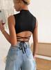 Camisola Sexy Transfronteriza Europea y Americana en Forma de I, Chaleco de Verano Nuevo Ajustado con Tirantes, Top Corto sin Mangas de Color Sólido para Mujer