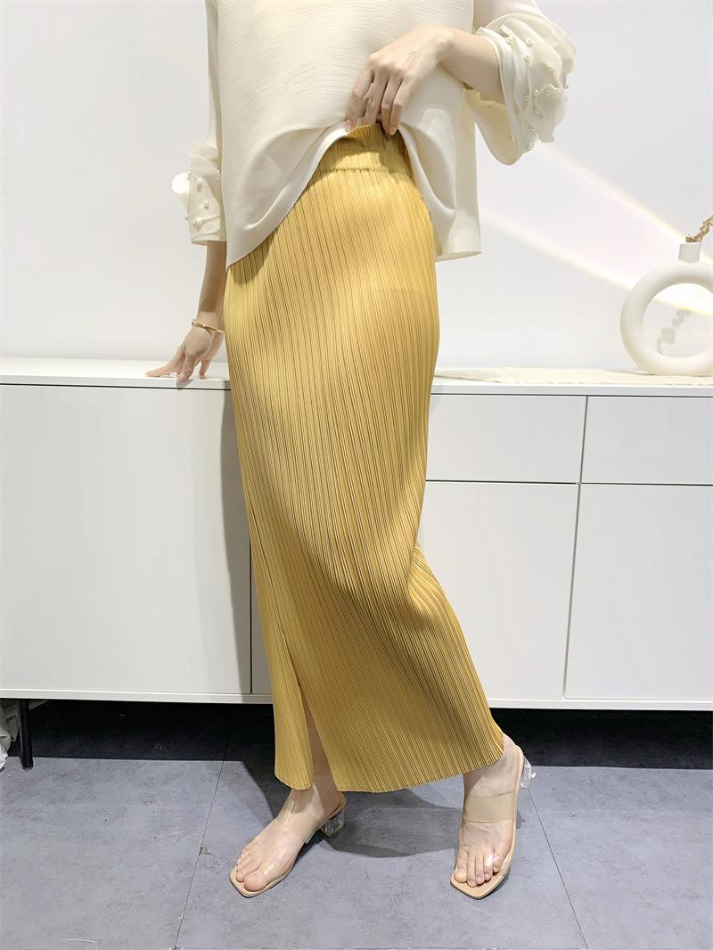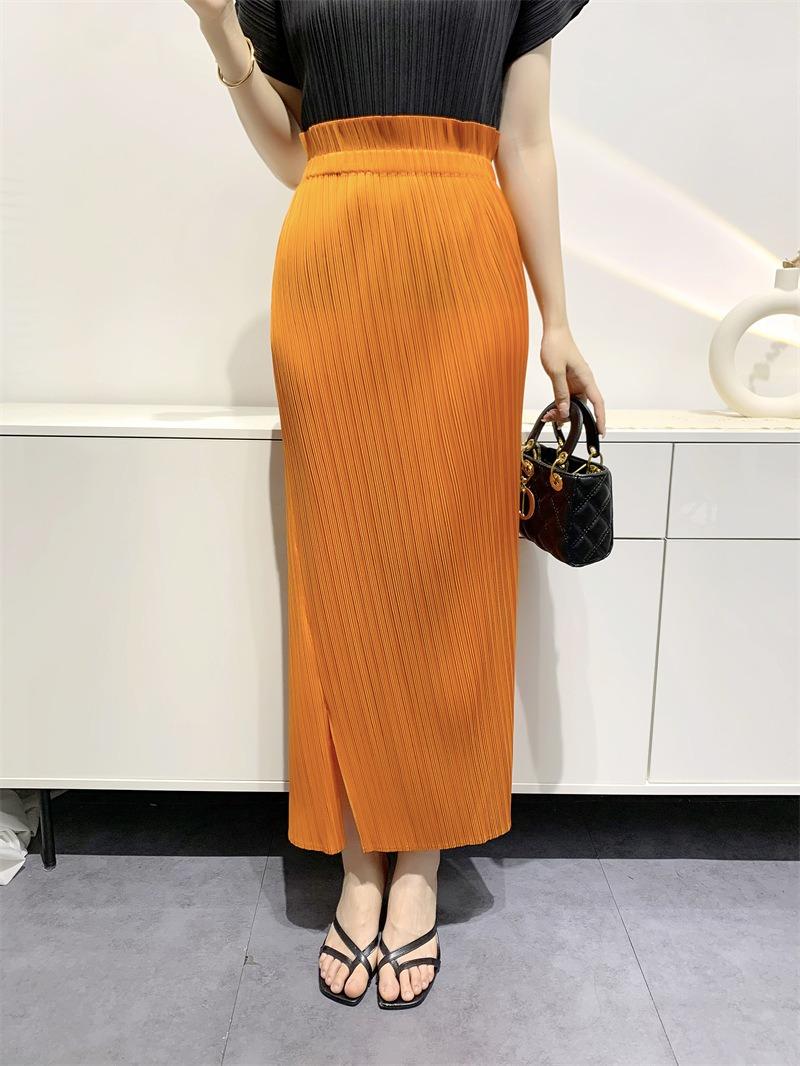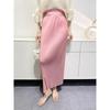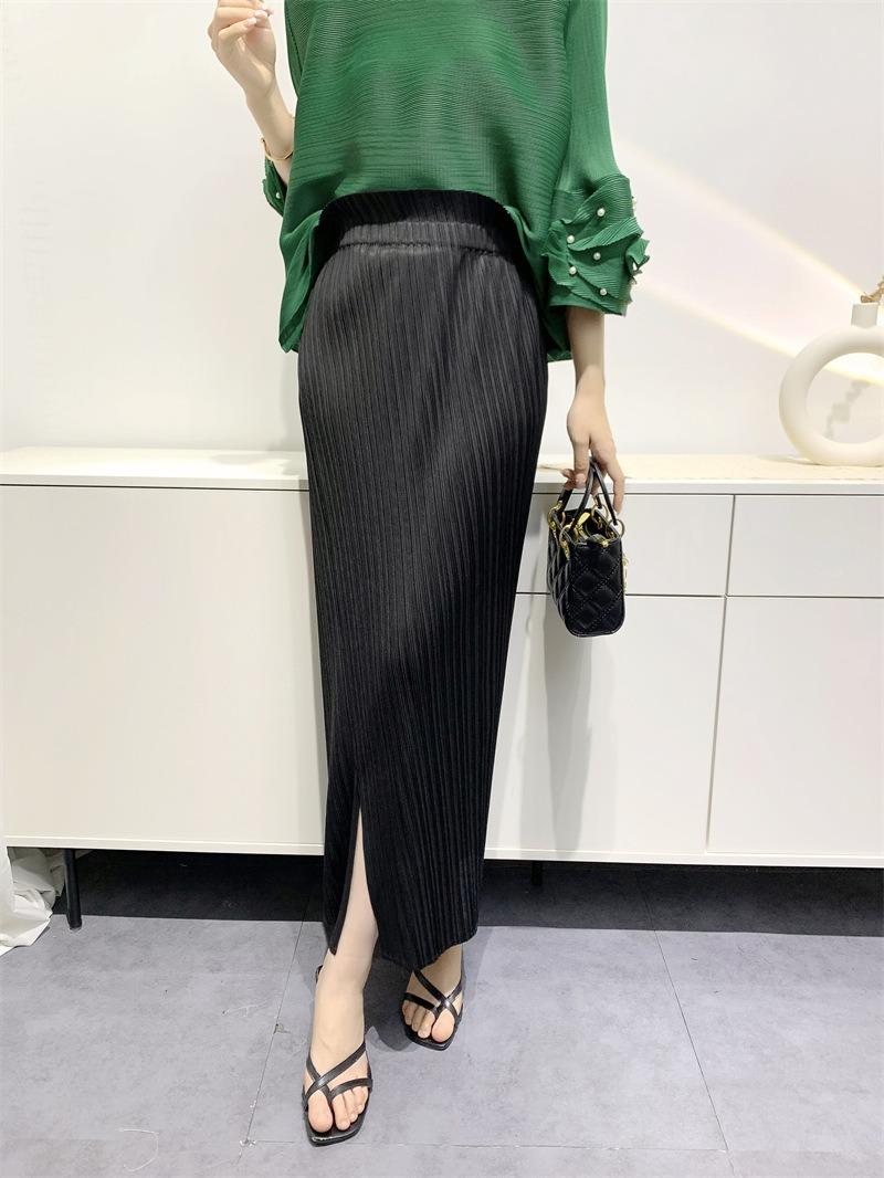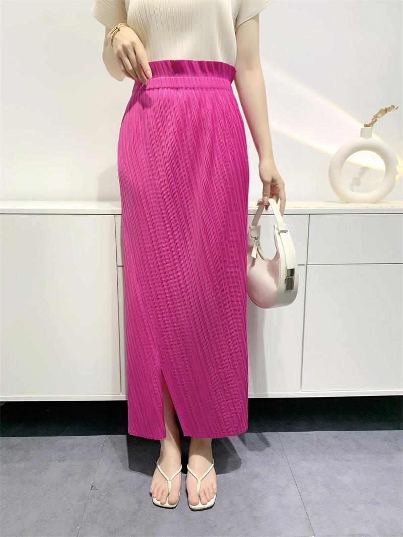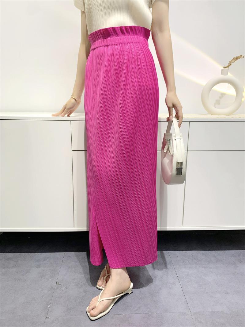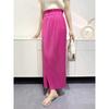 Falda Plisada Estilo Miyake Verano 2024 Adelgazante Cintura Alta Elástica Talla Grande Abertura Falda Larga Plisada Casual Japonés y Coreano