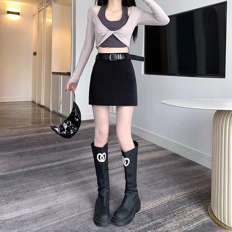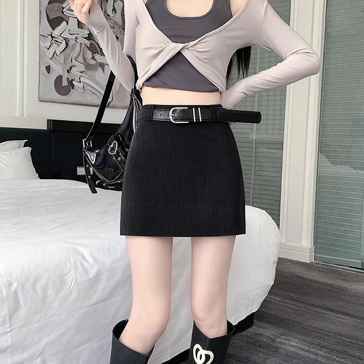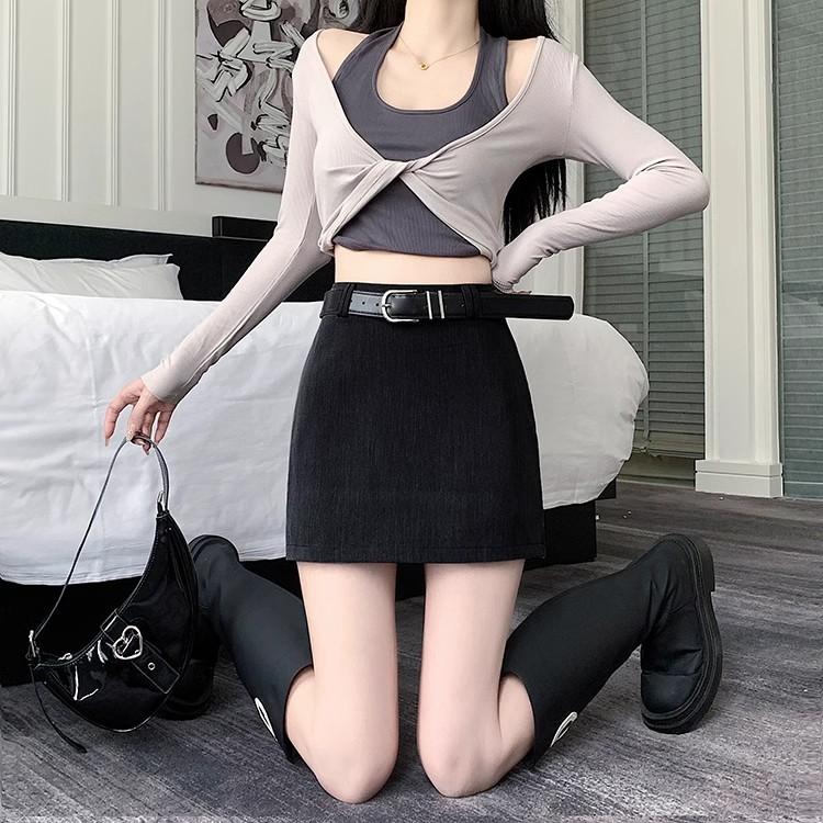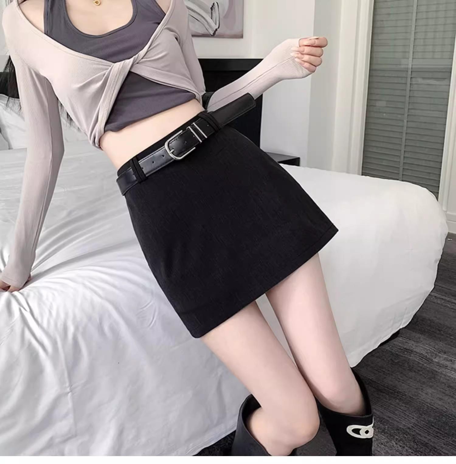 Traje Falda para Mujer 2025 Nuevo Primavera y Verano Falda Sexy de Cintura Alta Corte A Falda Corta de Un Paso Cubre Caderas para Personas Pequeñas