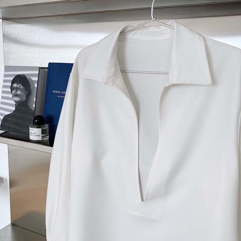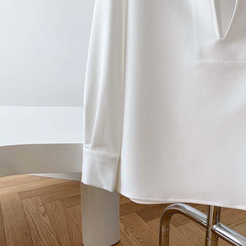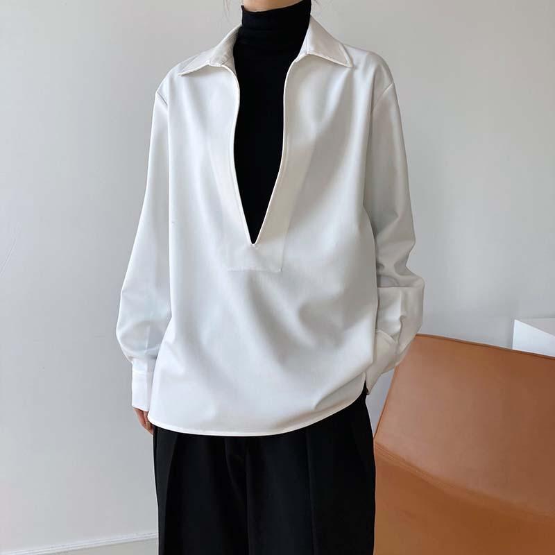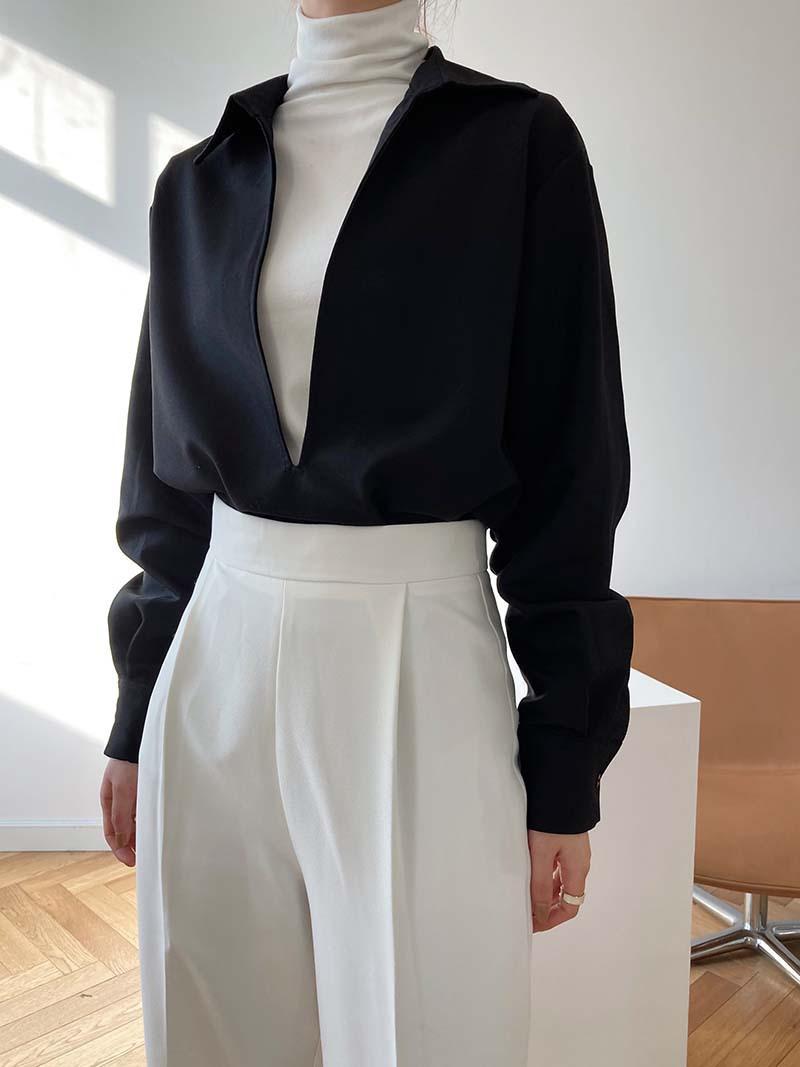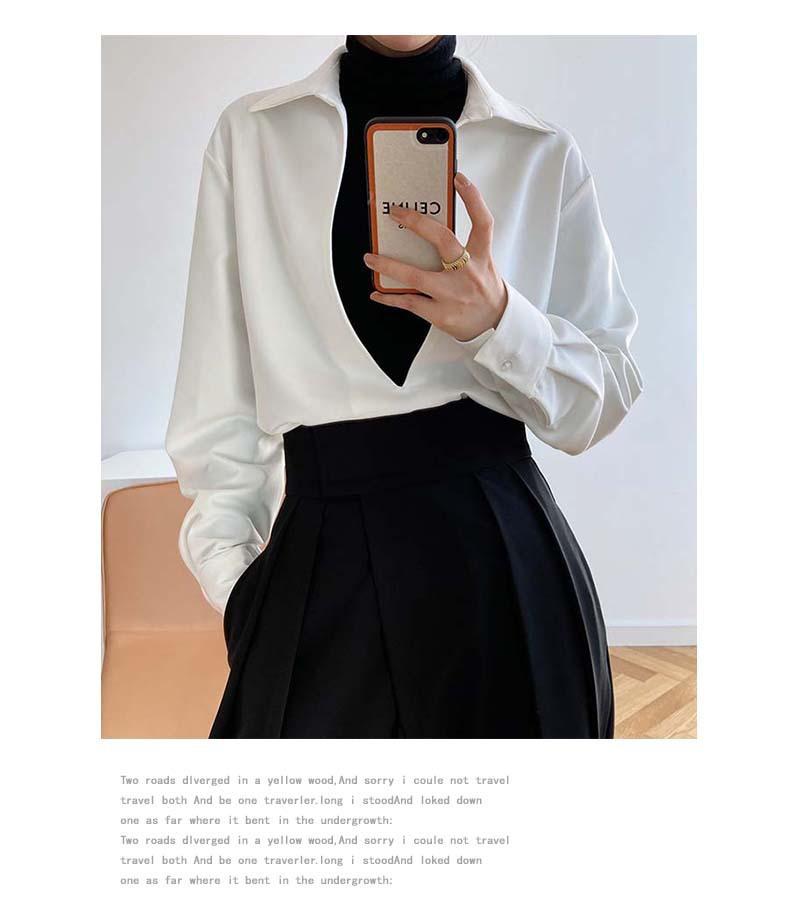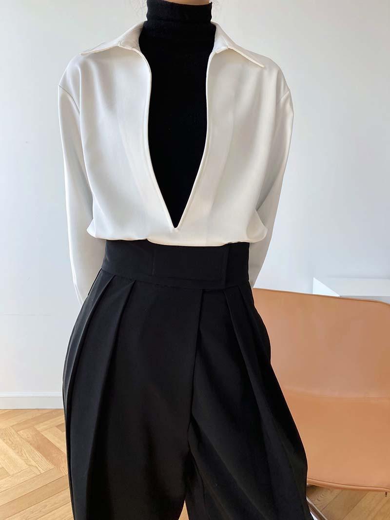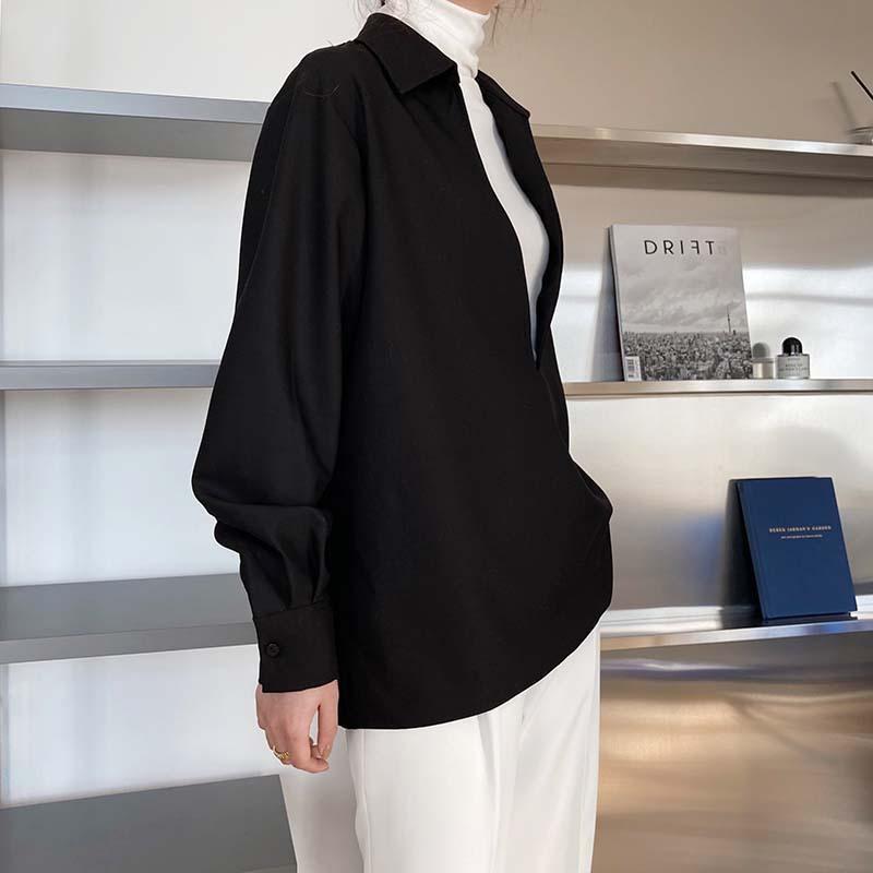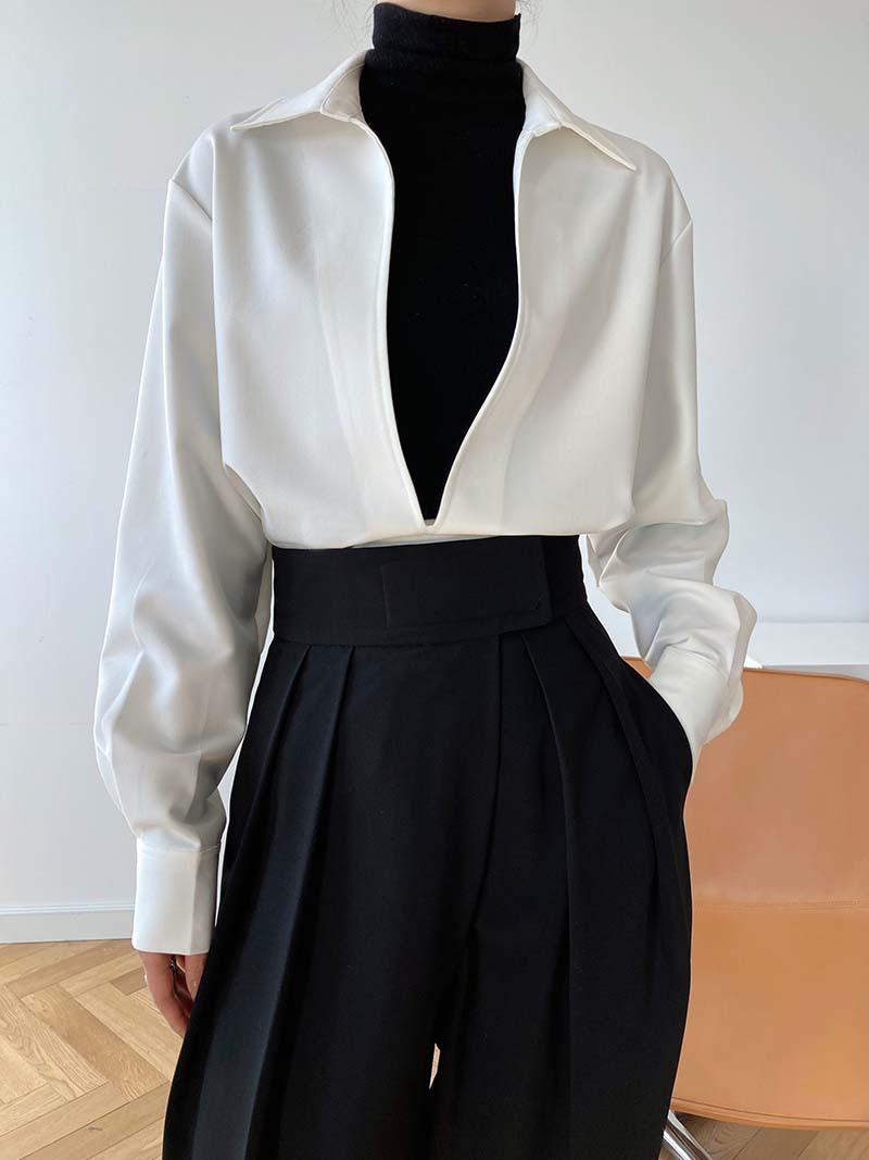 Camisa de Manga Larga Negra de Moda para Mujer Apilada Blanca para Mujer Sentido del Diseño Nicho Estilo Hong Kong Chic Francés Top con Cuello en V