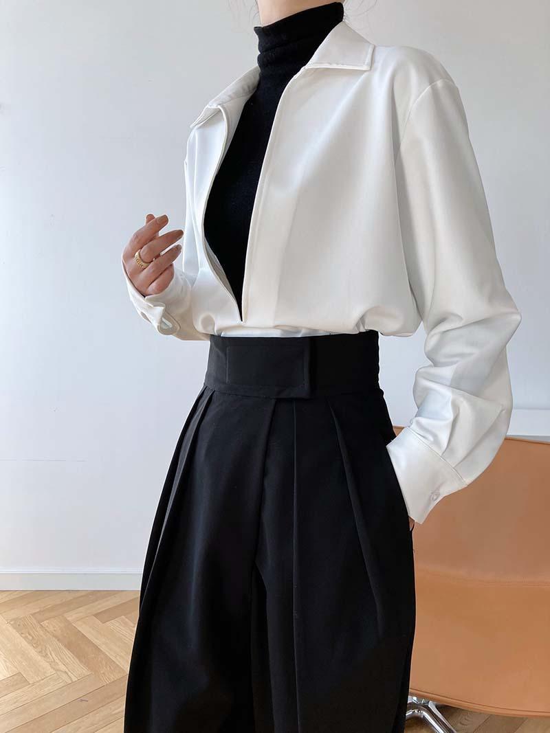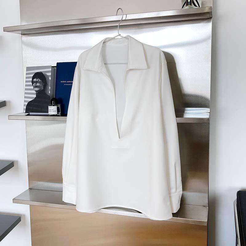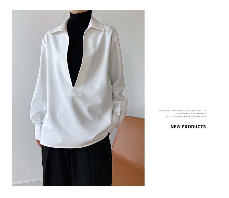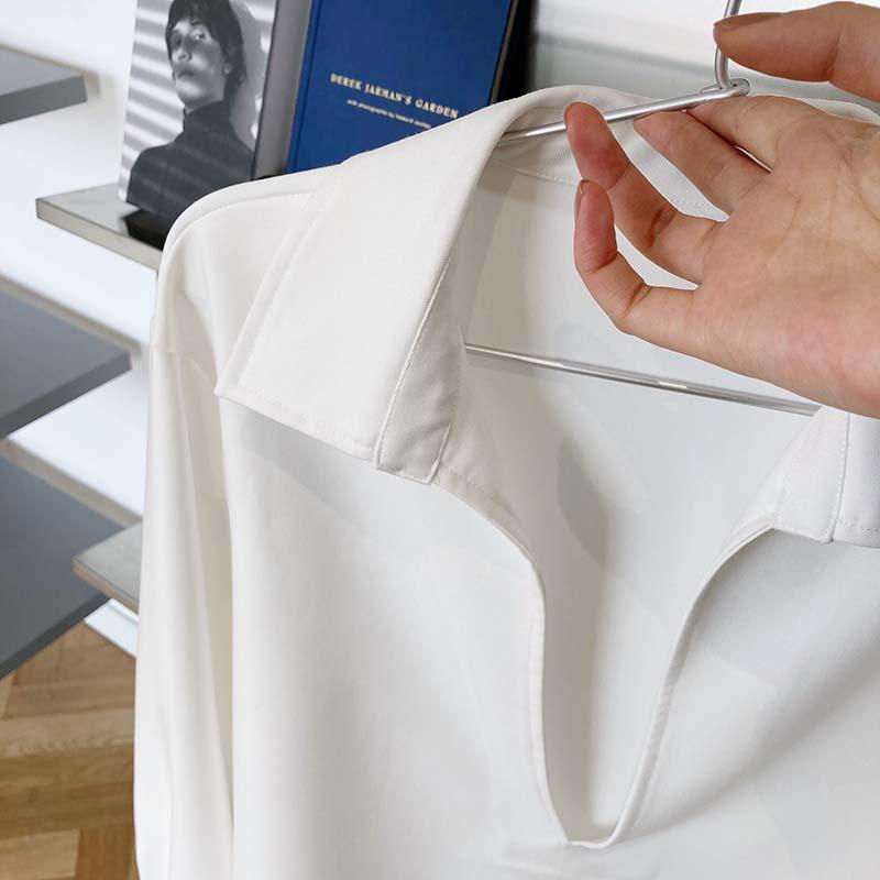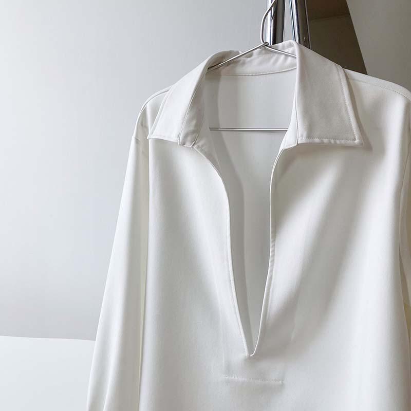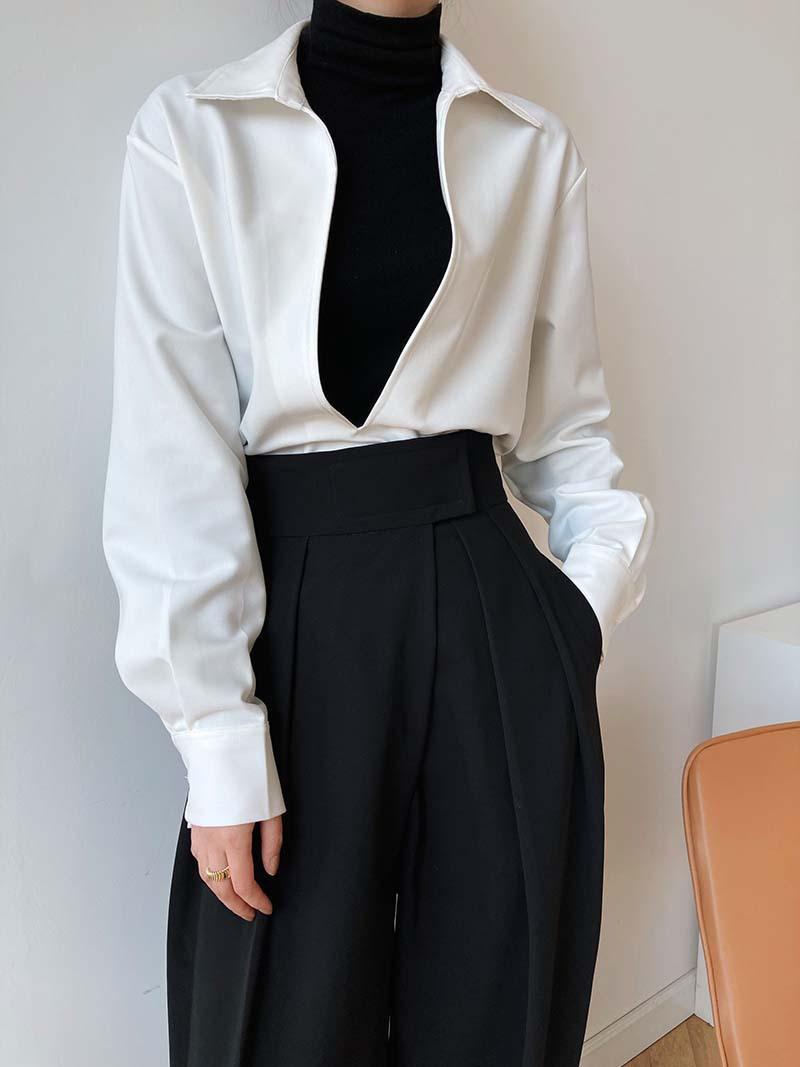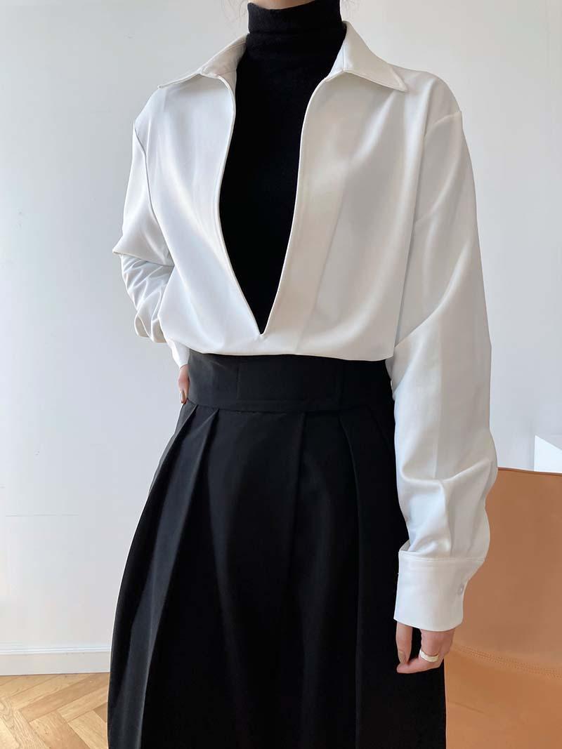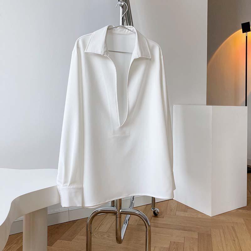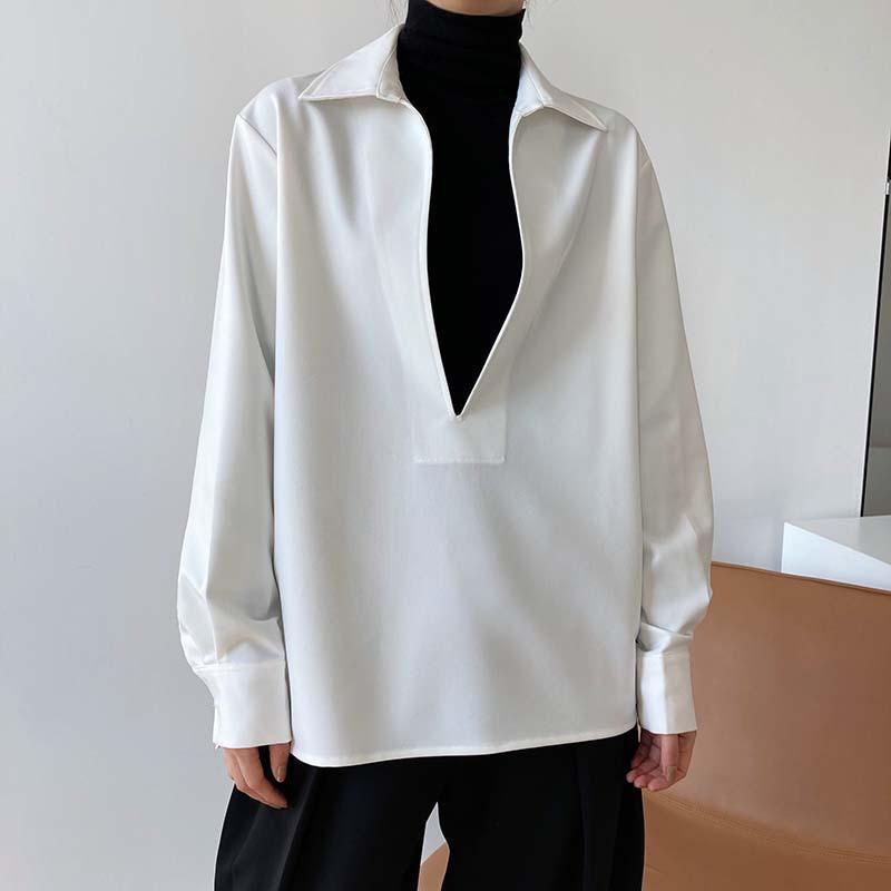 Camisa de Manga Larga Negra de Moda para Mujer Apilada Blanca para Mujer Sentido del Diseño Nicho Estilo Hong Kong Chic Francés Top con Cuello en V