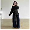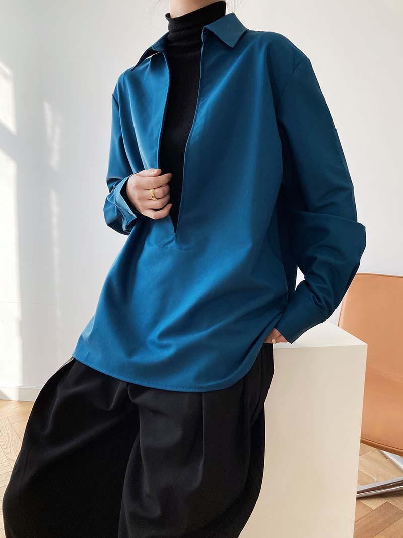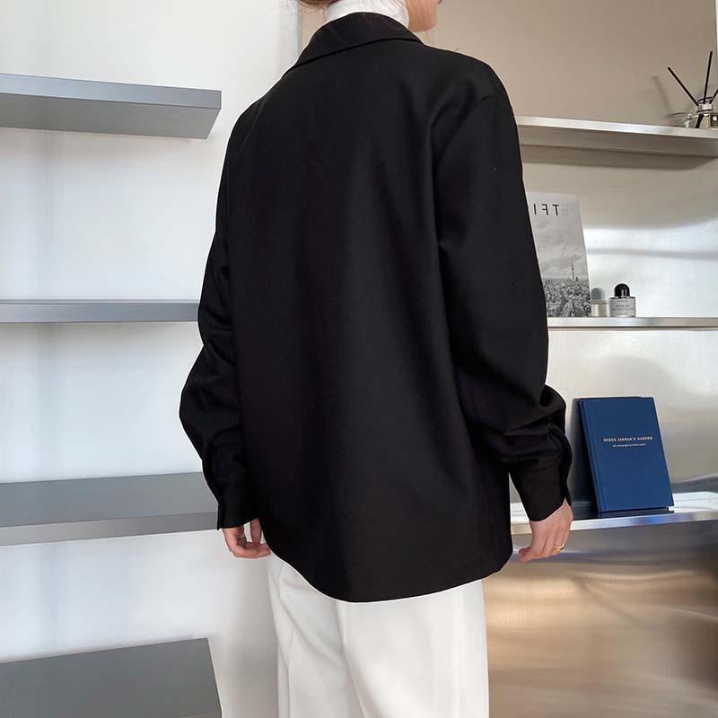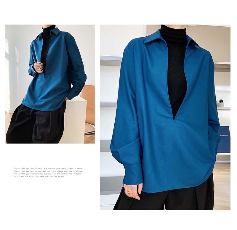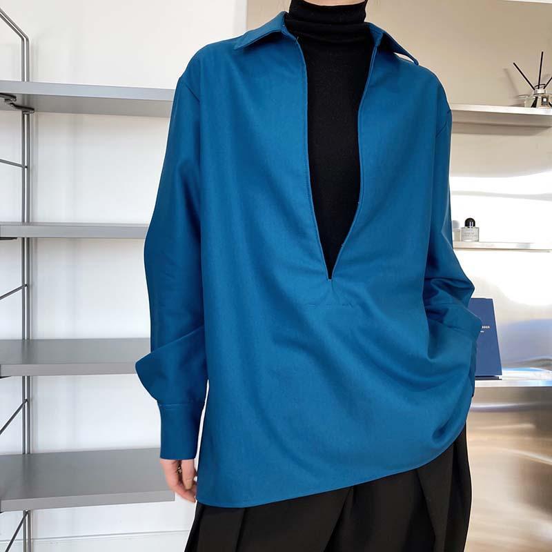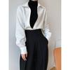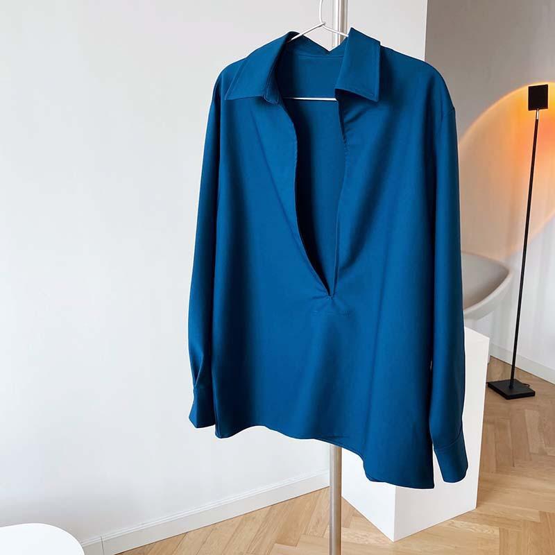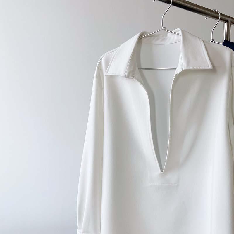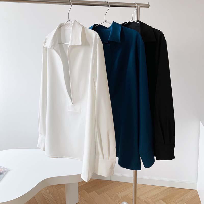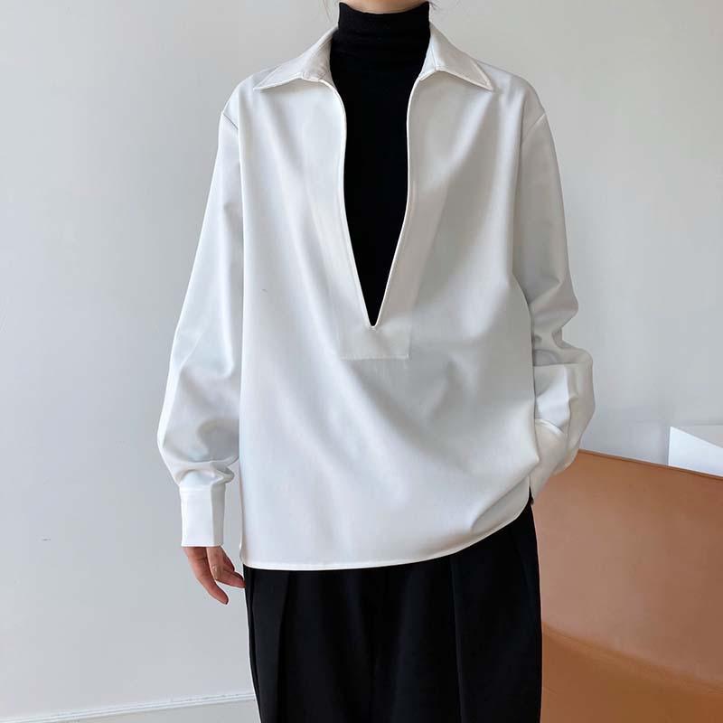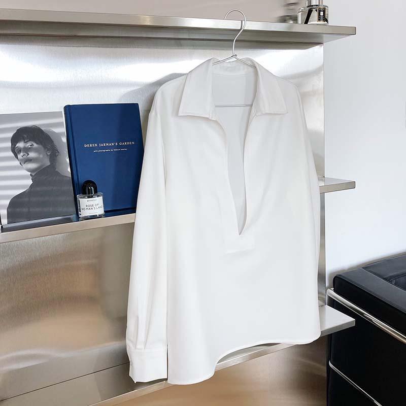 Camisa de Manga Larga Negra de Moda para Mujer Apilada Blanca para Mujer Sentido del Diseño Nicho Estilo Hong Kong Chic Francés Top con Cuello en V