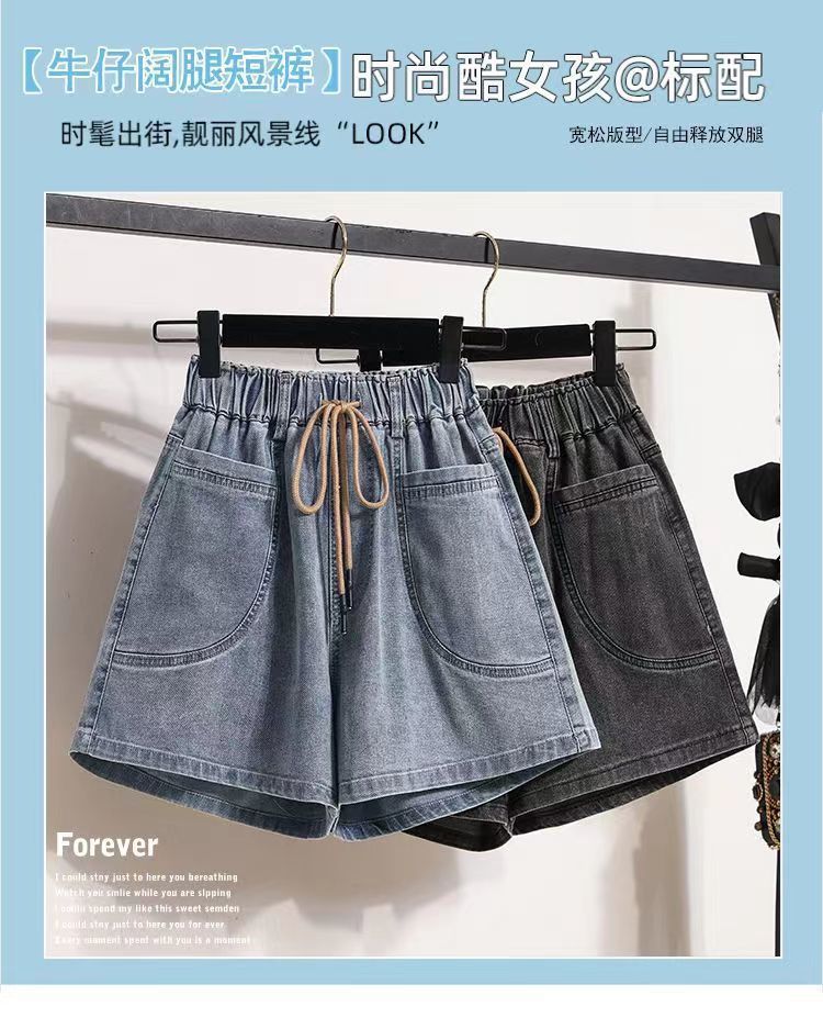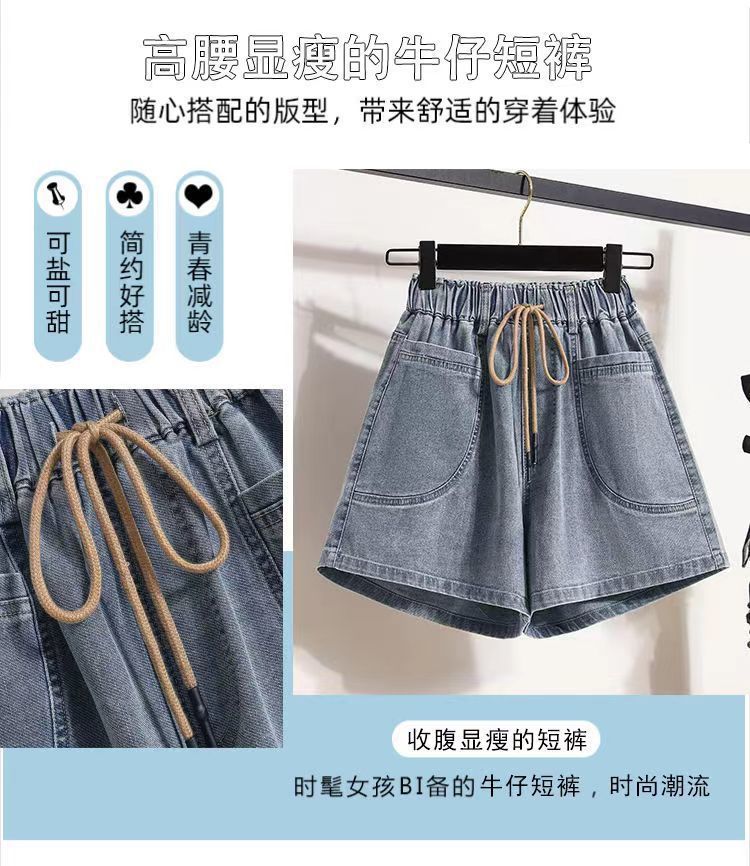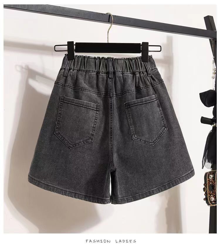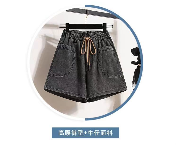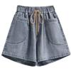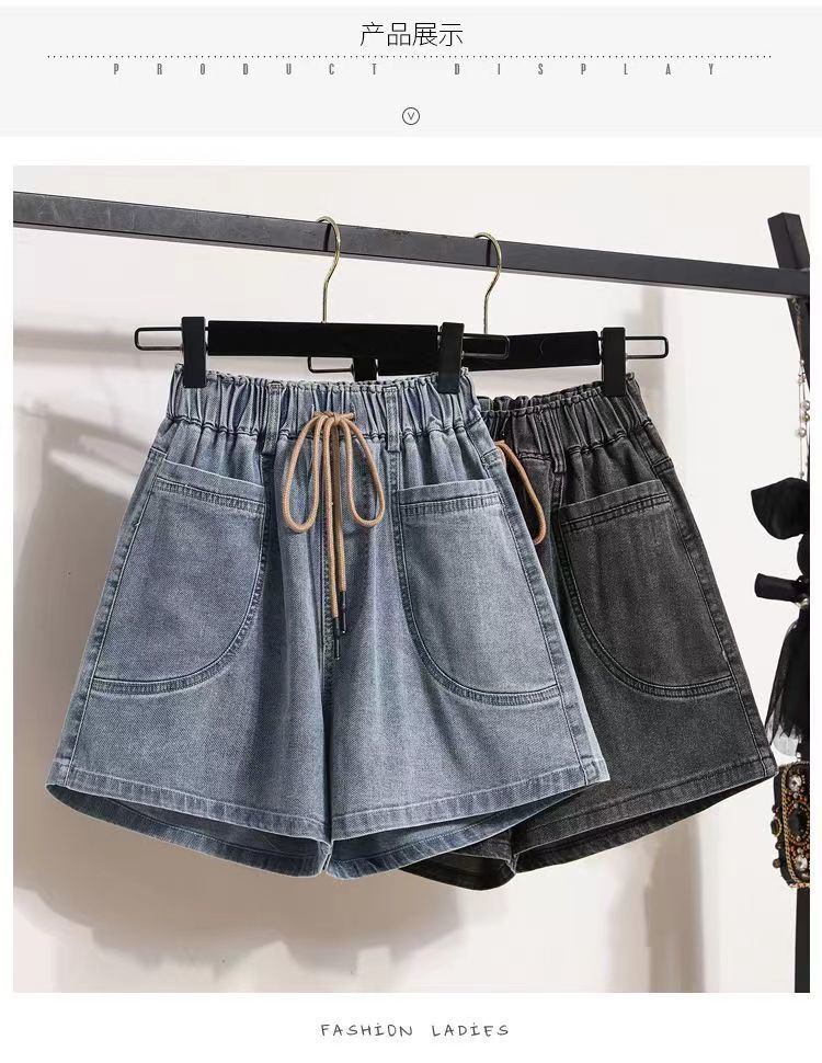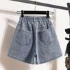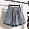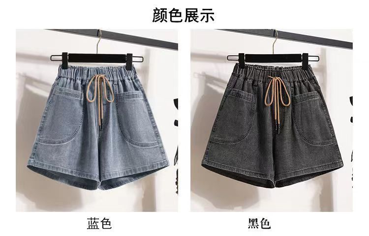 Verano 2024 Nuevos Shorts de Mezclilla de Talla Grande con Cintura Elástica Suave Estilo Coreano para Gorditas Cintura Alta Pierna Ancha Casual Hot Pants