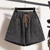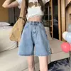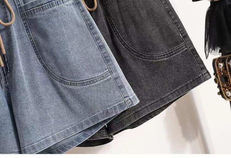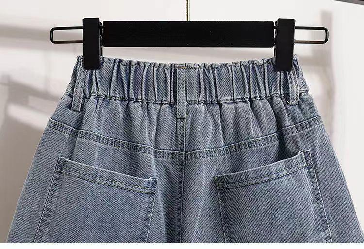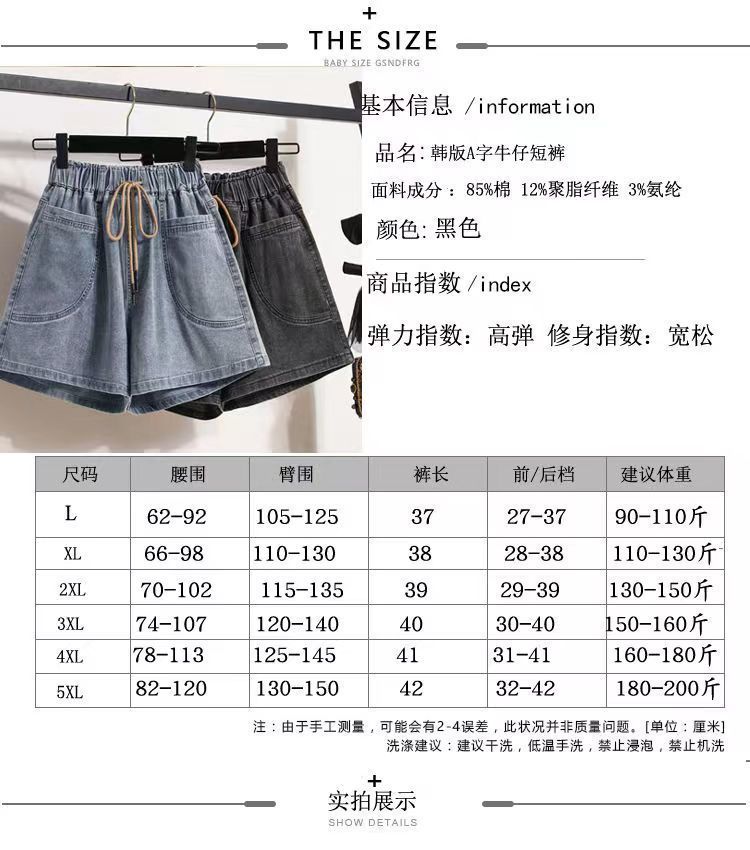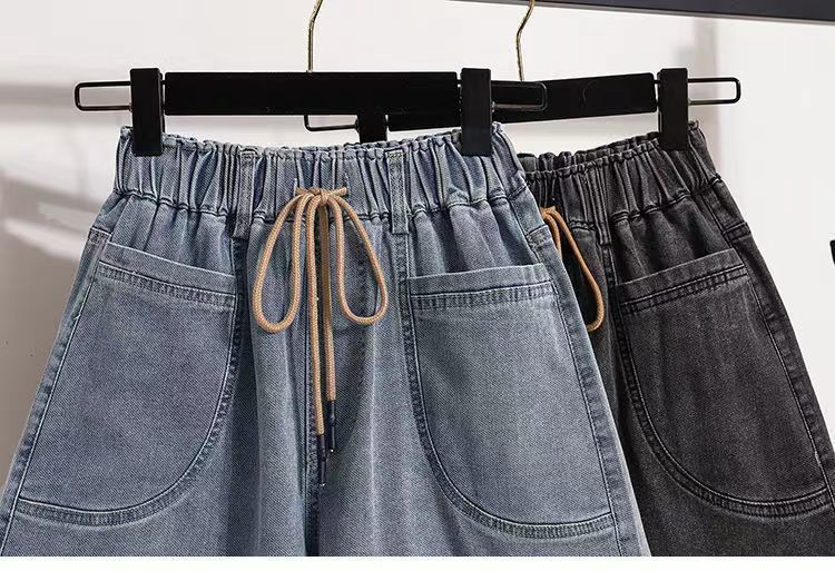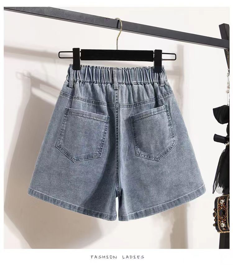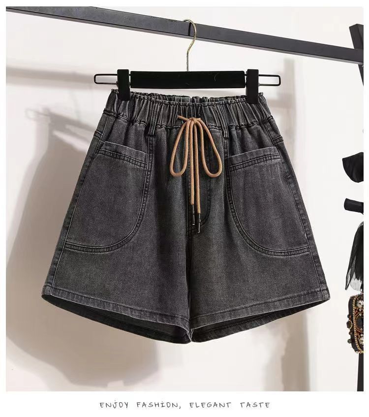 Verano 2024 Nuevos Shorts de Mezclilla de Talla Grande con Cintura Elástica Suave Estilo Coreano para Gorditas Cintura Alta Pierna Ancha Casual Hot Pants
