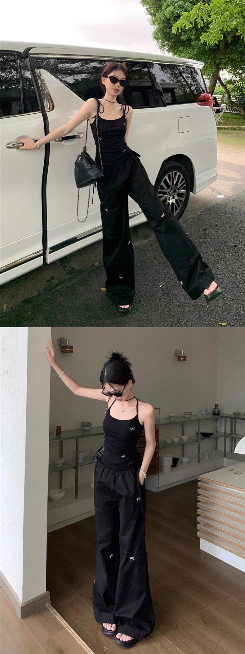 Estilo Retro Cool de Hong Kong Lazo de Moño Estilo Lazy Camisola de Deseo Puro Top de Verano para Mujer Temperamento