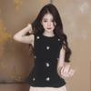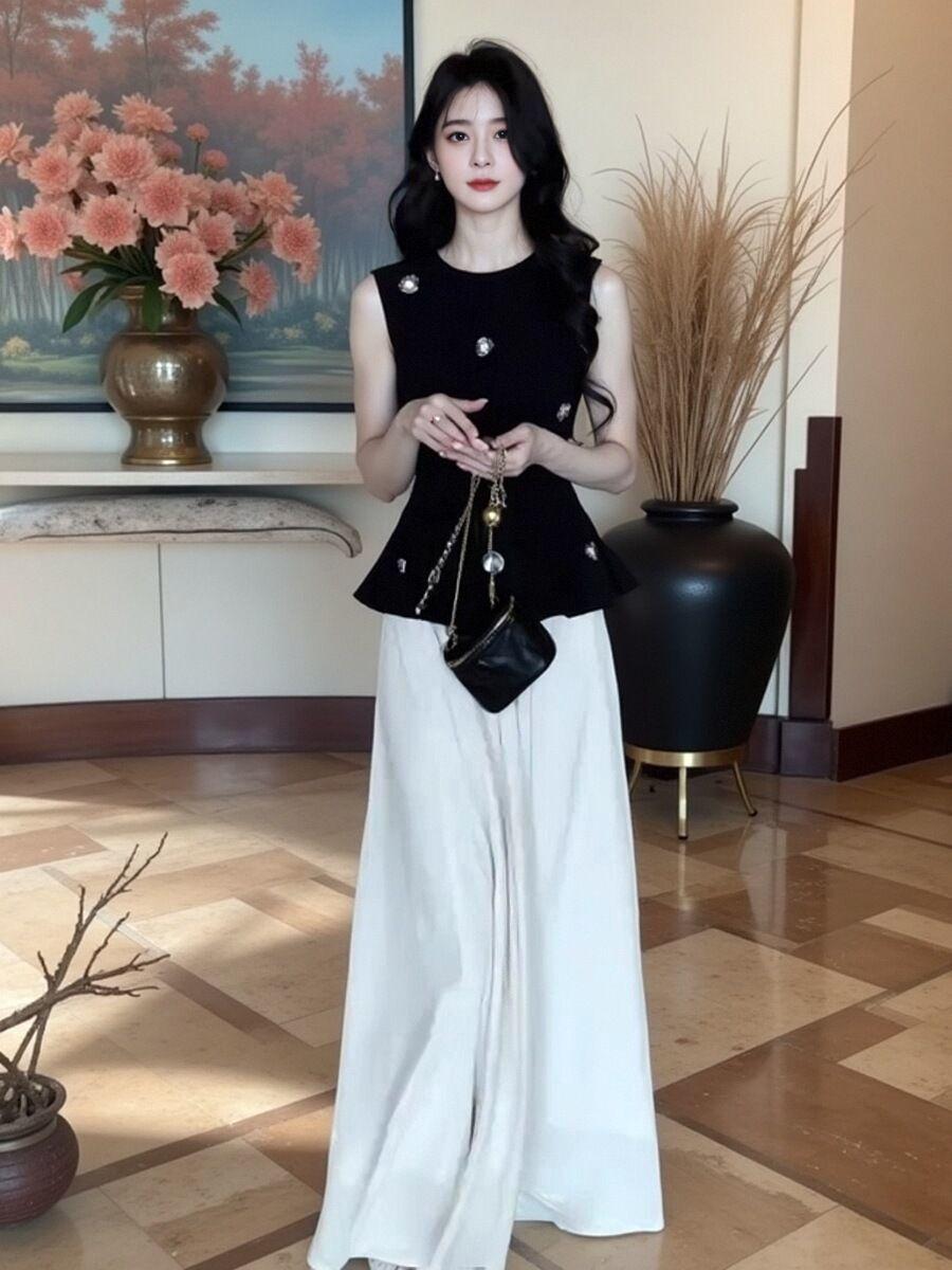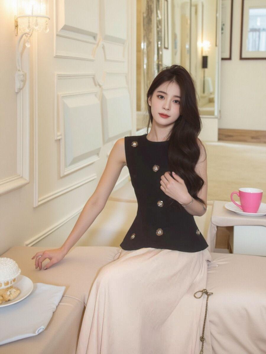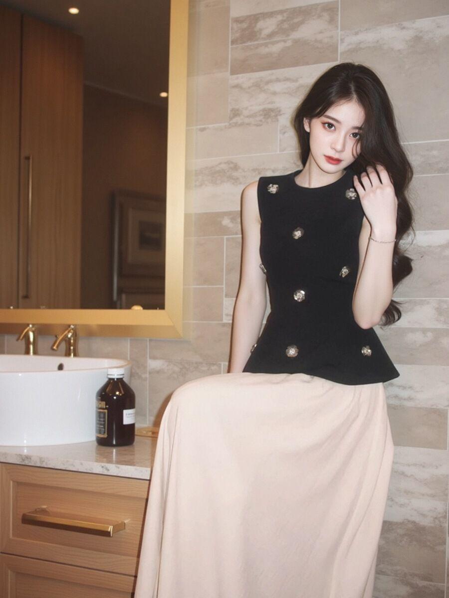Conjunto de Chaleco Floral Tridimensional Negro sin Mangas y Falda Slim de Cintura Alta para Mujer, Nuevo Estilo Primavera/Verano 2025