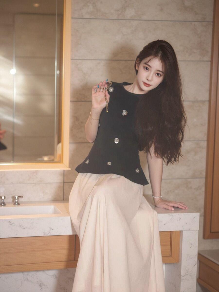 Tops [huaduoduo selection], White skirt [huaduoduo selection], Top + white skirt [two-piece set]