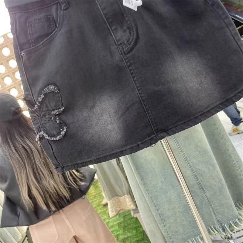 Falda de mezclilla elástica Cintura alta Adelgazante Verano 2025 Nueva Falda negra Diseño de falda ajustada Versátil