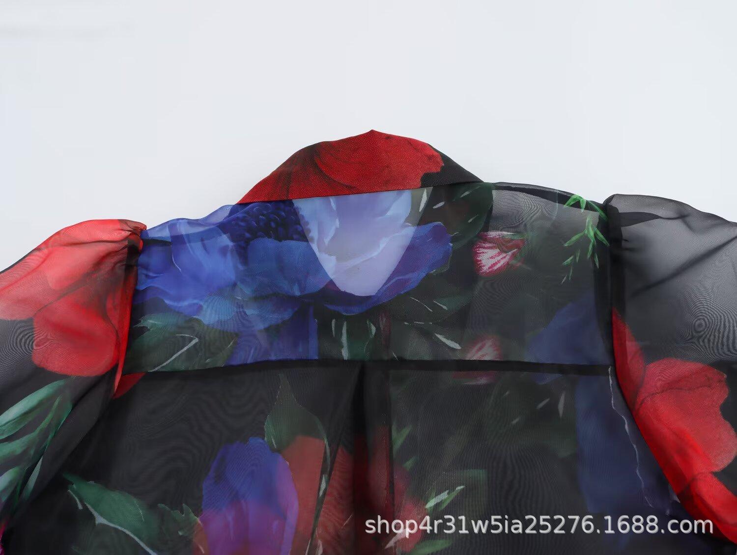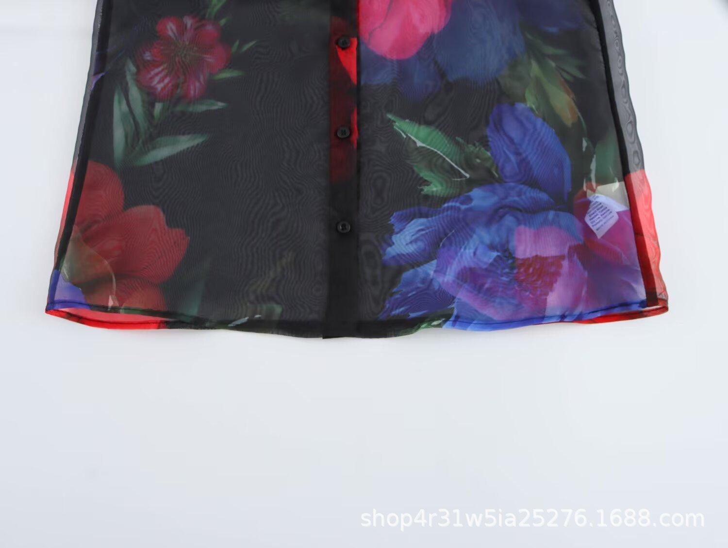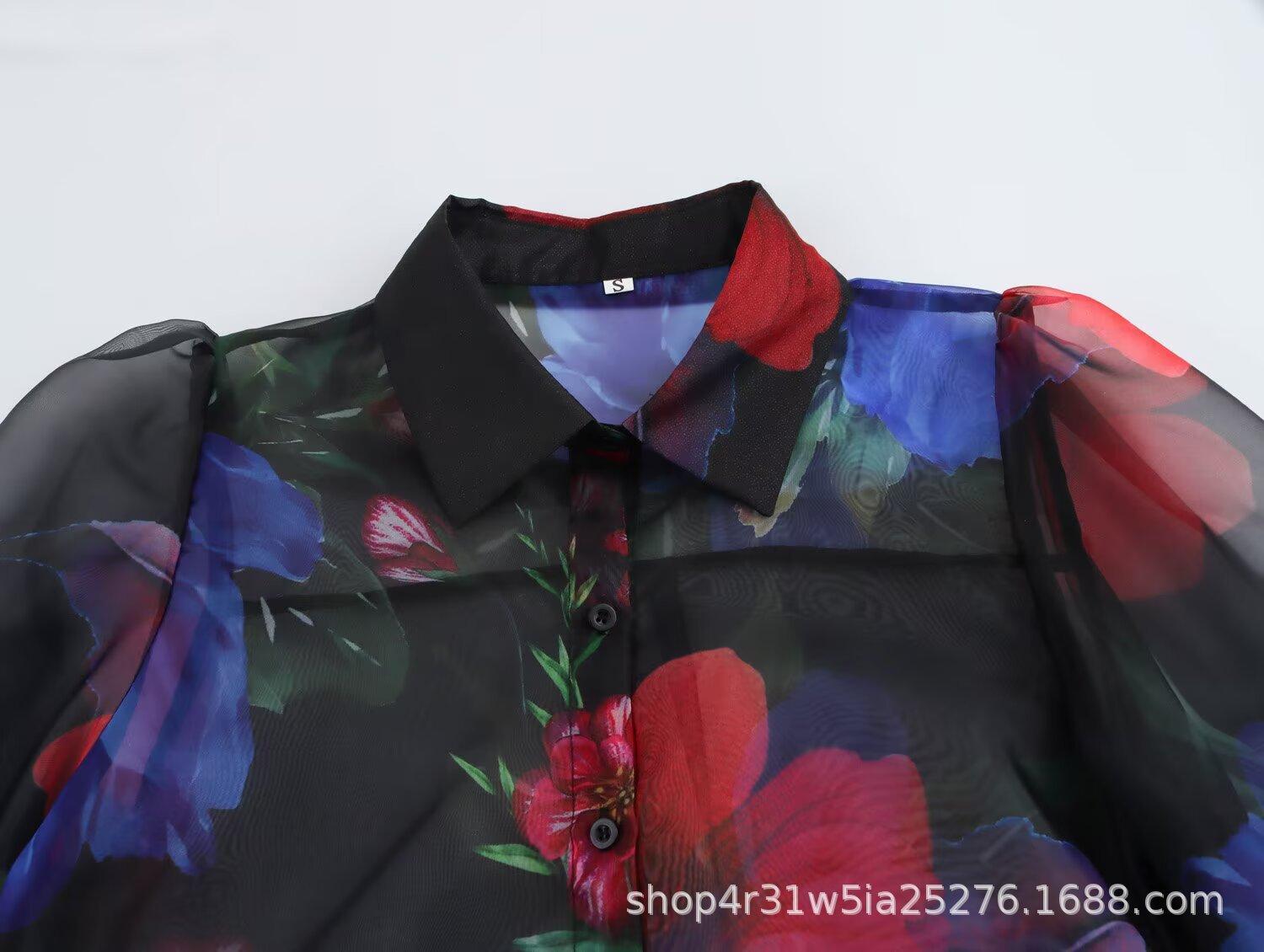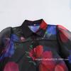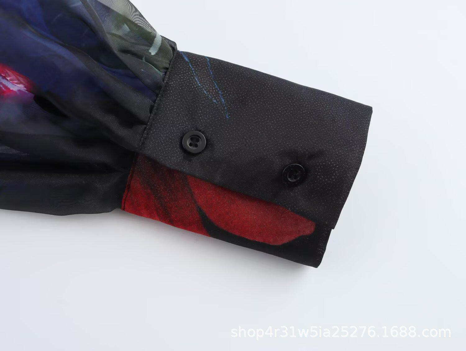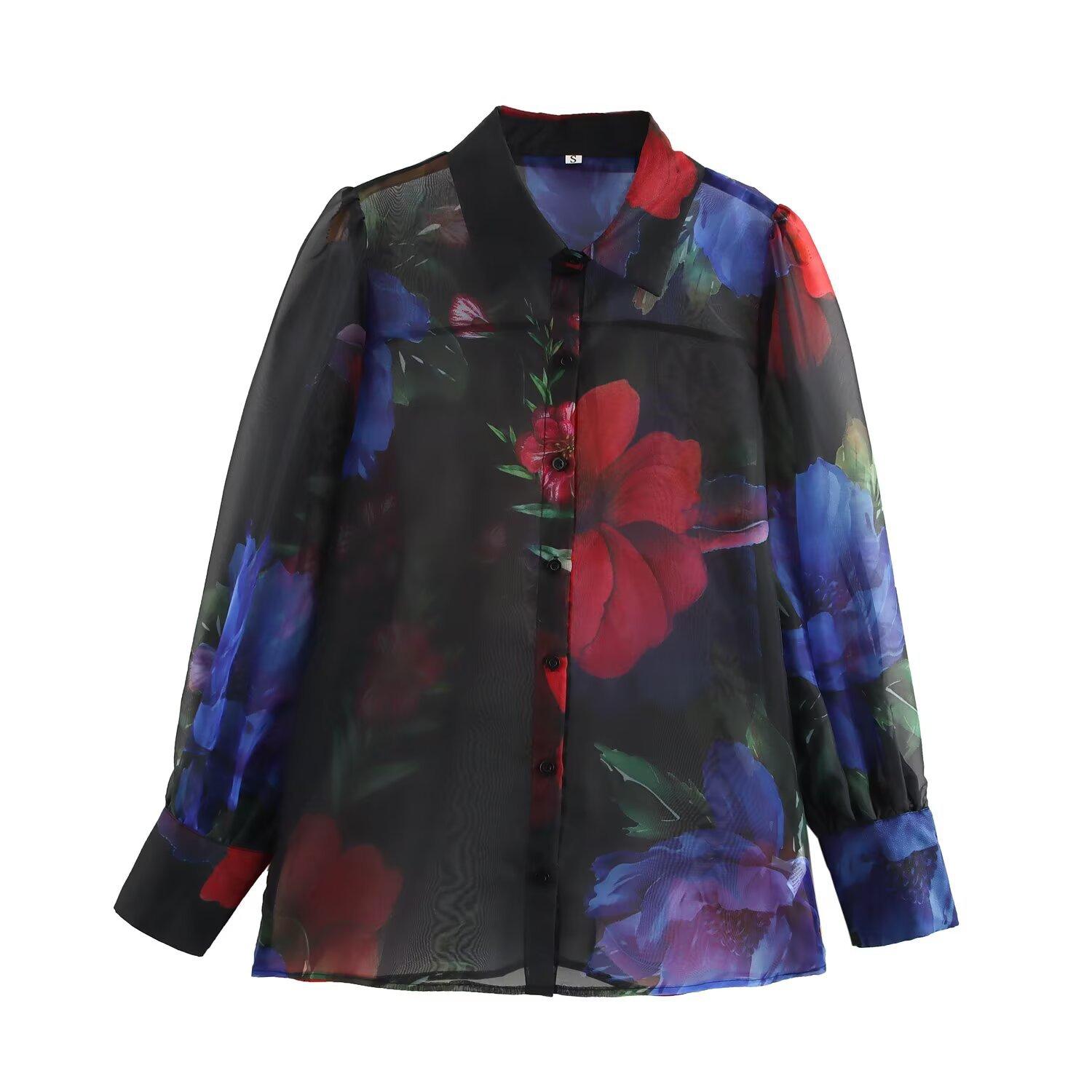 Estilo Europeo y Americano 2025 Primavera Nueva Moda Versátil Solapa Manga Larga Estampado Floral Camisa Slim