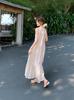 Vestido casual sin mangas para mujer 2025 rosa con dobladillo grande, cuello halter, acordonado, estilo francés, con patchwork de encaje