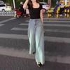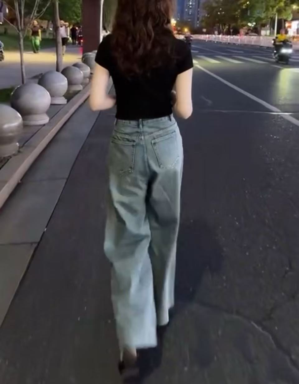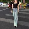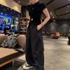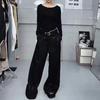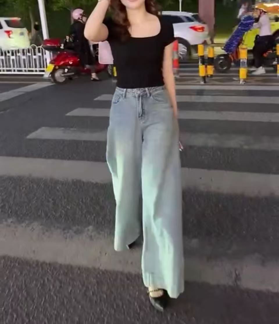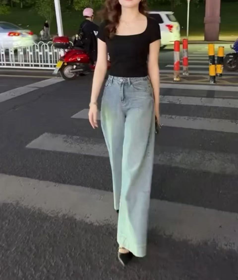 25391 Big Aimei Yiyuan 2025 Verano Nuevo Cuello Redondo Hombro Slim Camiseta Pantalones Pierna Ancha Adelgazantes Cintura Alta para Mujer