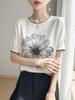 Girasol Hielo Seda Tejido Verano Nuevo Camiseta Blanca Juvenil Adelgazante para Mujer Cuello Redondo Chaleco