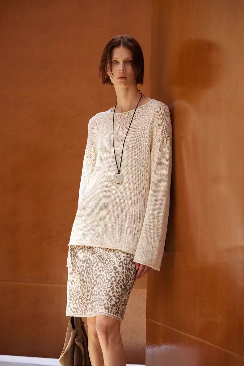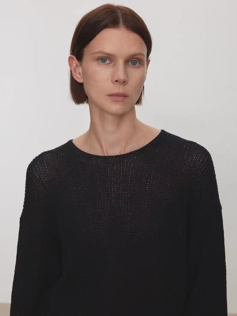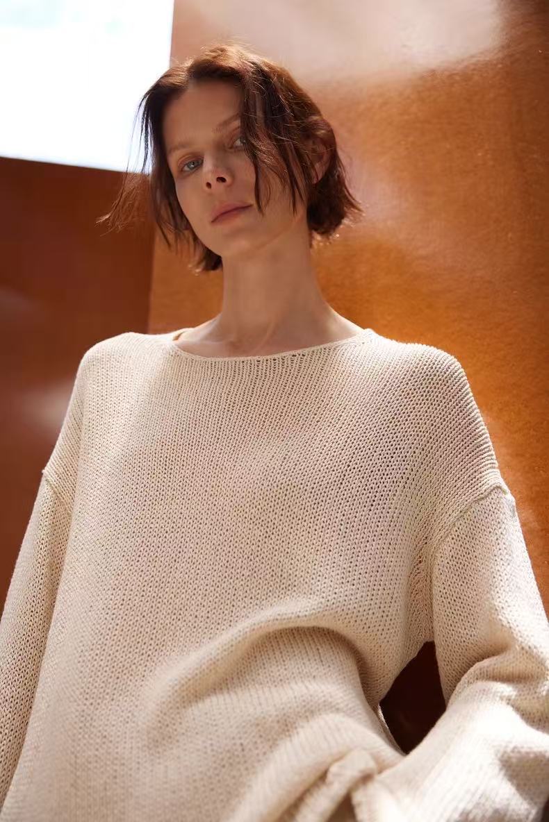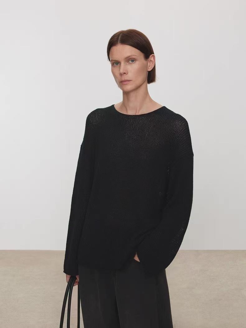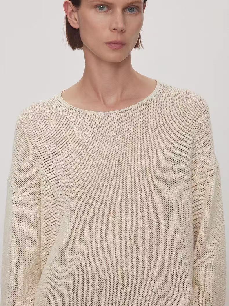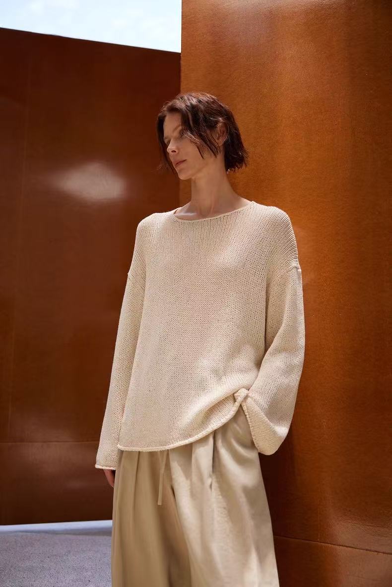 Otoño Nuevo Holgado Adelgazante Color Puro Aguja Gruesa Cuello Redondo Manga Larga Tejido de Punto Suéter para Mujer Estilo Lazy Top de Punto para Mujer