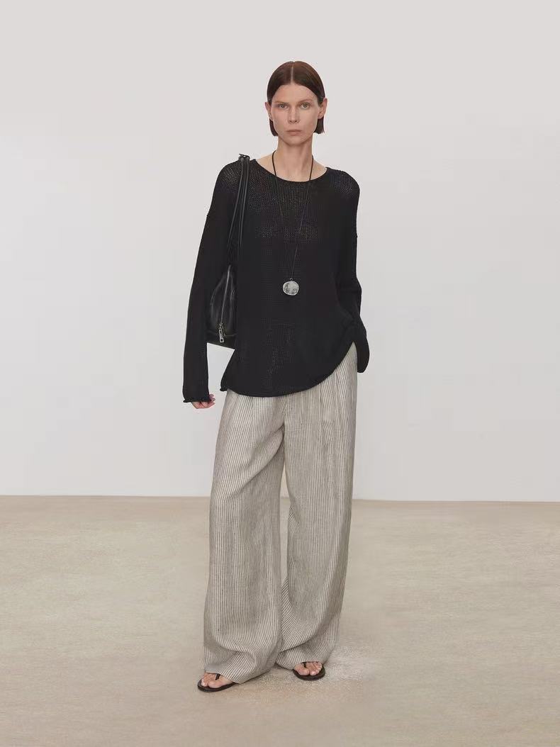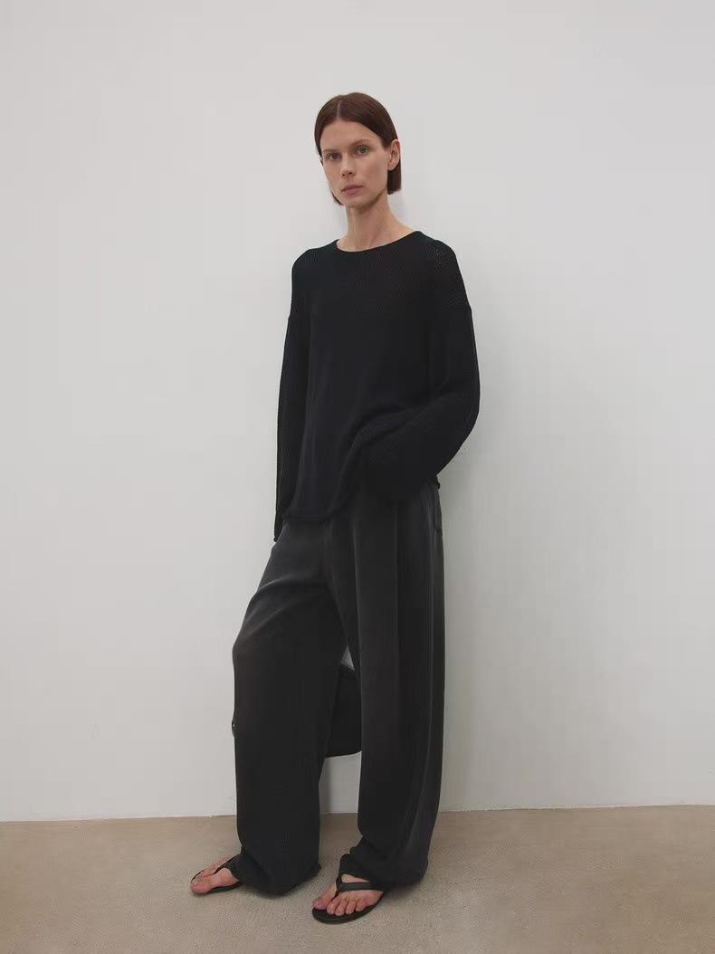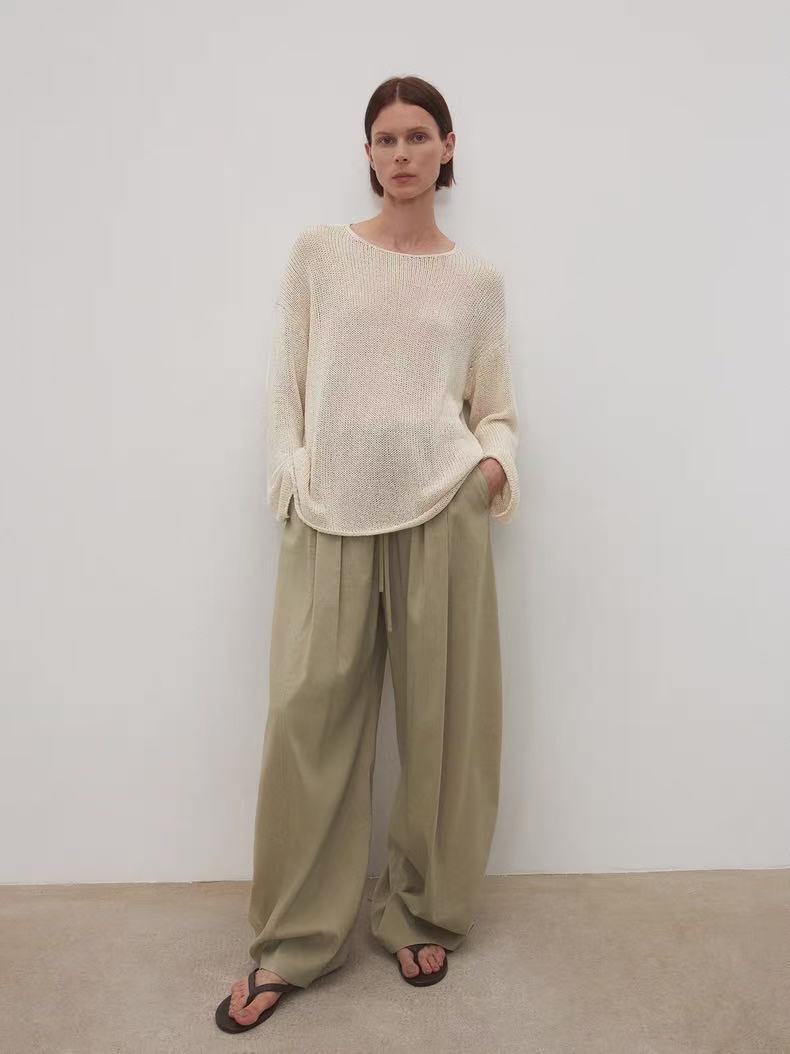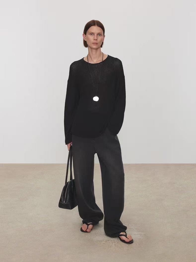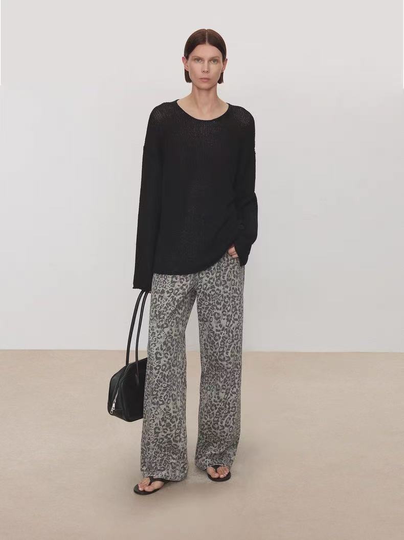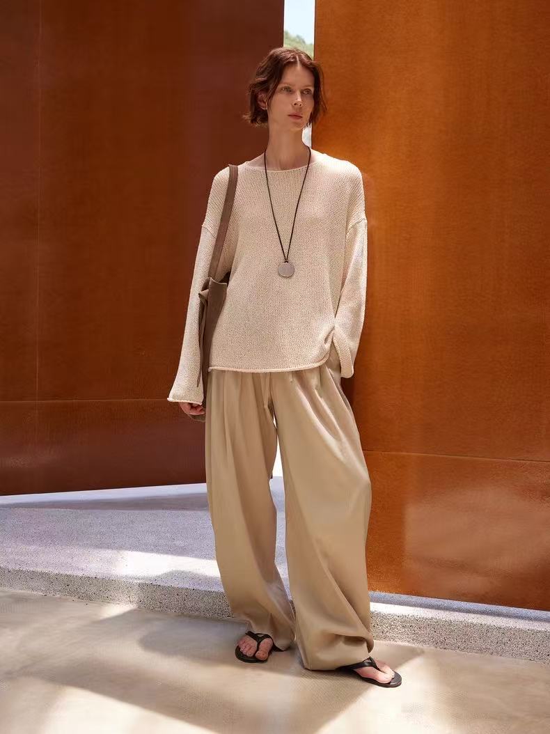 Otoño Nuevo Holgado Adelgazante Color Puro Aguja Gruesa Cuello Redondo Manga Larga Tejido de Punto Suéter para Mujer Estilo Lazy Top de Punto para Mujer