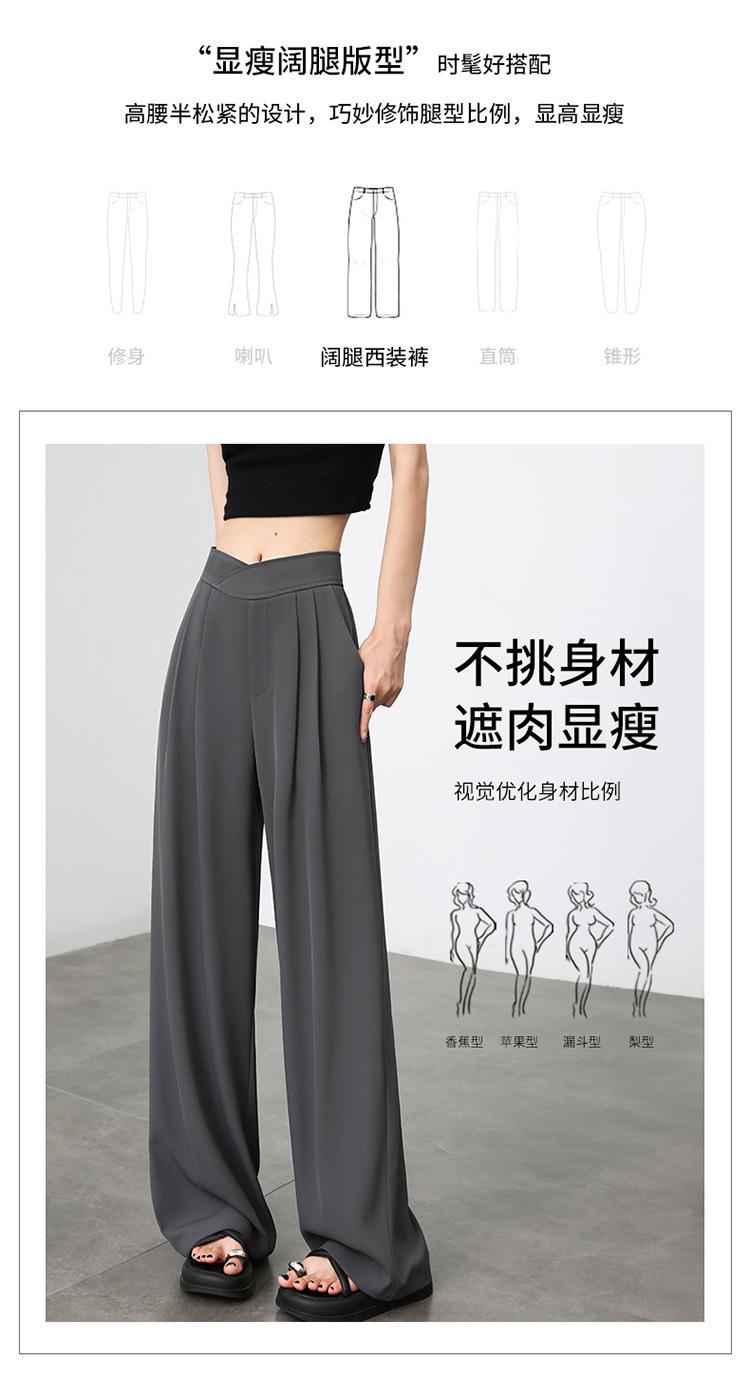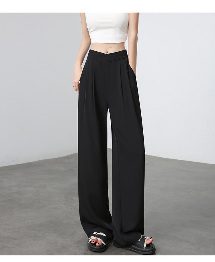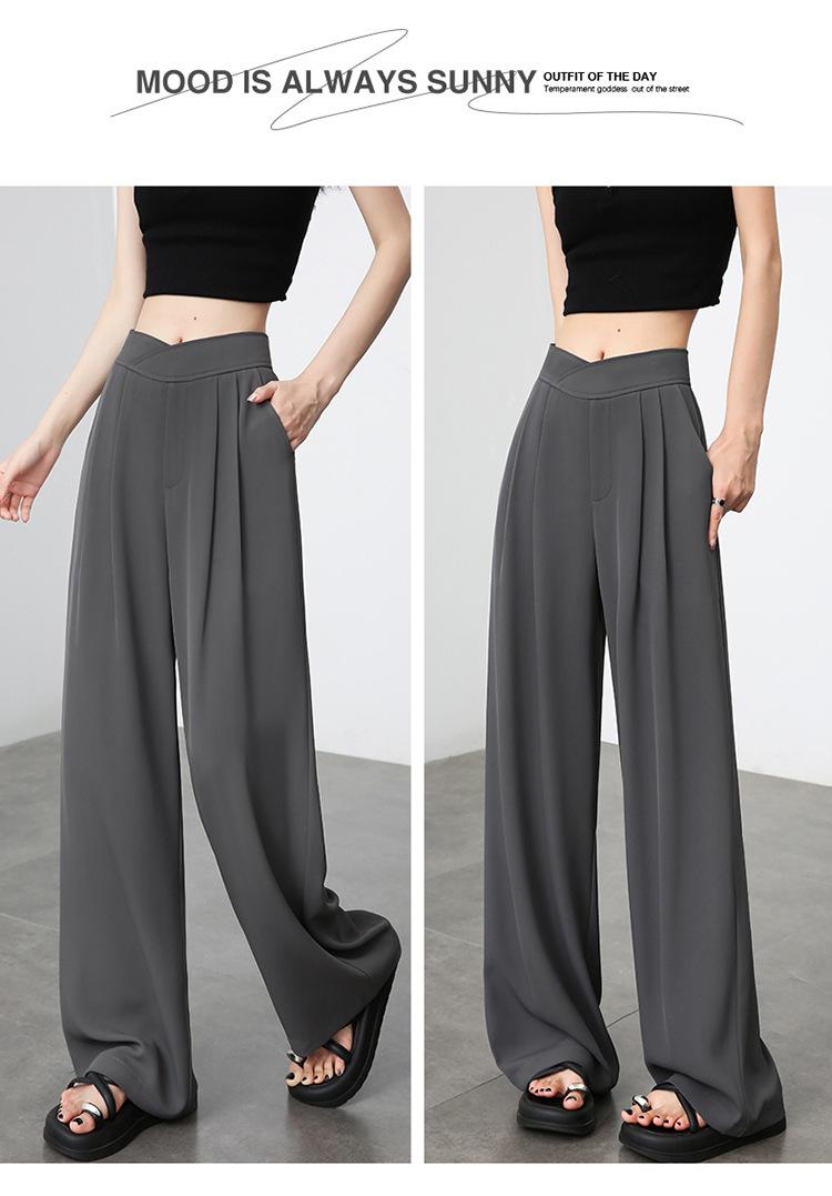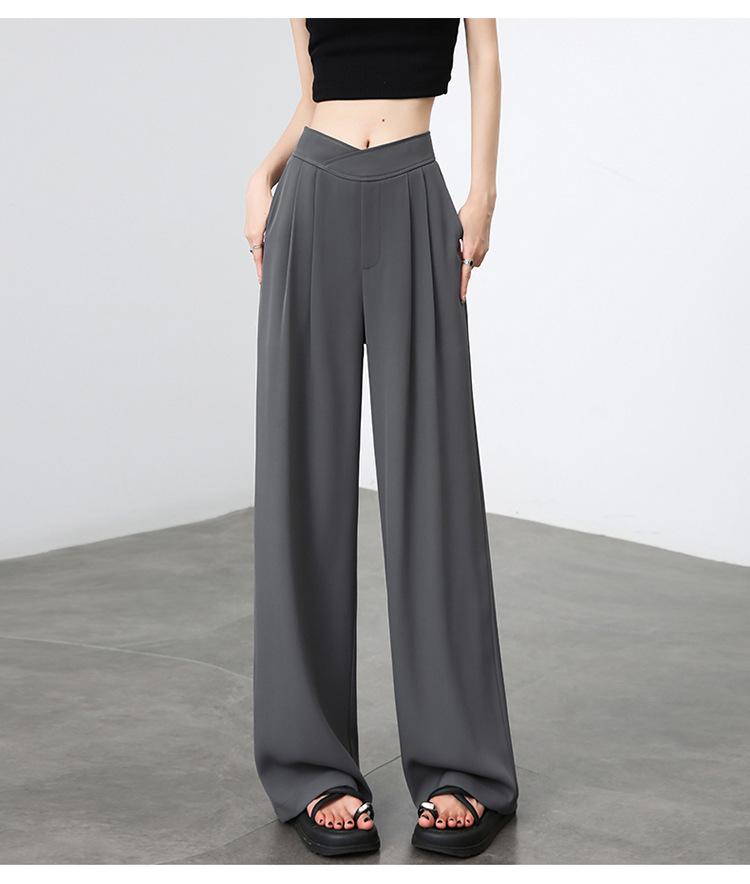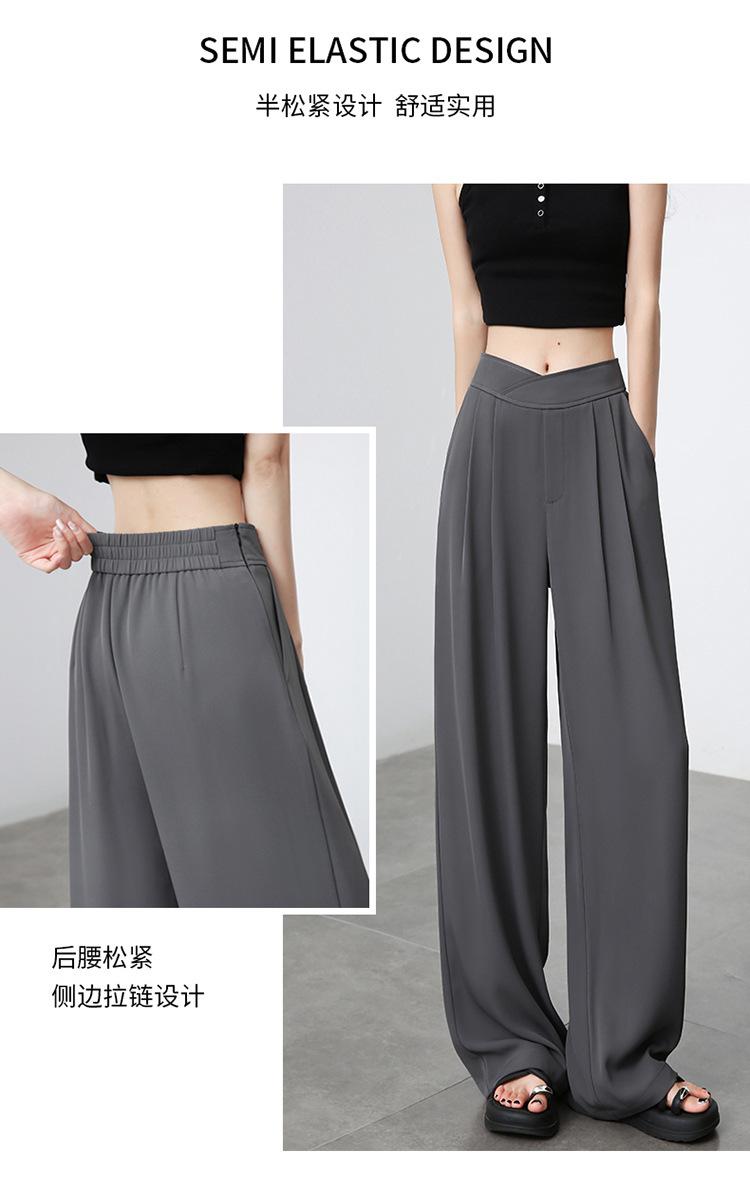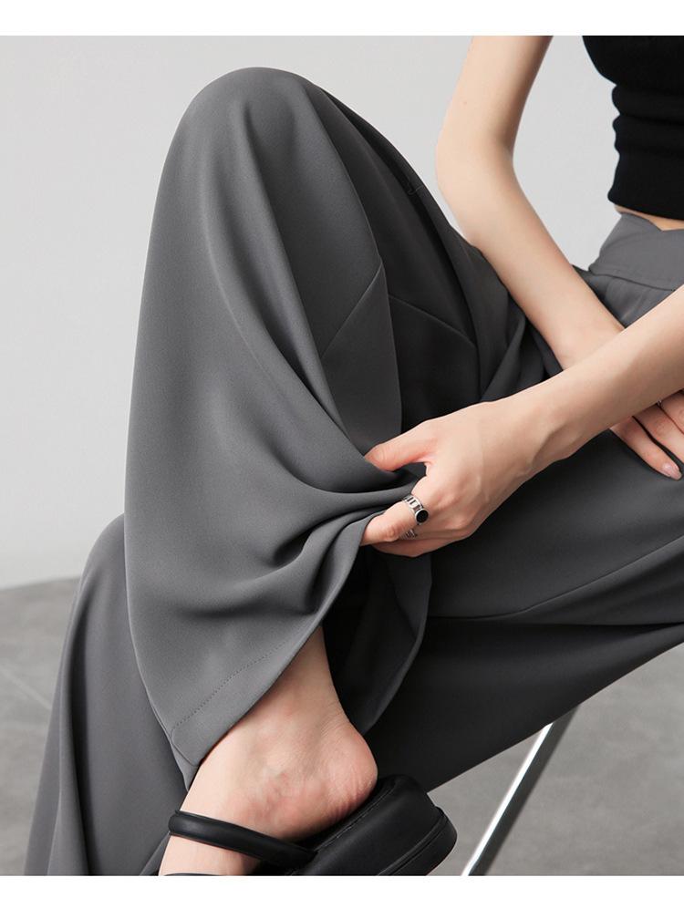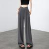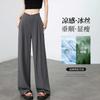 Pantalones de Pierna Ancha de Seda de Hielo para Mujer 2025 Nuevo Verano Delgados de Cintura Alta Drapeados Rectos Estrechos Gris Pantalones de Traje A5027