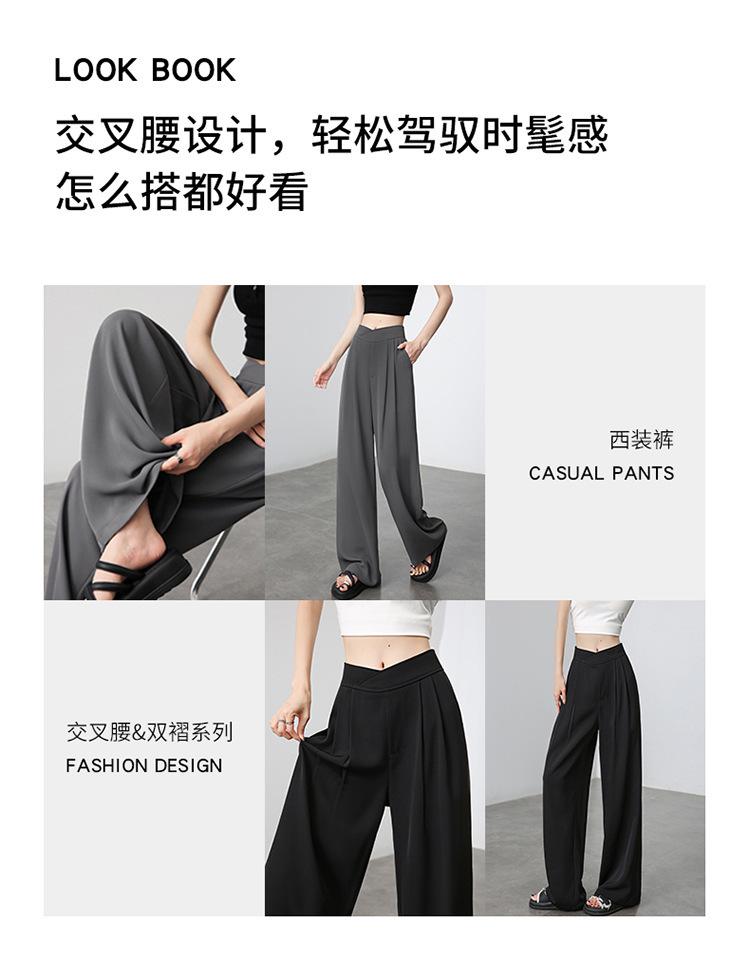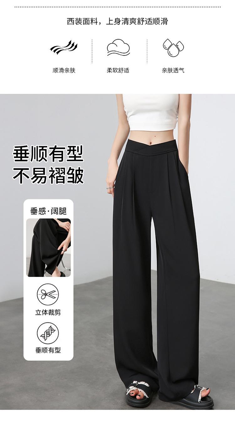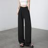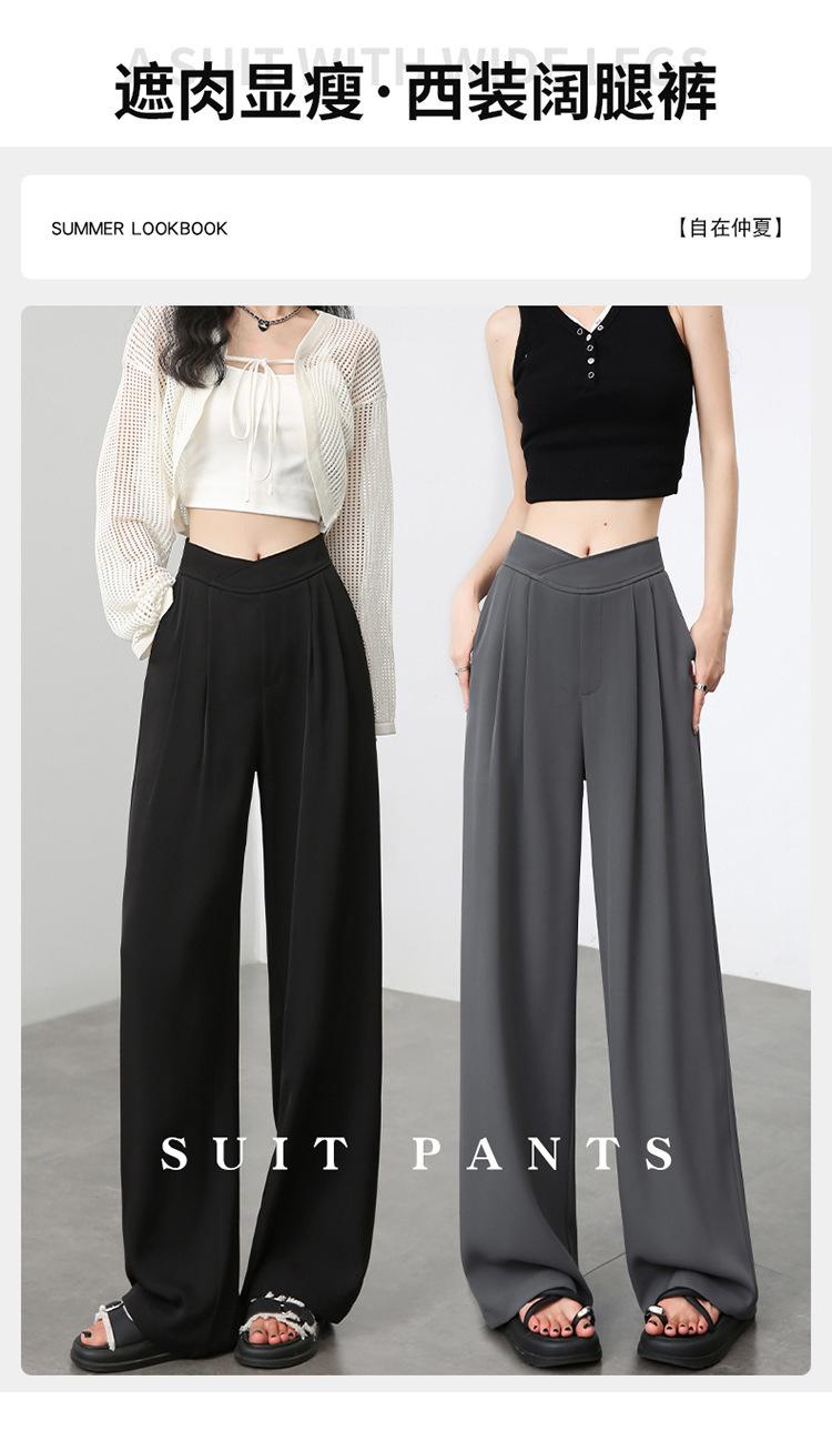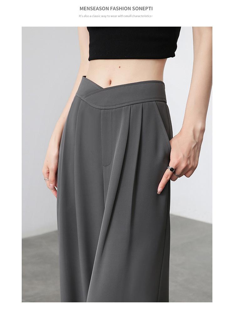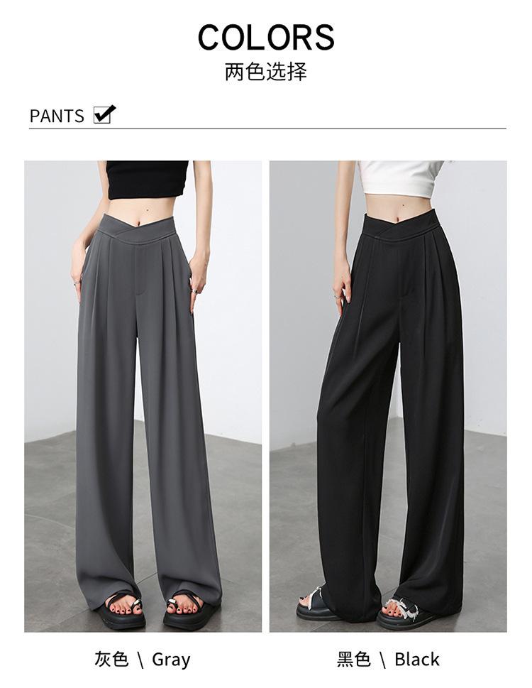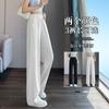 Pantalones de Pierna Ancha de Seda de Hielo para Mujer 2025 Nuevo Verano Delgados de Cintura Alta Drapeados Rectos Estrechos Gris Pantalones de Traje A5027