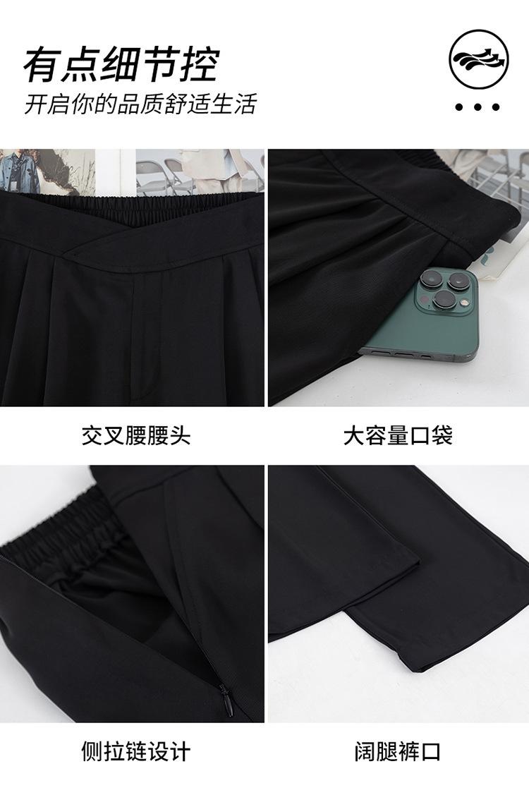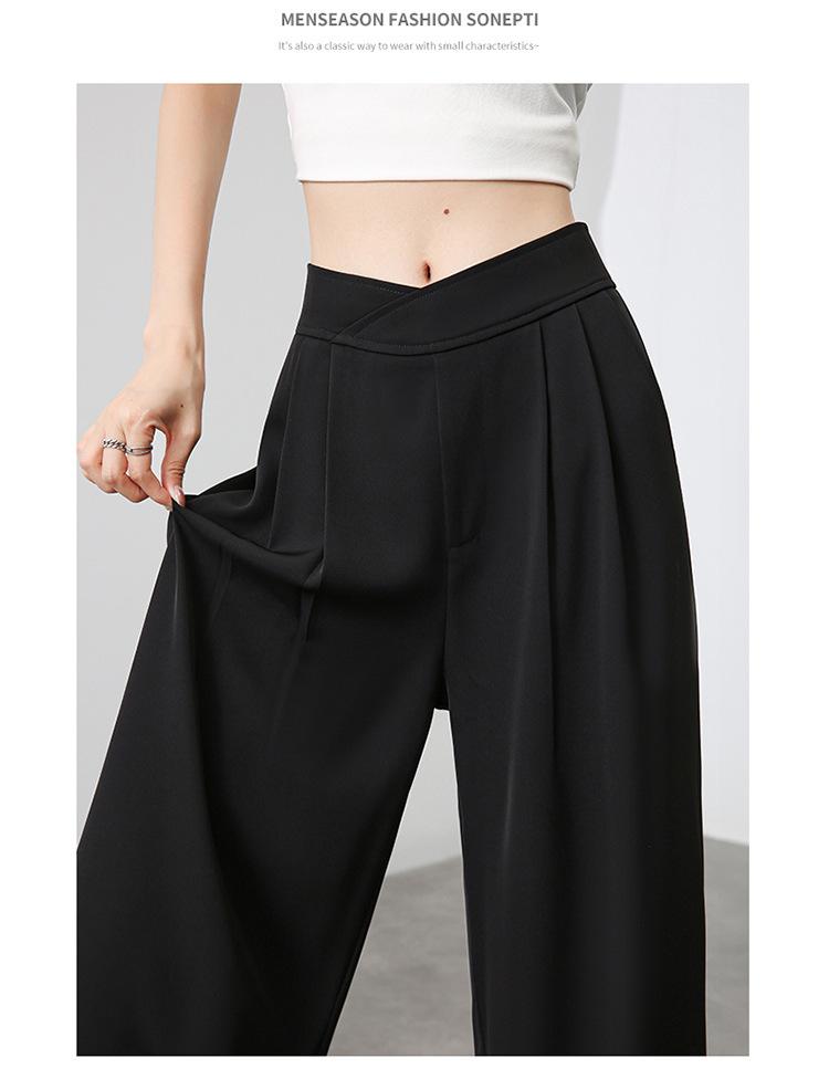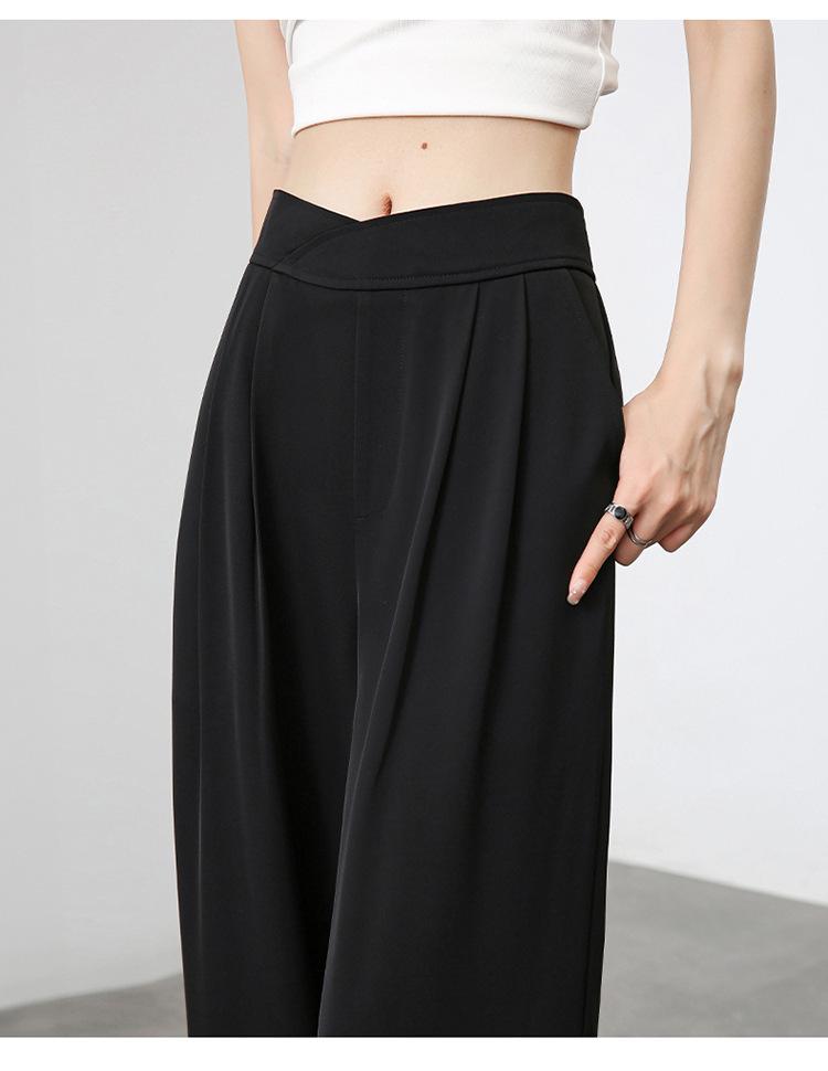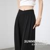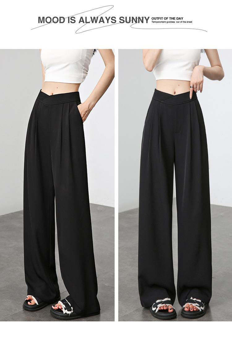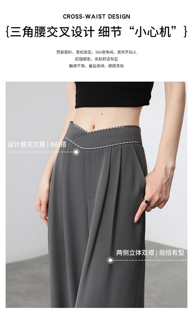 Pantalones de Pierna Ancha de Seda de Hielo para Mujer 2025 Nuevo Verano Delgados de Cintura Alta Drapeados Rectos Estrechos Gris Pantalones de Traje A5027
