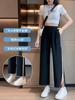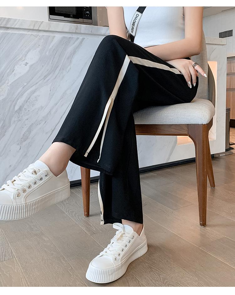 Black side-slit nine-point pants with white edges [elegant and drapey - no snagging, no static electricity, no clinging]