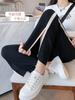 Black side-slit cropped pants with white edges [summer petites - chiffon anti-mosquito, sunscreen, air-conditioned slippery pants]