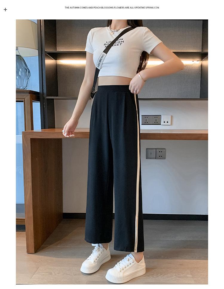 Black side-slit nine-point pants with white edges [elegant and drapey - no snagging, no static electricity, no...