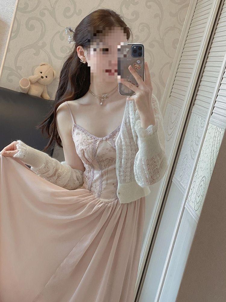 Traje para Mujer 2025 Nuevo Estilo de Verano Estilo Suave Vestido con Tirantes Adelgazante de Cintura Falda Larga Cárdigan Protección Solar Conjunto de Dos Piezas