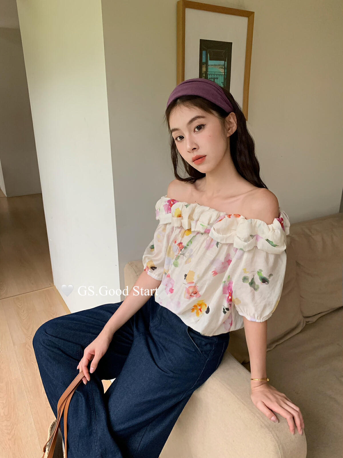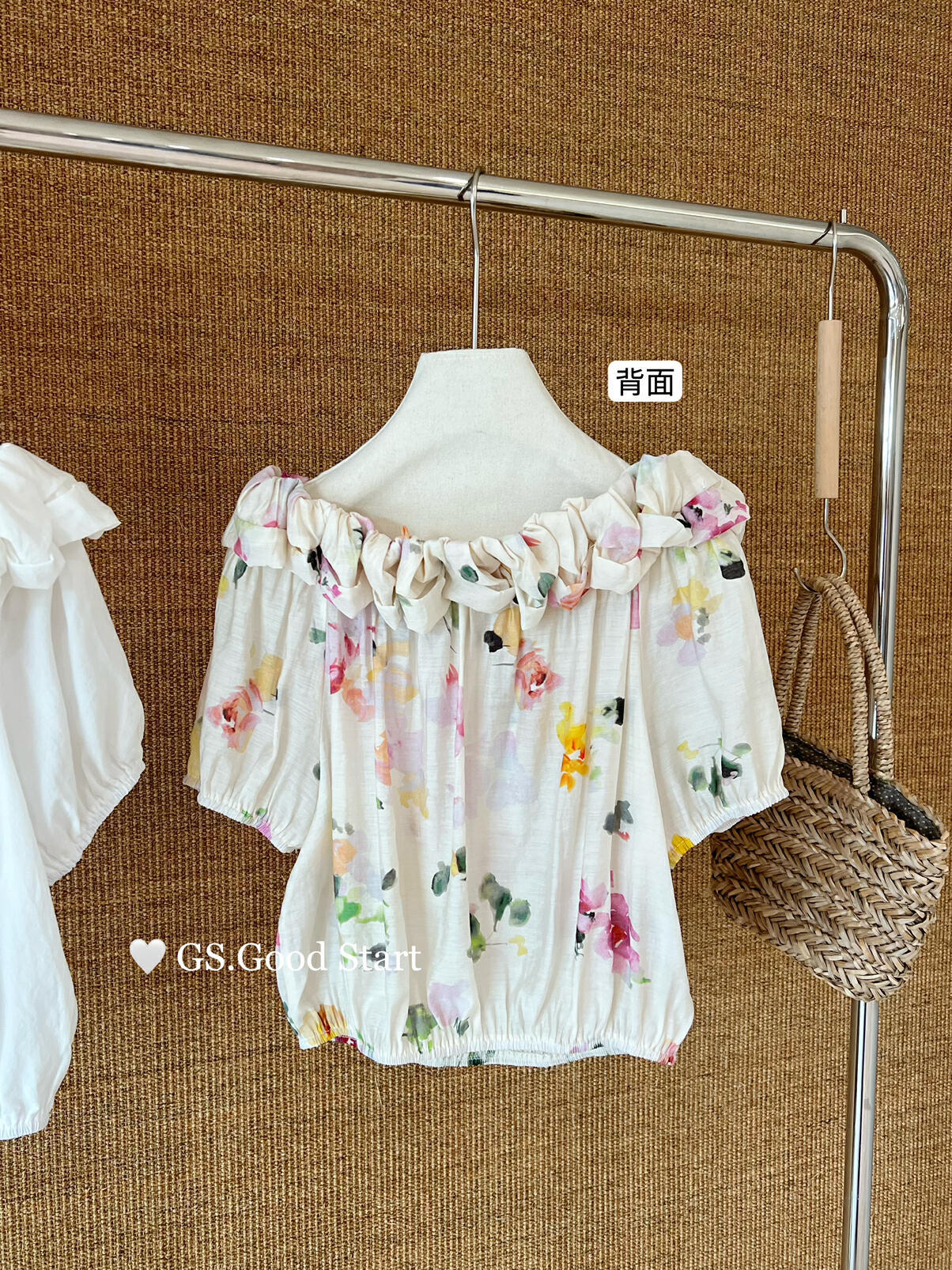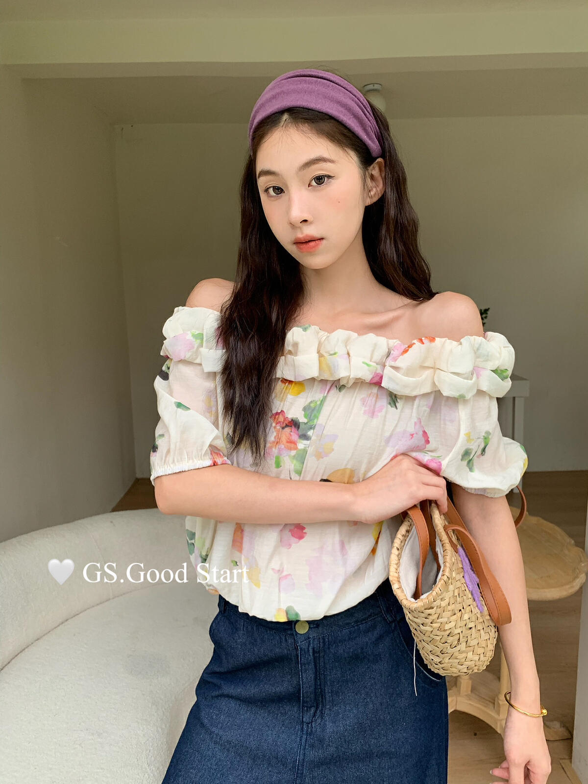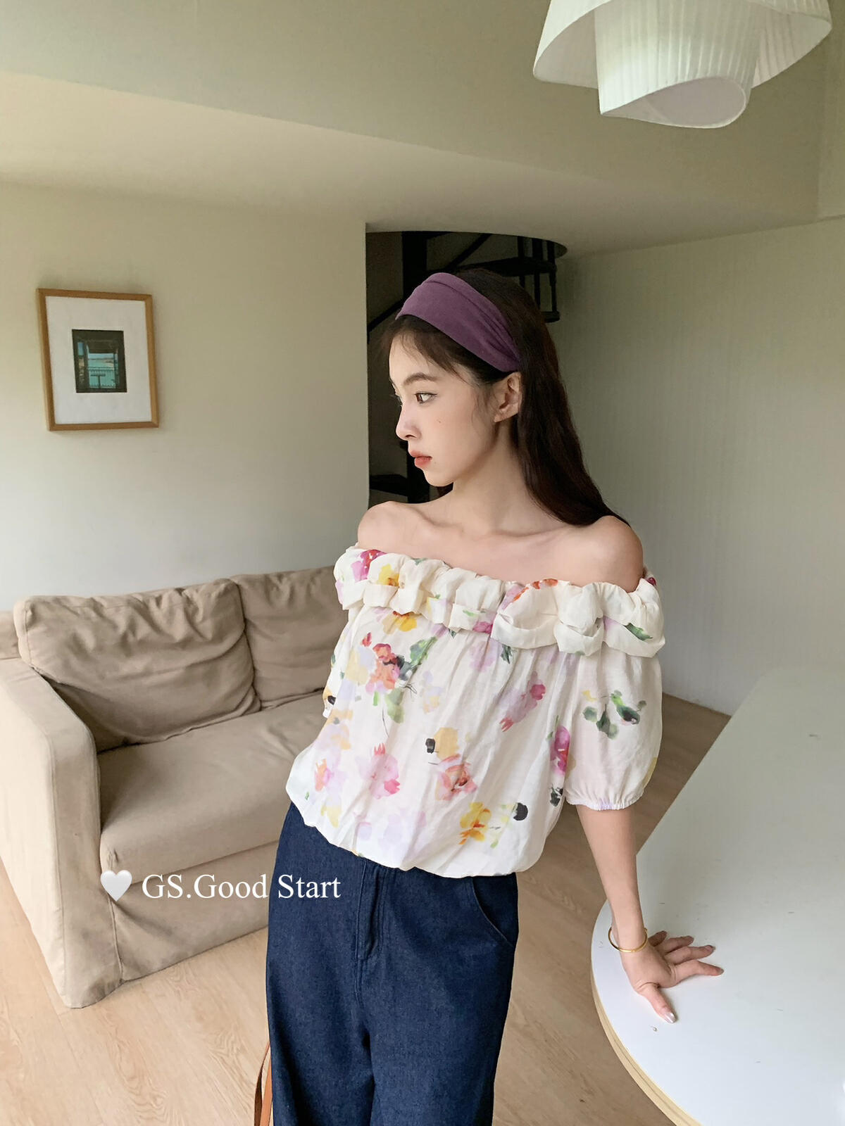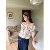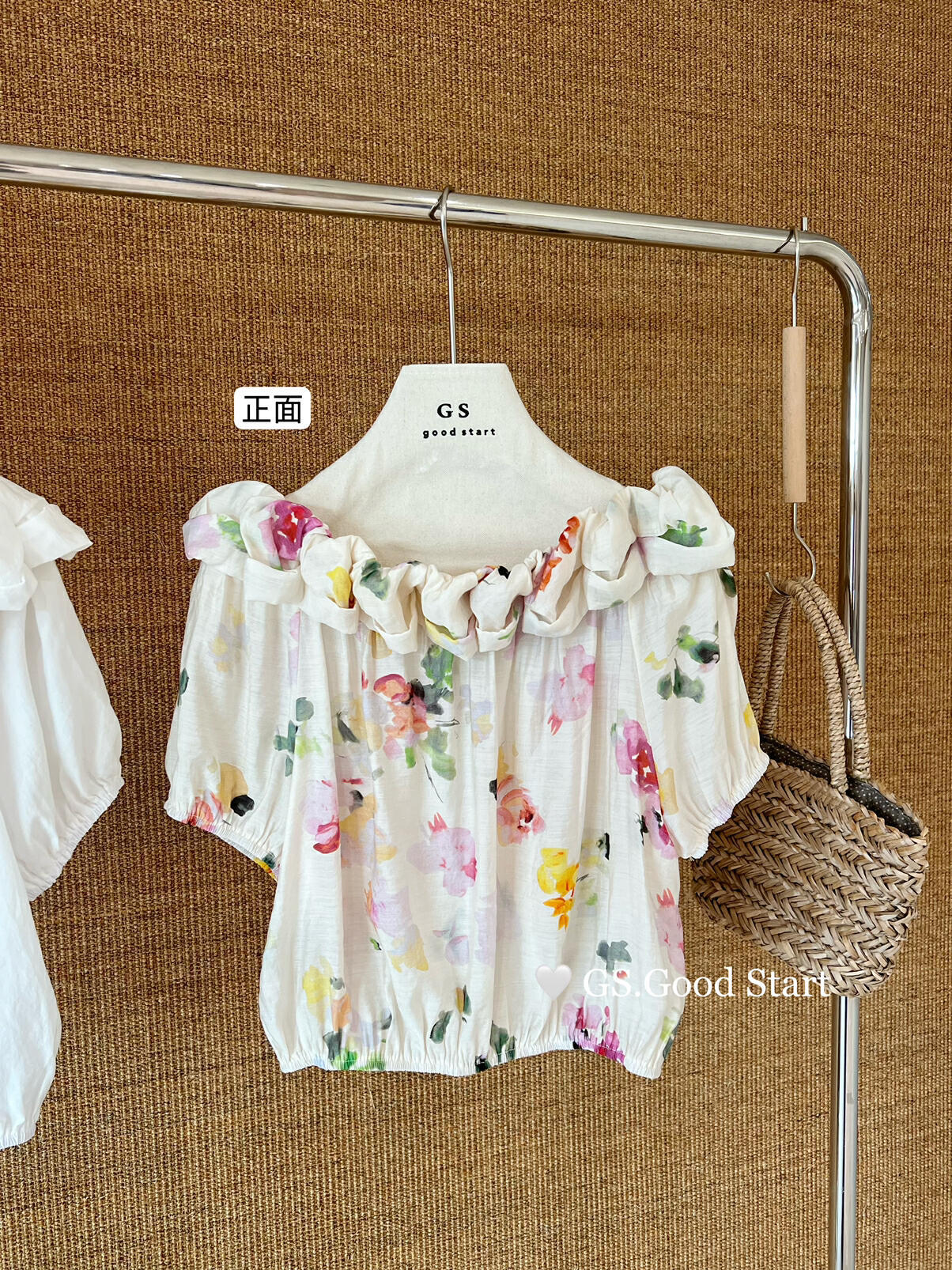 Liquidación, Sin Devoluciones ni Cambios. Verano Mujer Chic Francés Nube Hombro Descubierto Blusa Floral Top G1986V