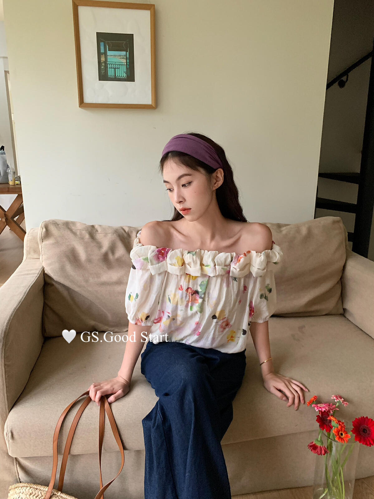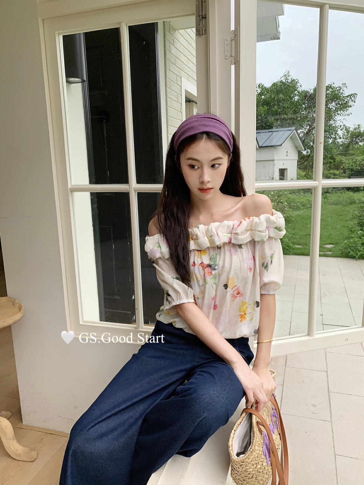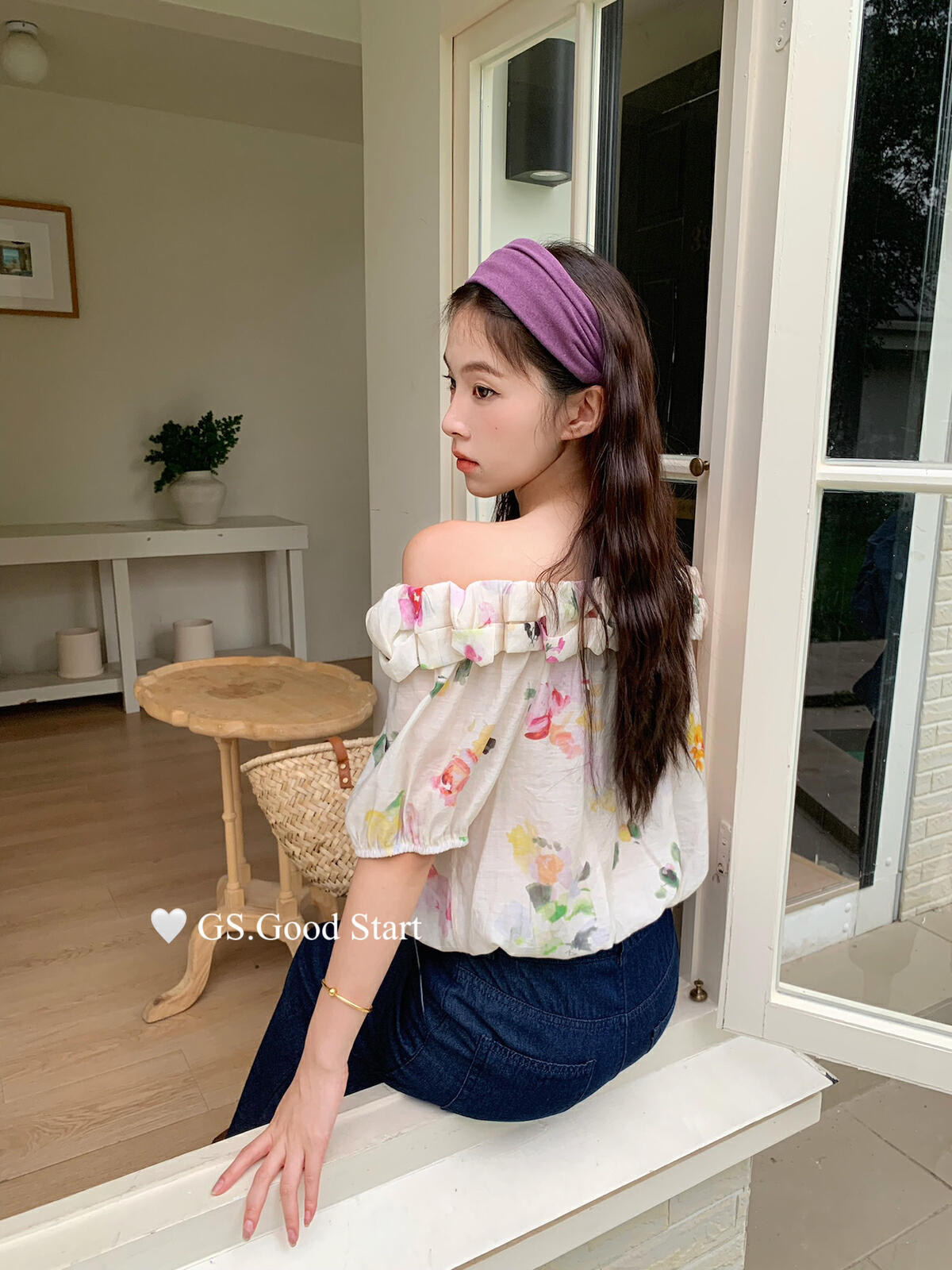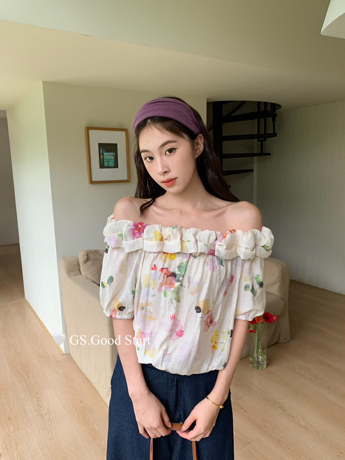 Liquidación, Sin Devoluciones ni Cambios. Verano Mujer Chic Francés Nube Hombro Descubierto Blusa Floral Top G1986V