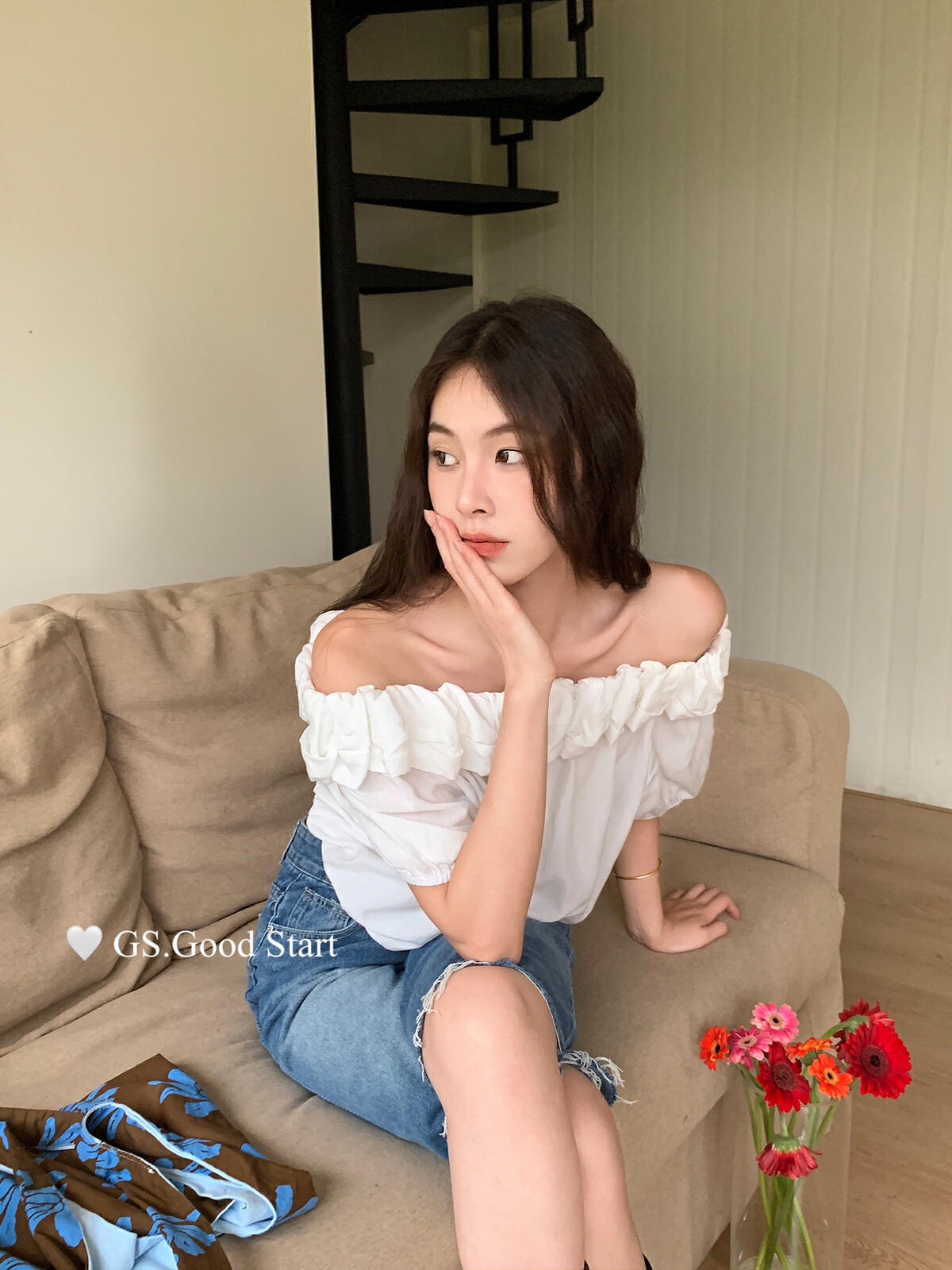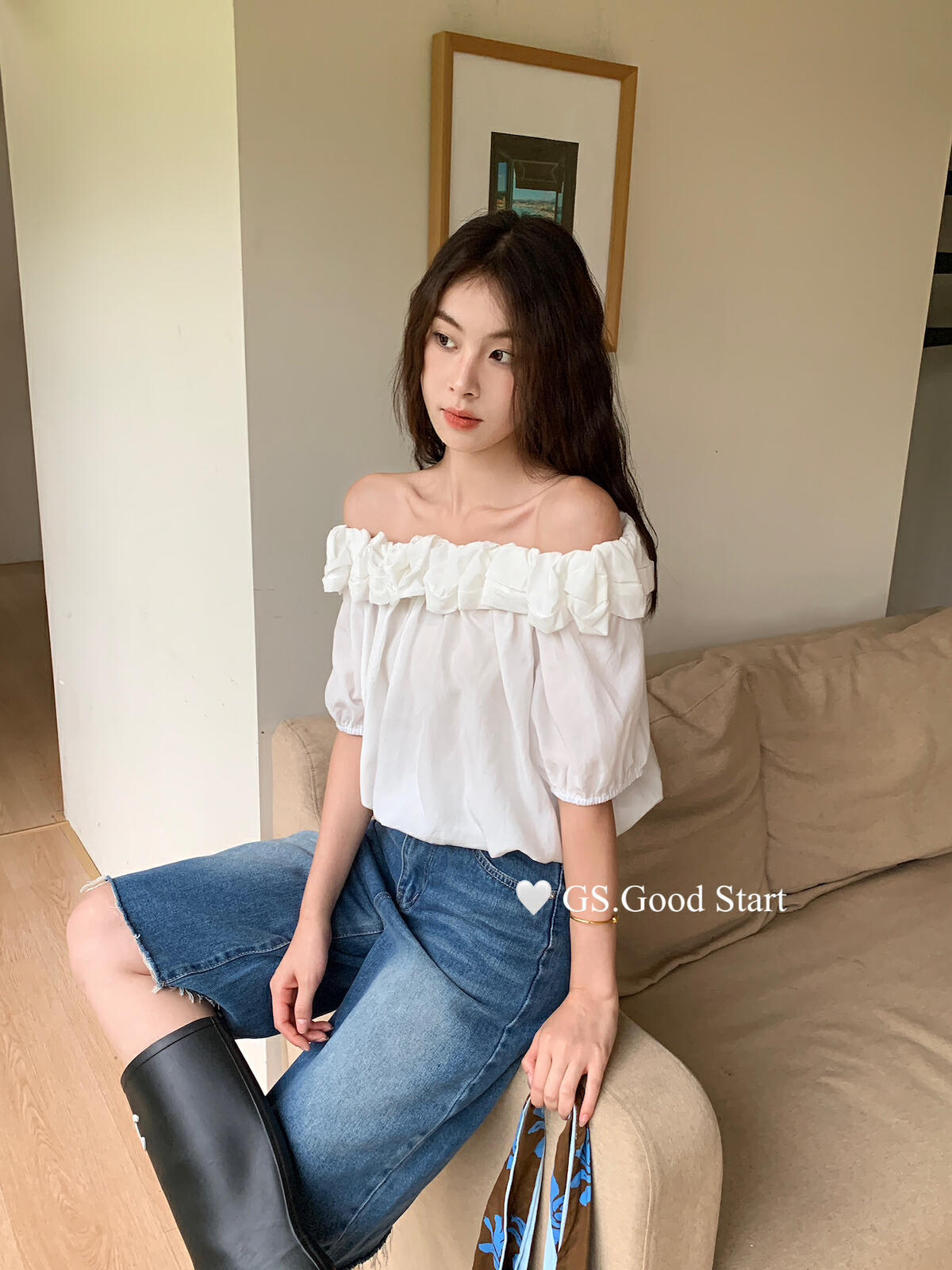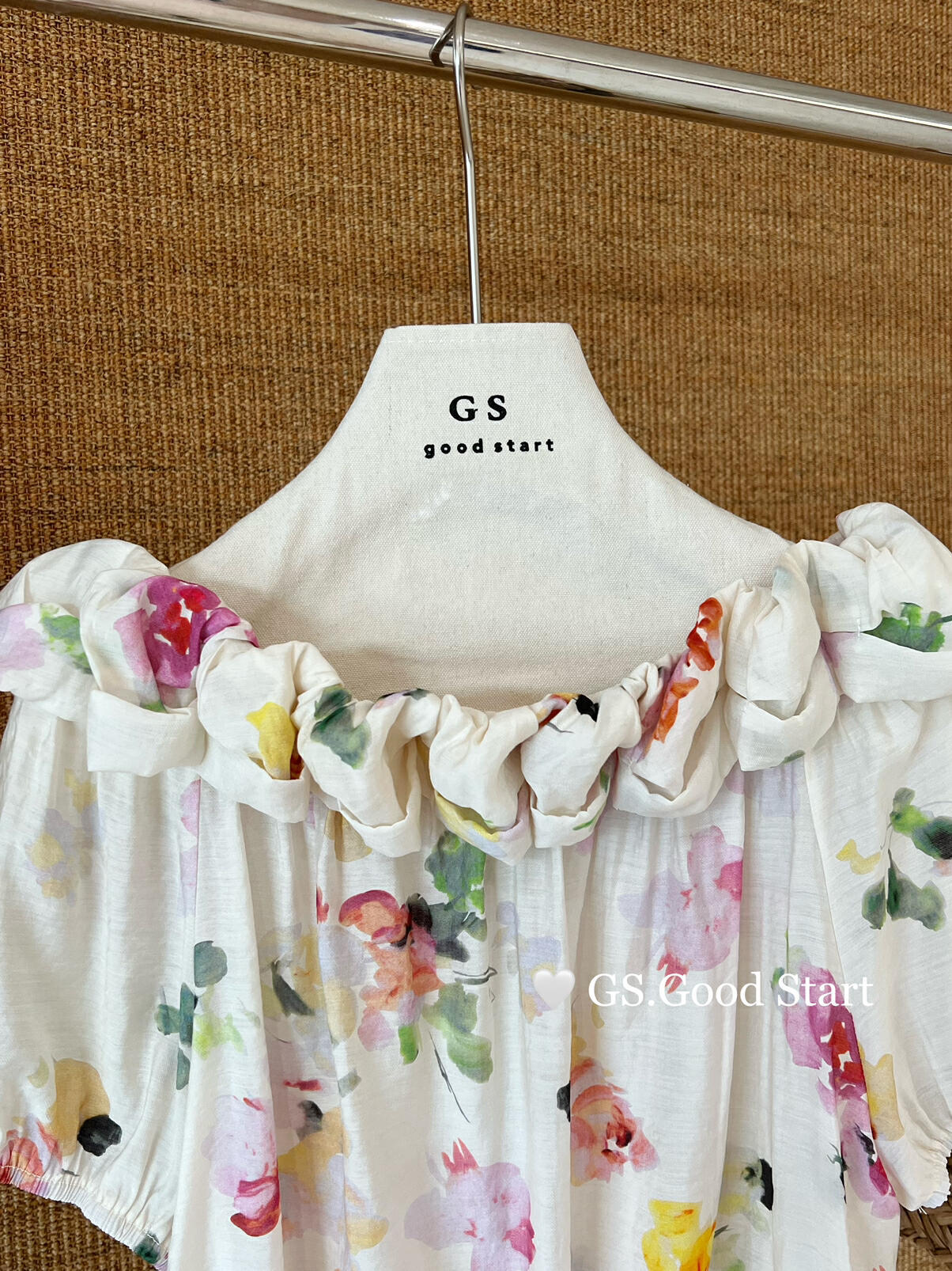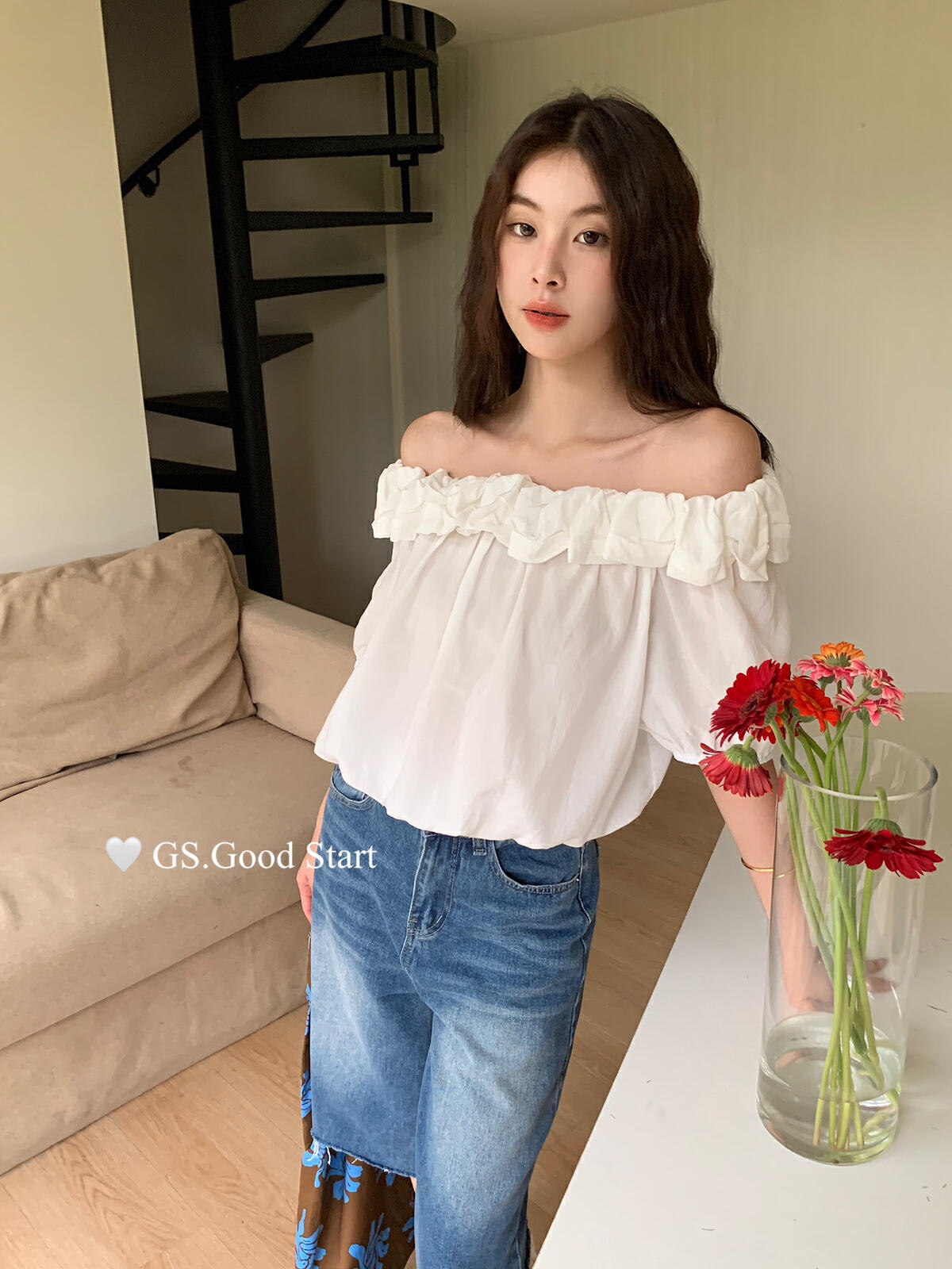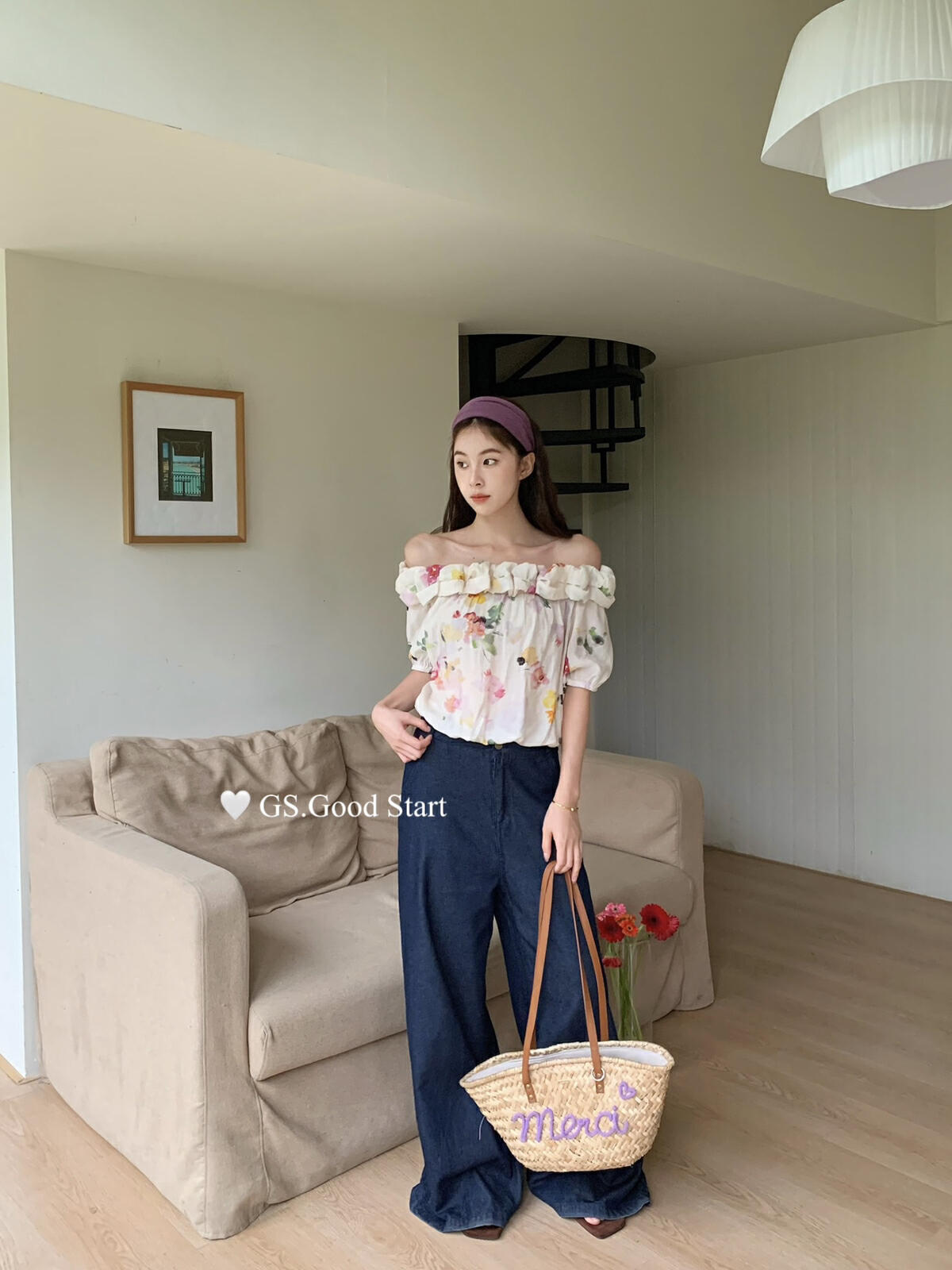 Liquidación, Sin Devoluciones ni Cambios. Verano Mujer Chic Francés Nube Hombro Descubierto Blusa Floral Top G1986V