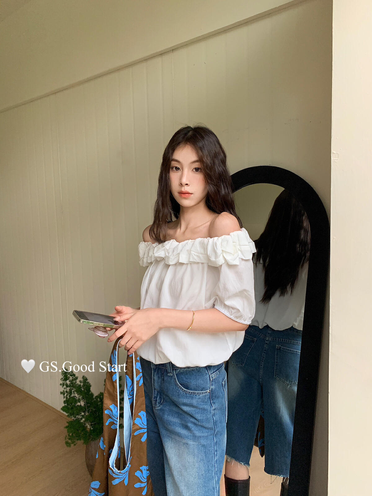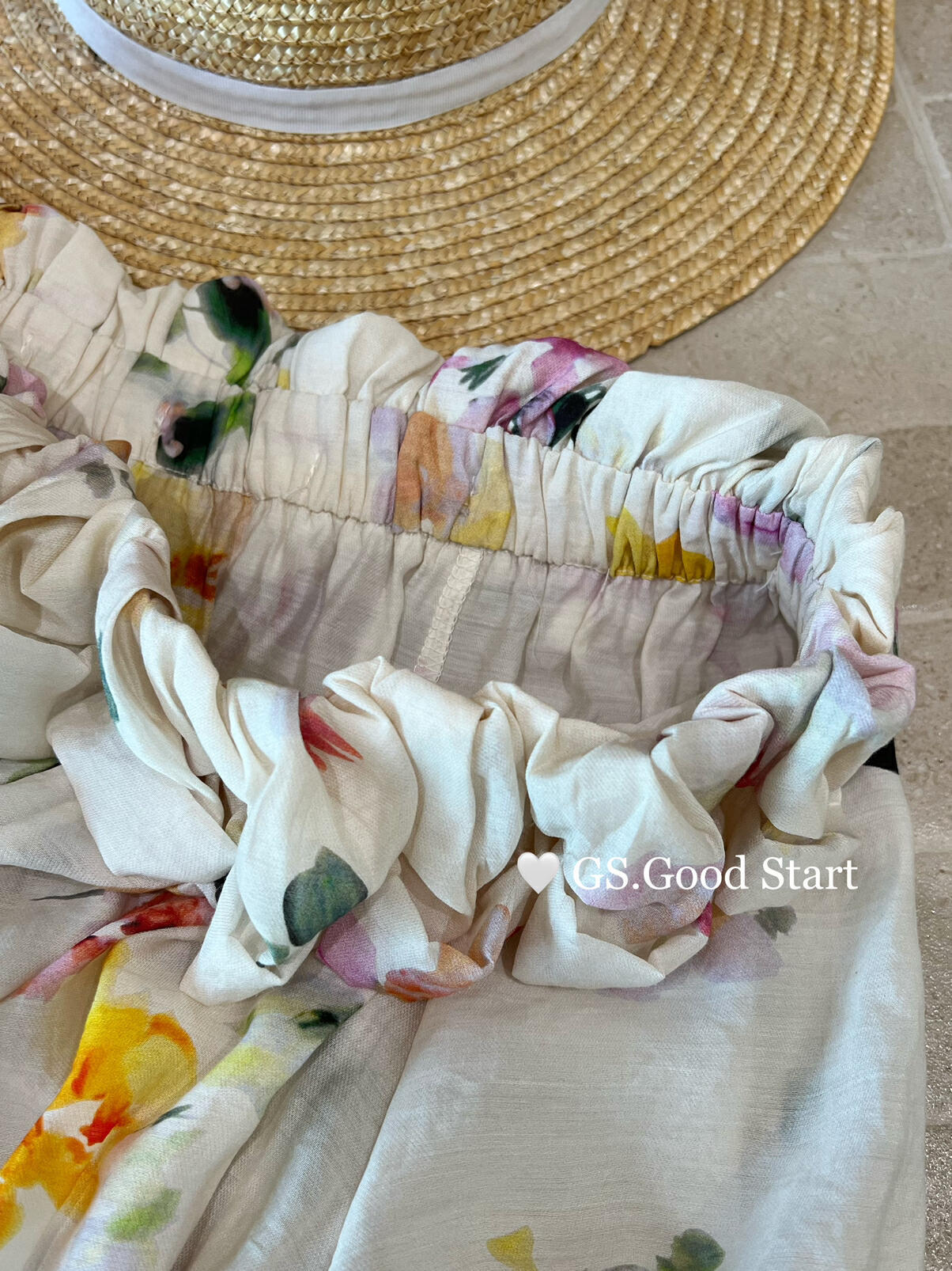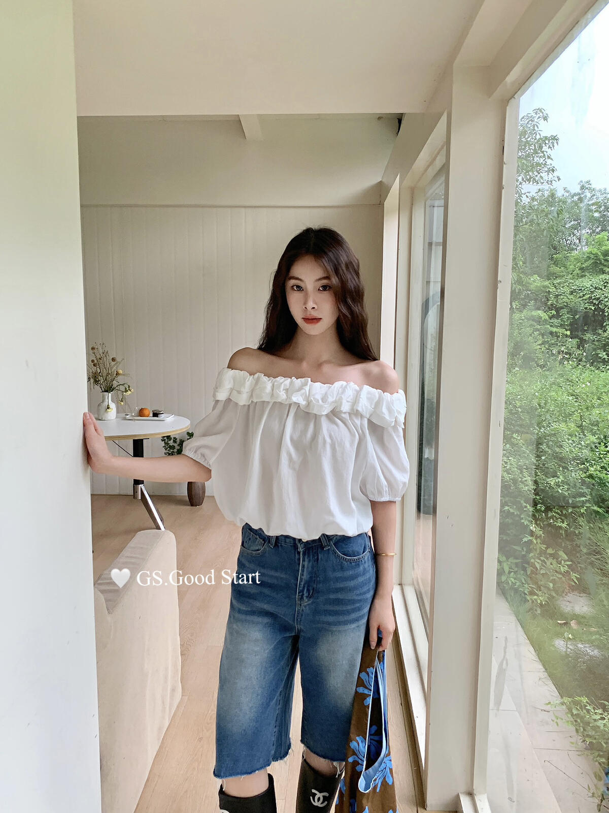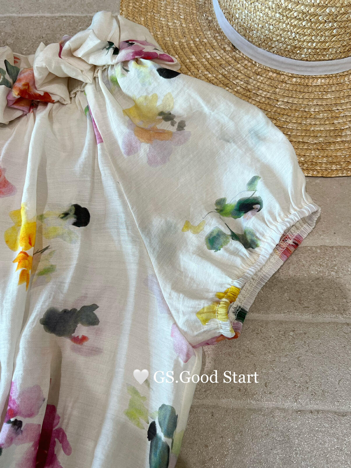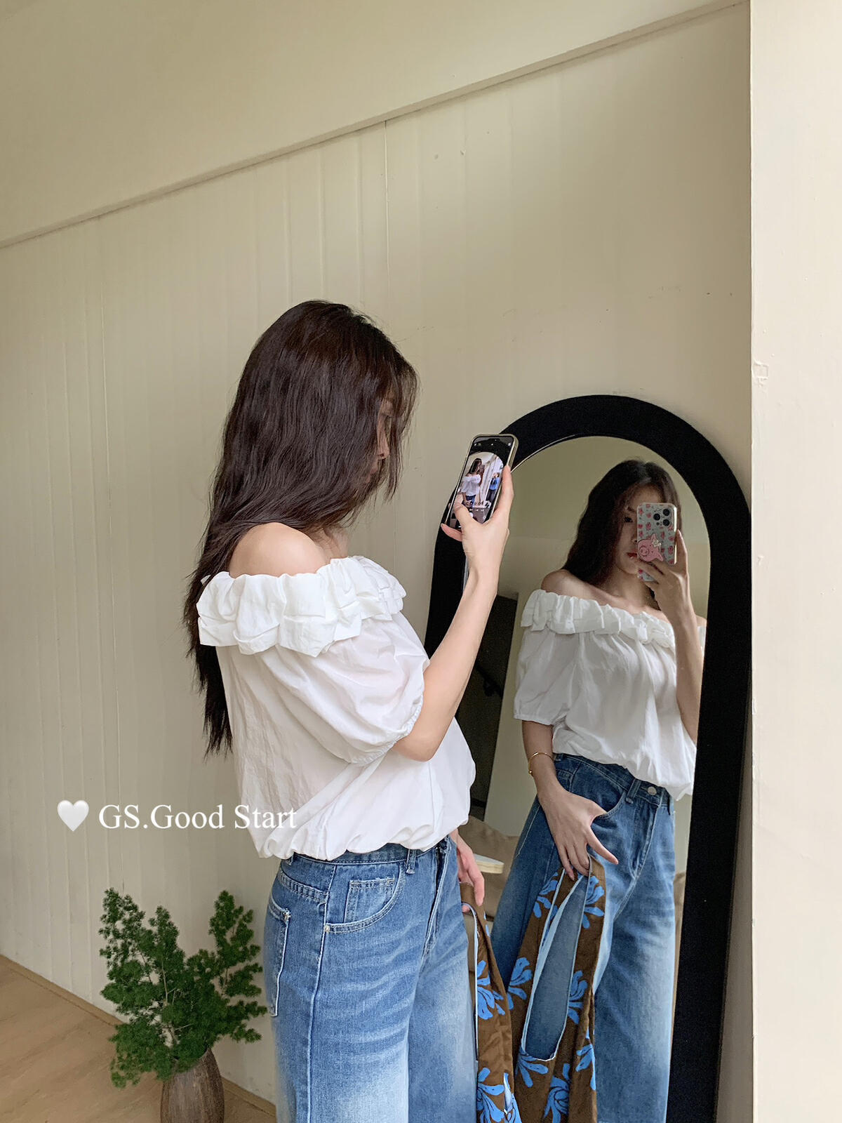 Liquidación, Sin Devoluciones ni Cambios. Verano Mujer Chic Francés Nube Hombro Descubierto Blusa Floral Top G1986V