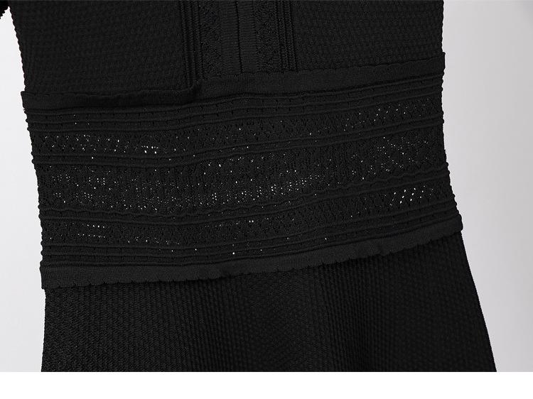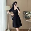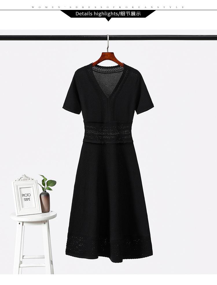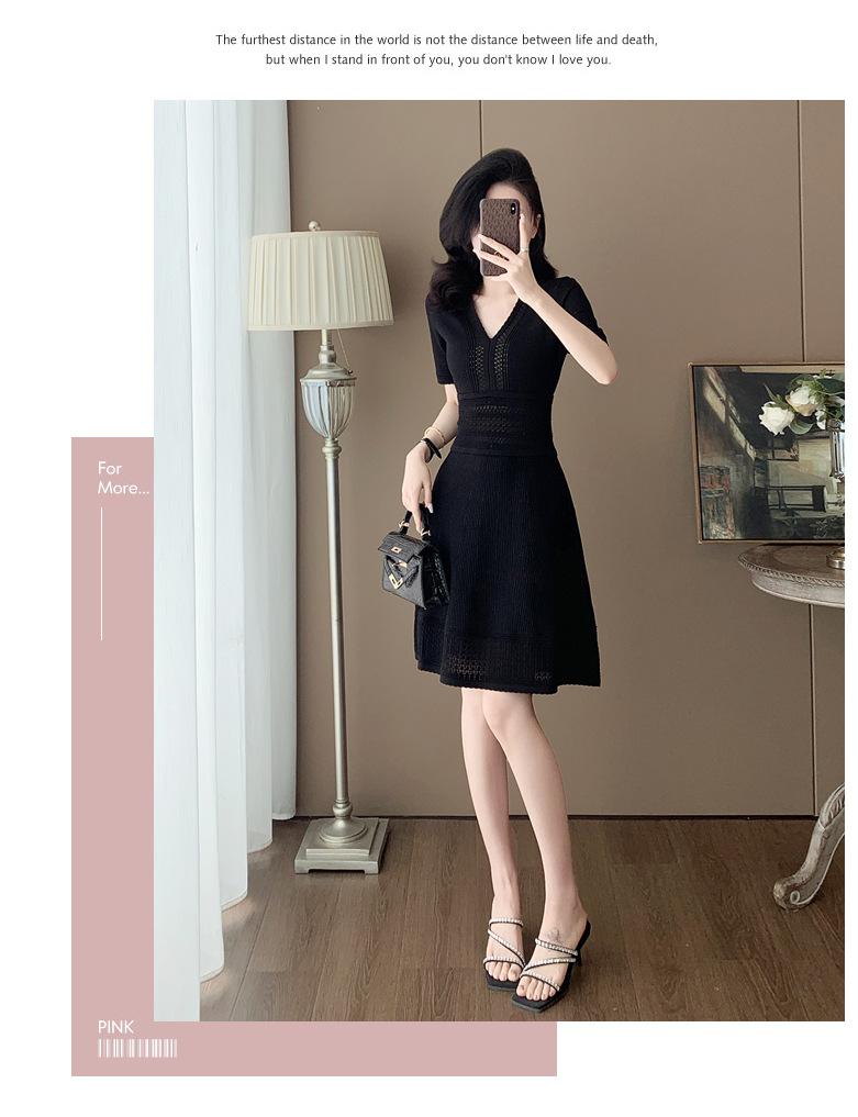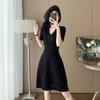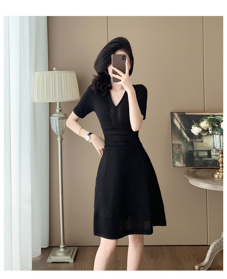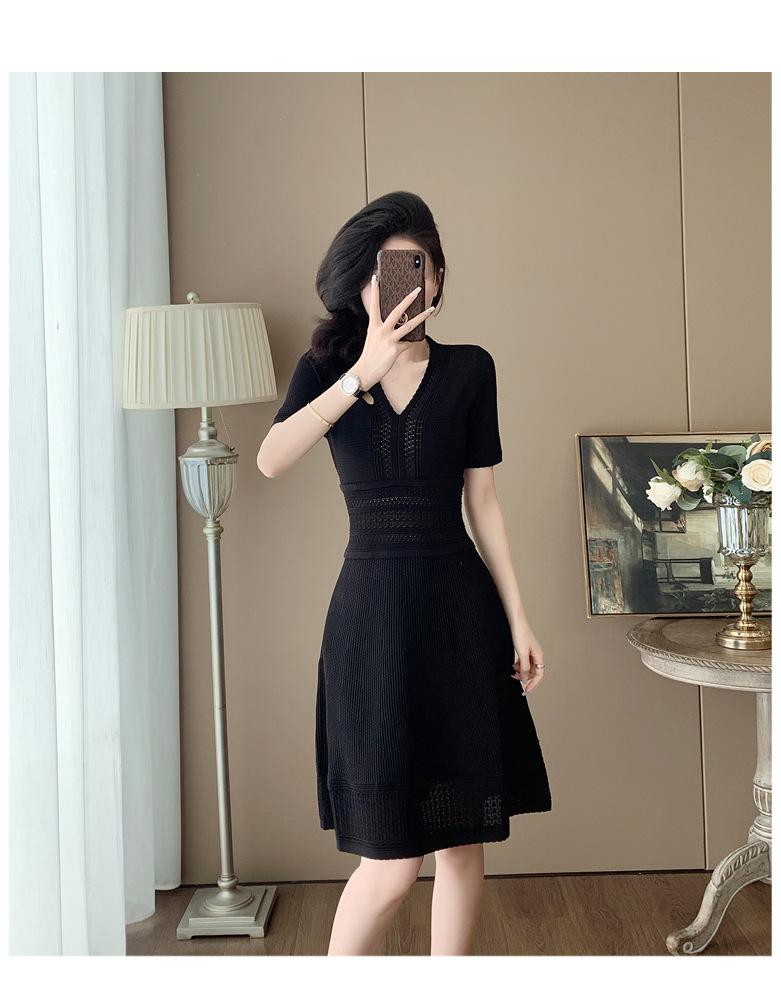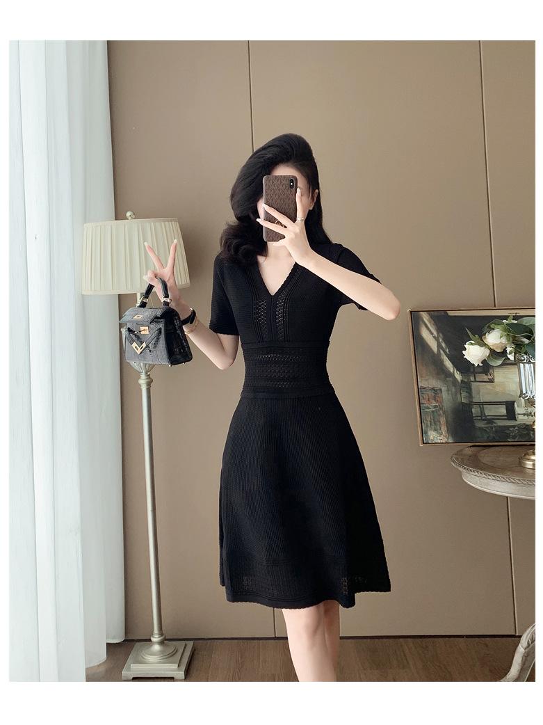 Vestido Calado Negro Estilo Chanel para Dama Estilo Francés Vestido de Punto de Seda Helada de Verano Nuevo de Manga Corta y Cintura Alta para Mujer