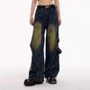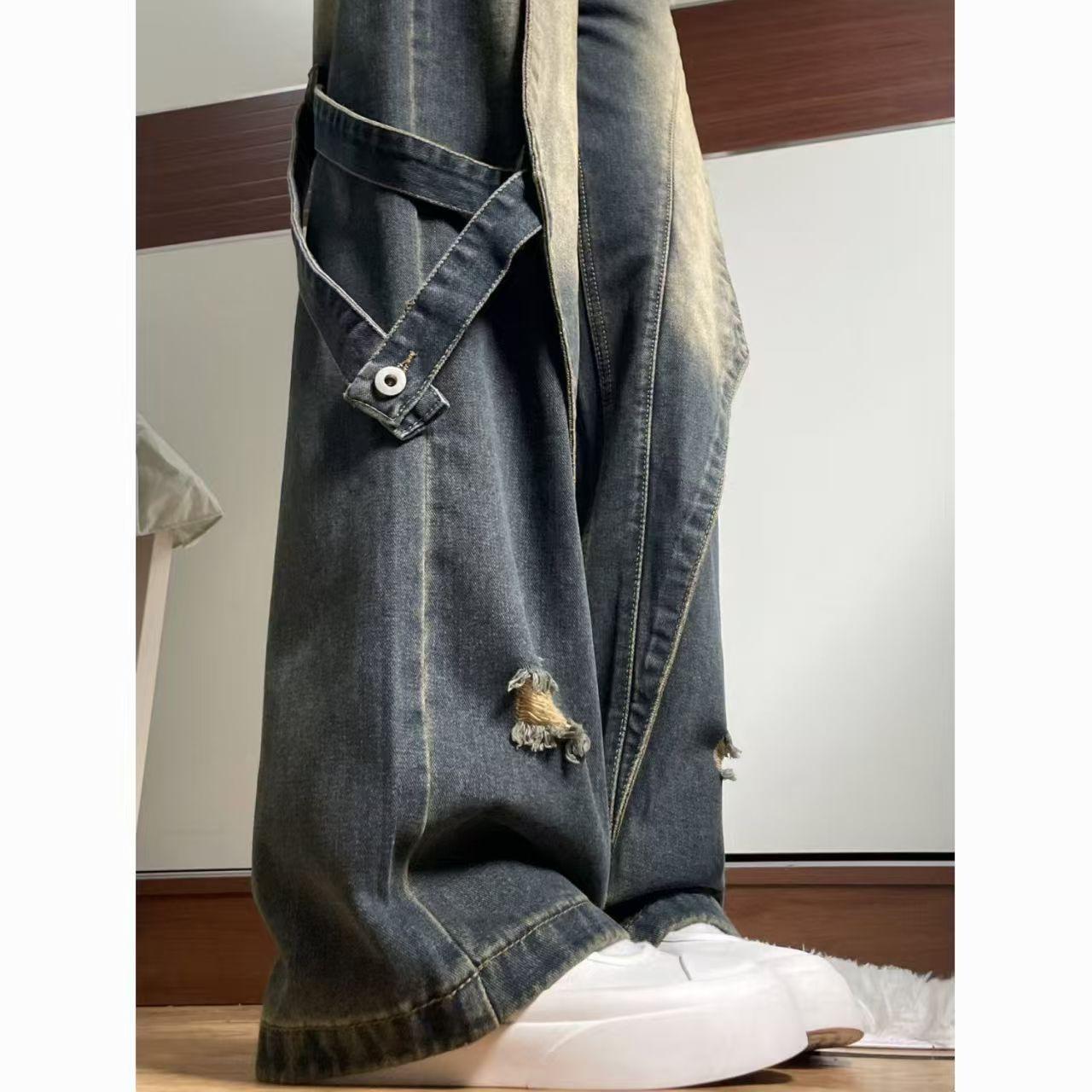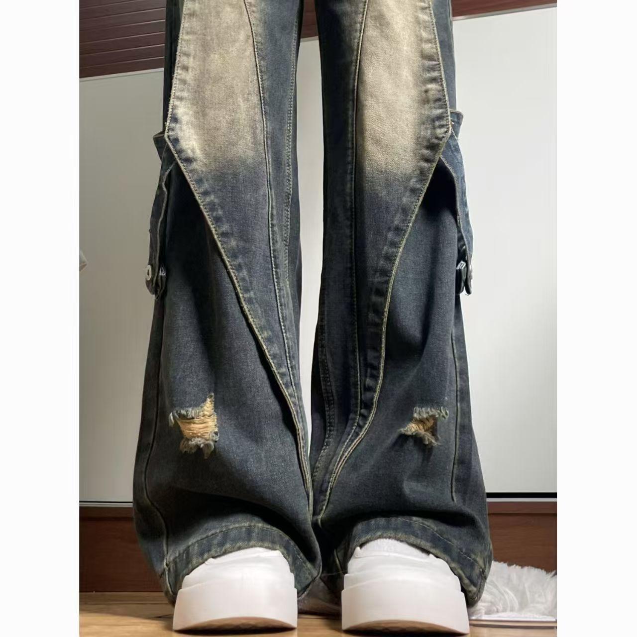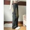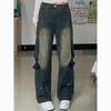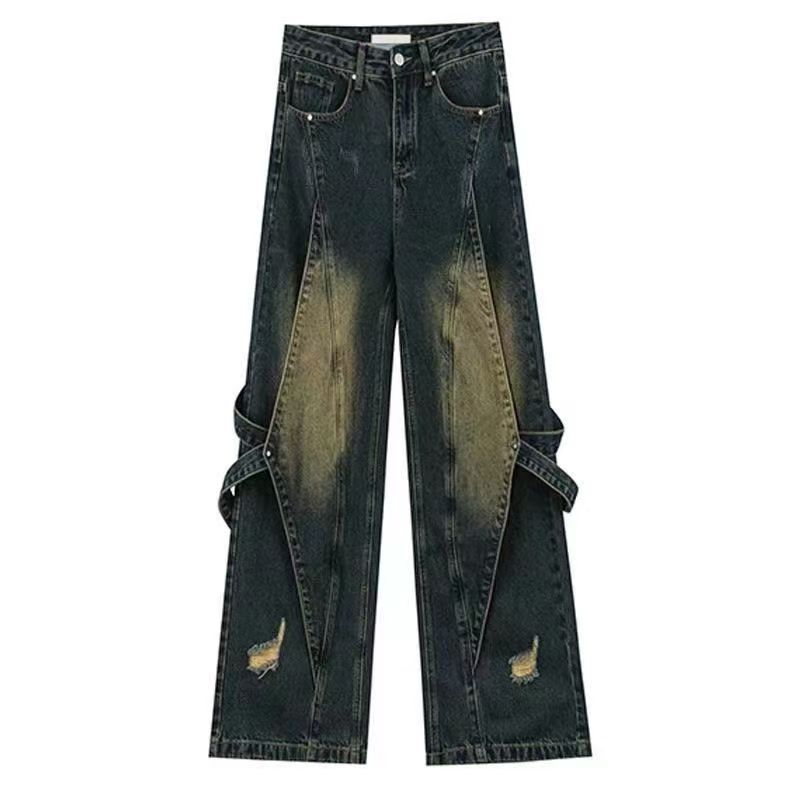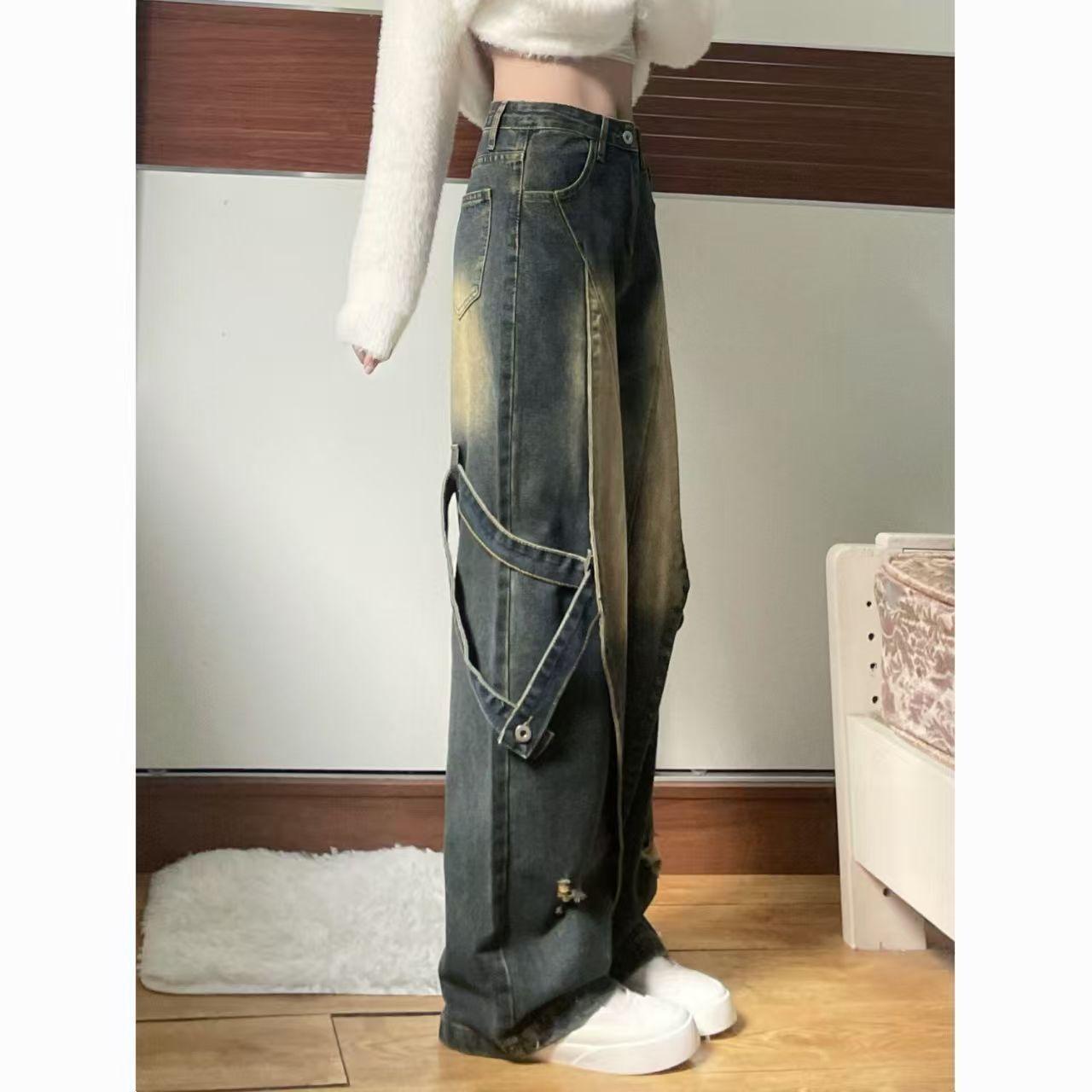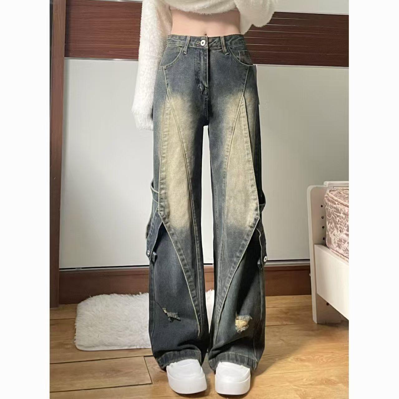 American High Street Empalmado Lavado Otoño Retro Jeans de Cintura Alta Diseño Holgado Adelgazante Pantalones Nuevos Pantalones Rectos