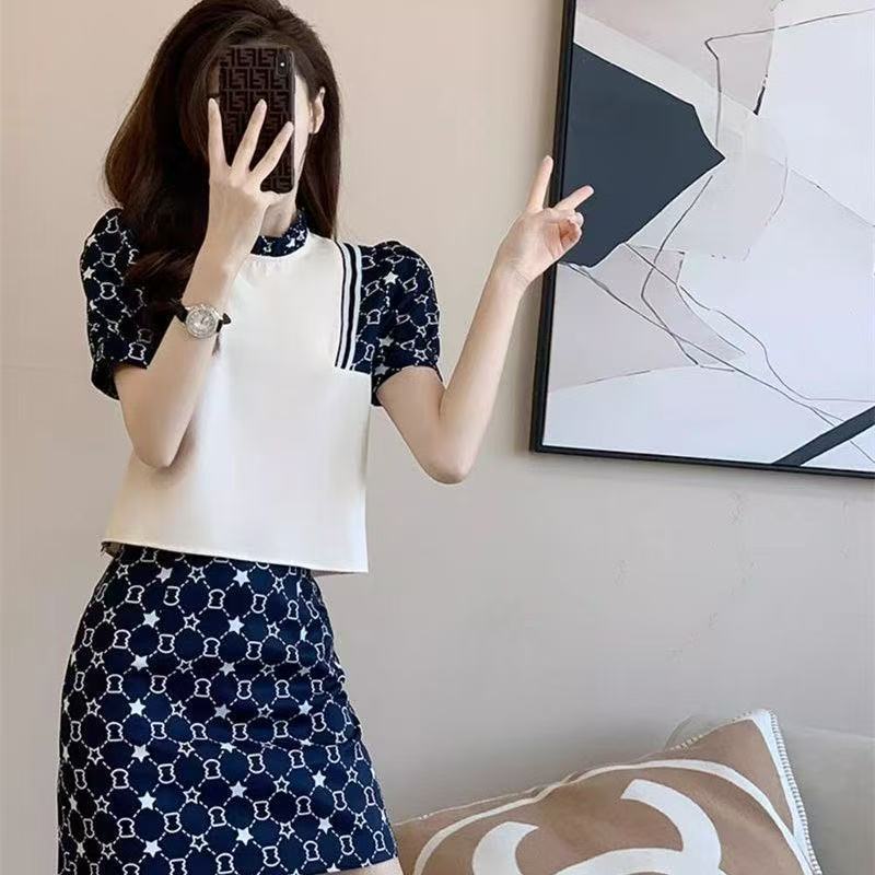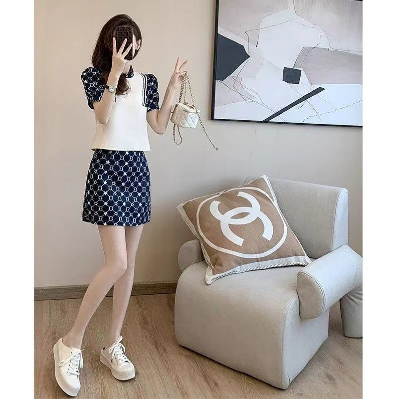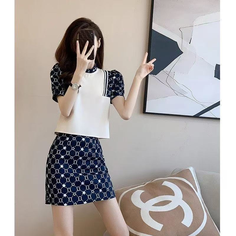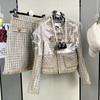 Traje de falda casual de moda estilo Chanel para mujer Verano 2025 Nuevo estilo francés Elegante Conjunto de dos piezas top que reduce la edad