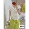 Polo de Punto de Verano Camiseta de Manga Corta para Mujer Color Puro Transpirable Seda de Hielo Moda Elegante Casual Cómodo Sensación de Alta Gama