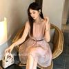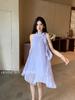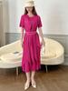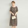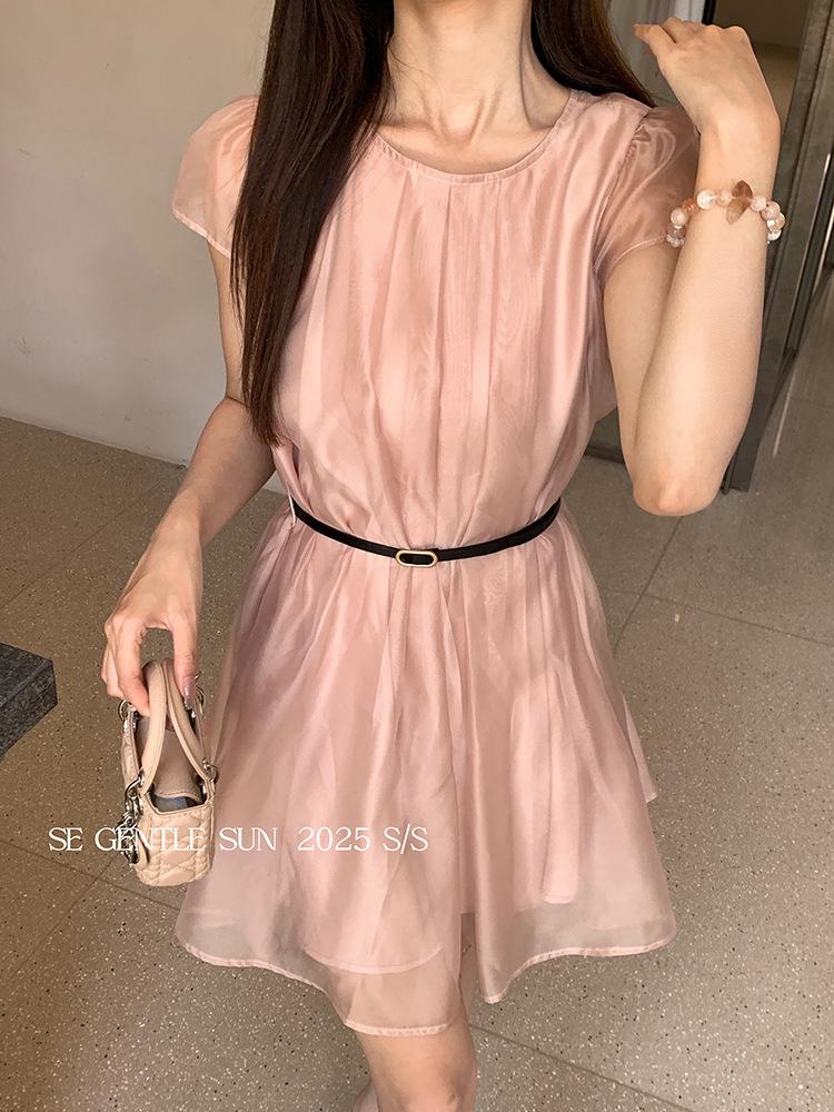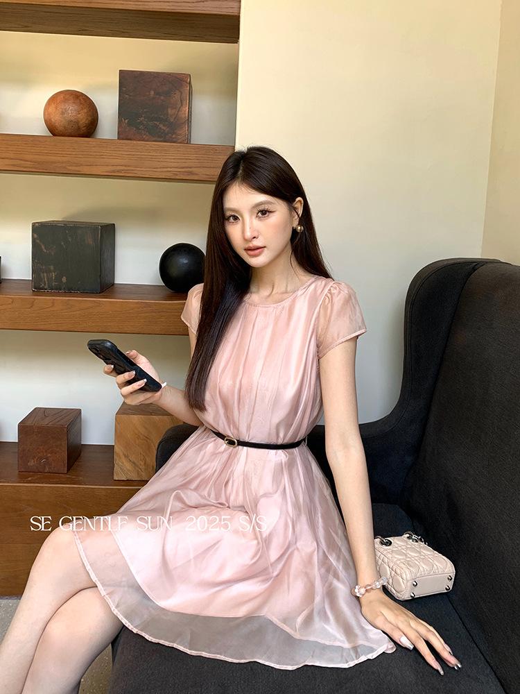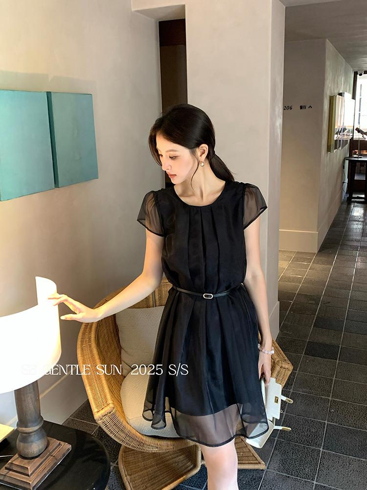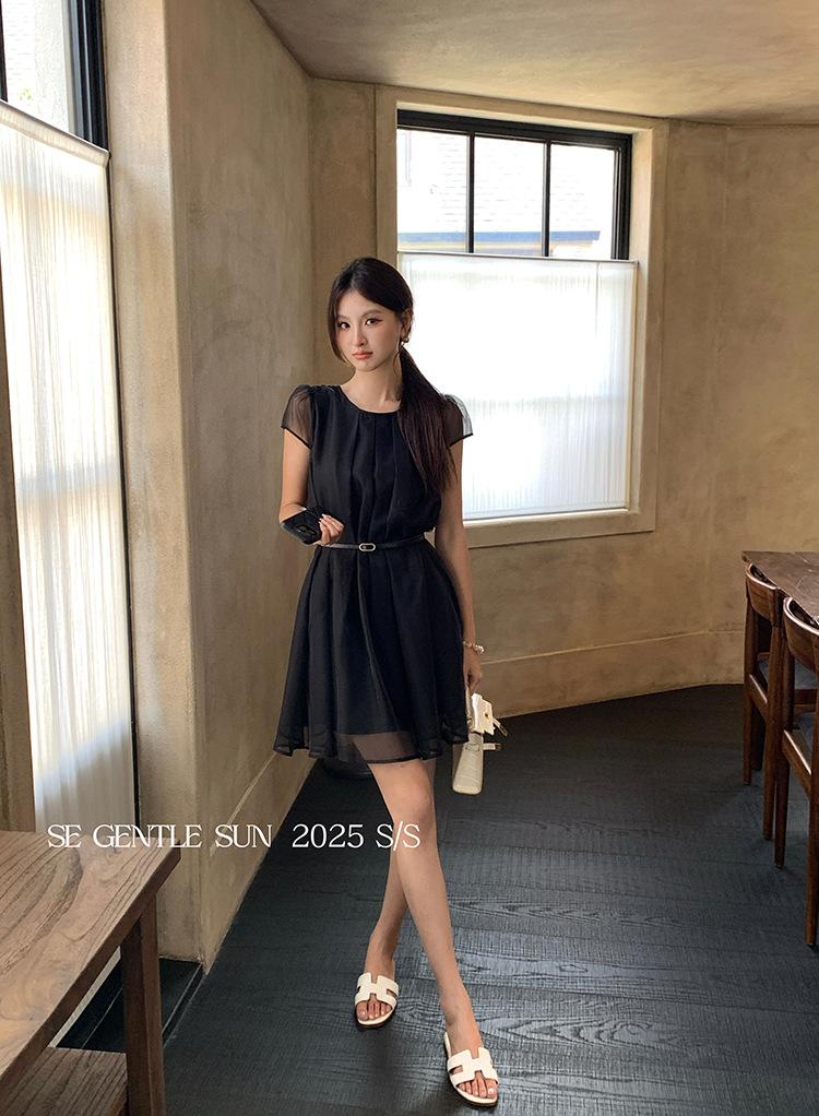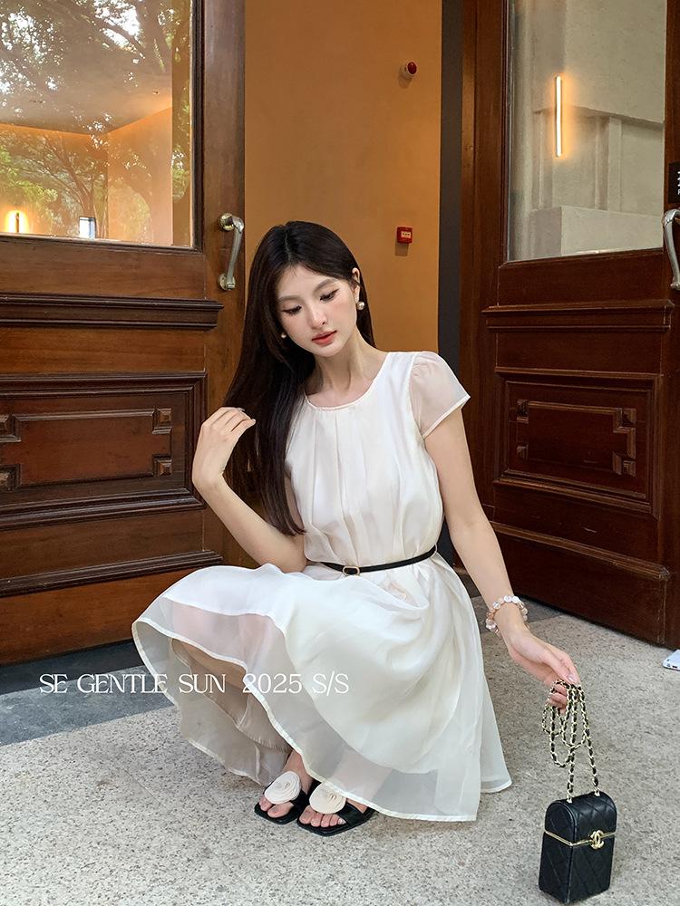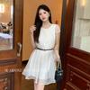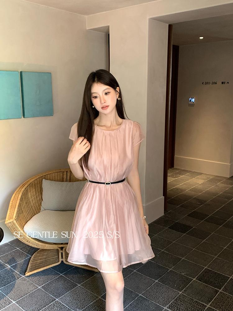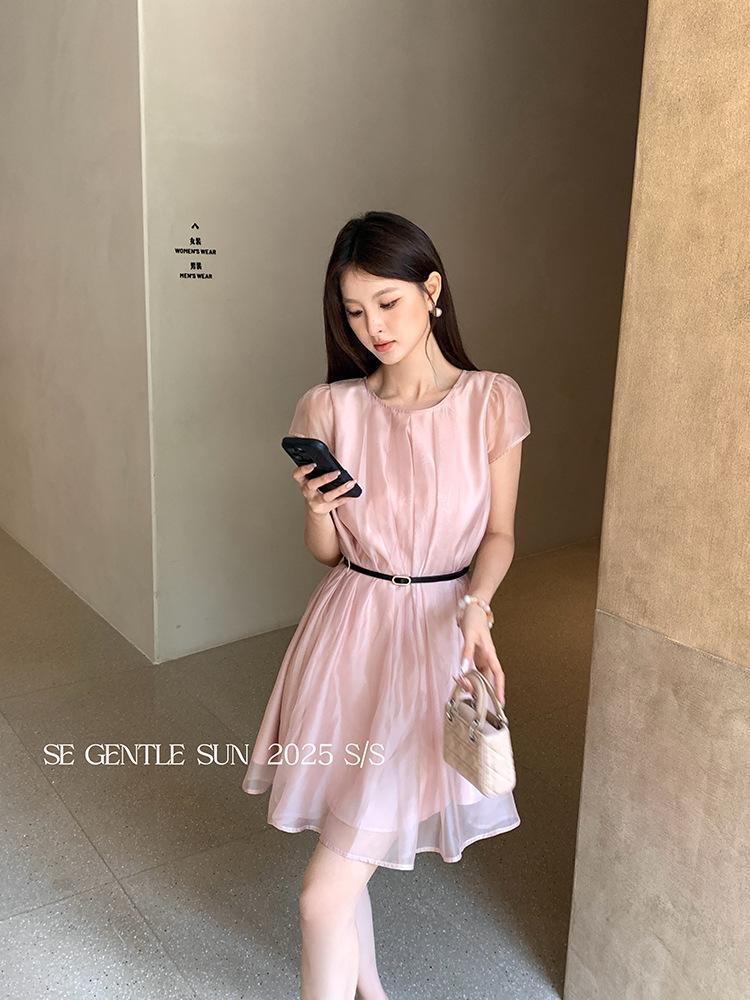 Xiuxixi 2025 Nuevo Estilo de Verano Vestido Elegante de Cuello Redondo y Manga Corta Aspecto Adelgazante Falda Corta de Alta Gama para Mujer 88399