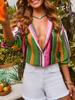 Camisa de rayas colorida de moda europea y americana transfronteriza Amazon 2025 primavera y verano, camisa holgada estilo Hong Kong, top de manga larga