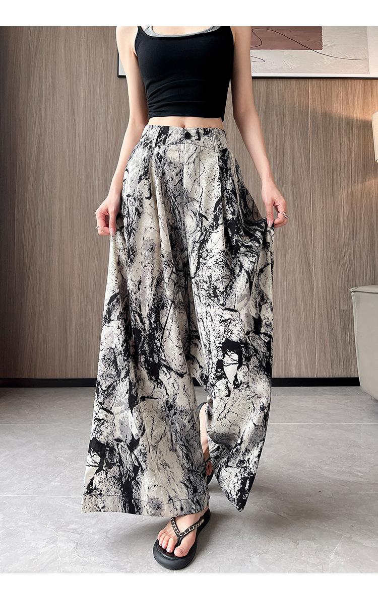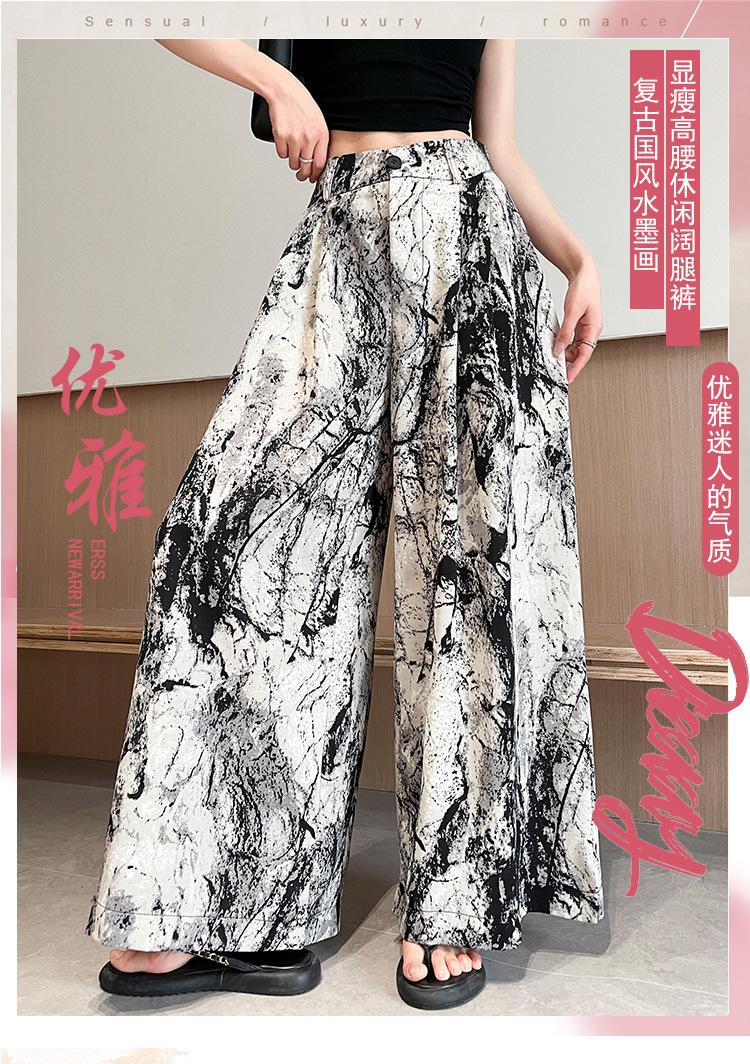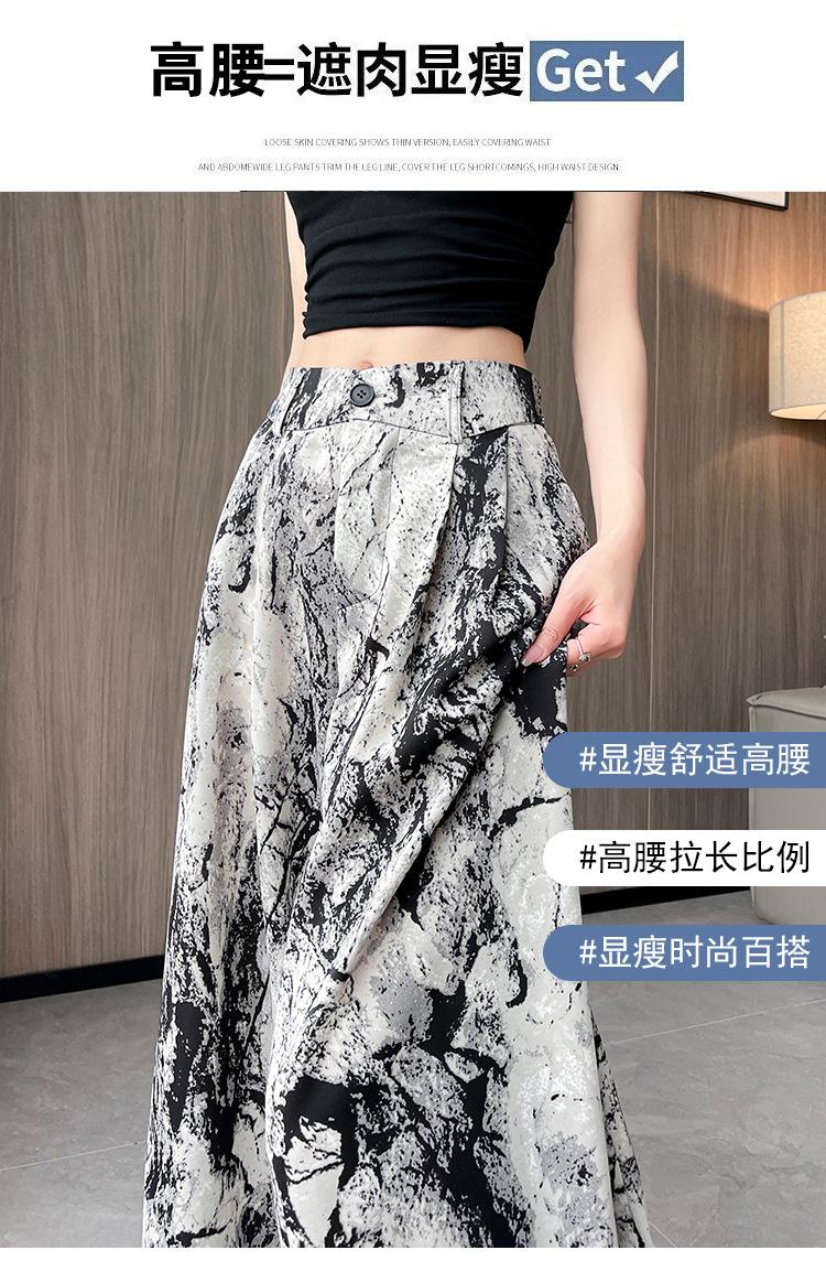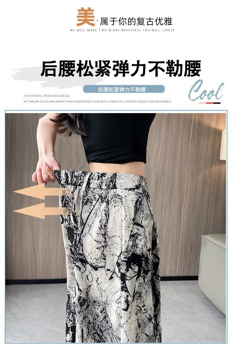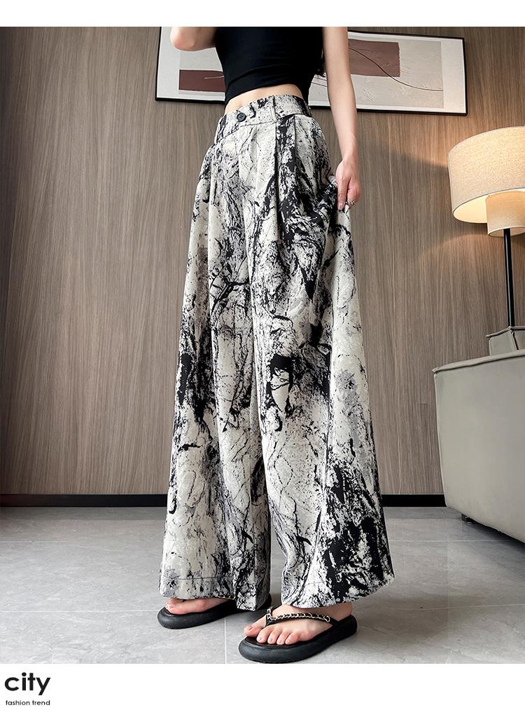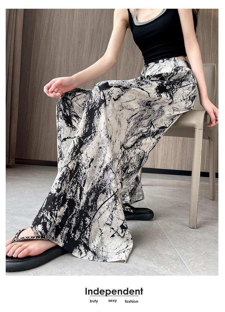 Verano 2025 Nuevo Traje Fresco de Seda Helada Tie-Dye Pantalones de Pierna Ancha para Mujer Cintura Alta Suelto Largo hasta el Piso Estilo Delgado para Personas Altas